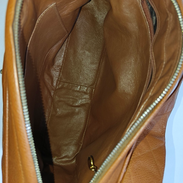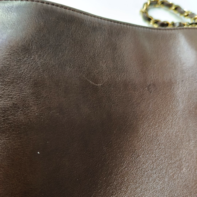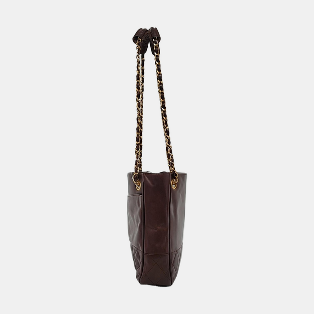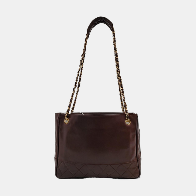 Chanel Chanel Brown Diamond Stitch Tote Calfskin Leather Zipper Bowler 2005-2006