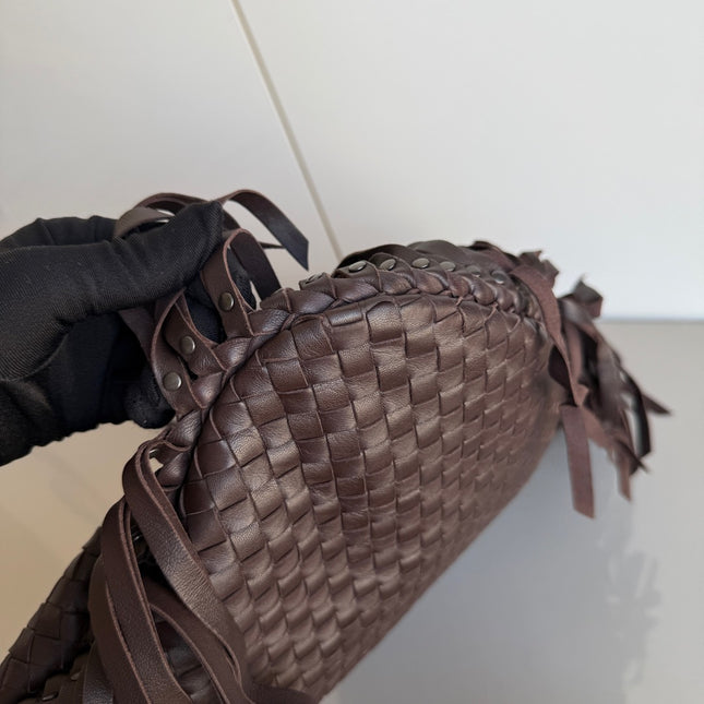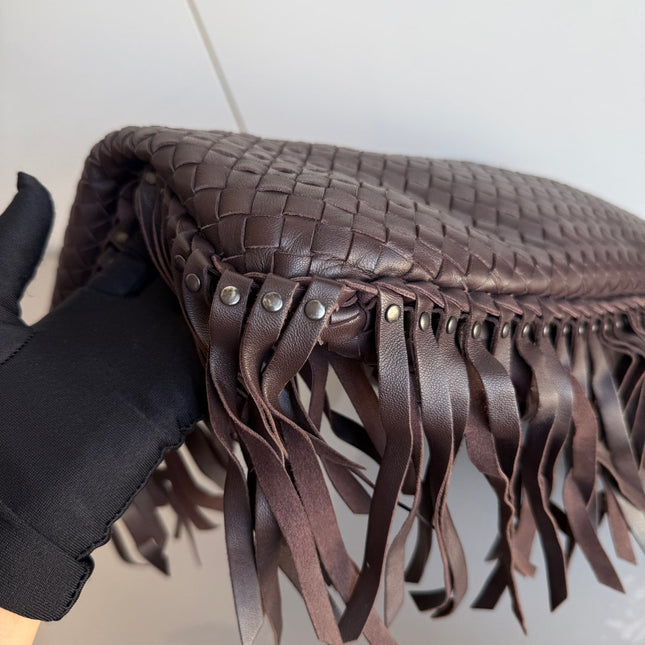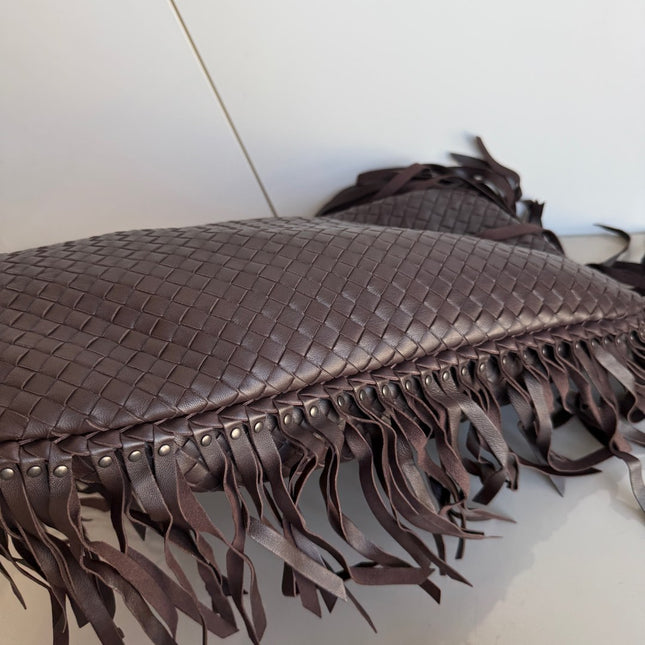 Bottega Veneta Bottega Veneta Veneta Fringed Hobo Large Dark Chocolate Brown 47cm Lambskin Leather