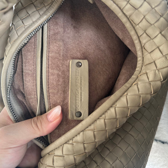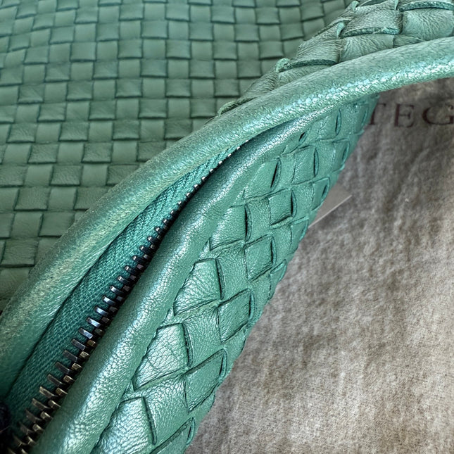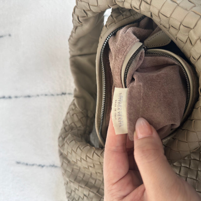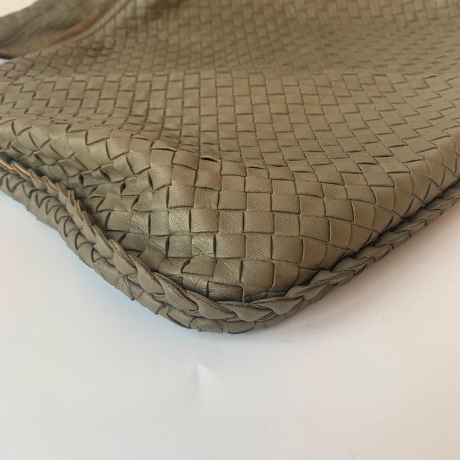 Bottega Veneta Bottega Veneta Hop Hobo Small Intrecciato Leather Travertine Green 40cm