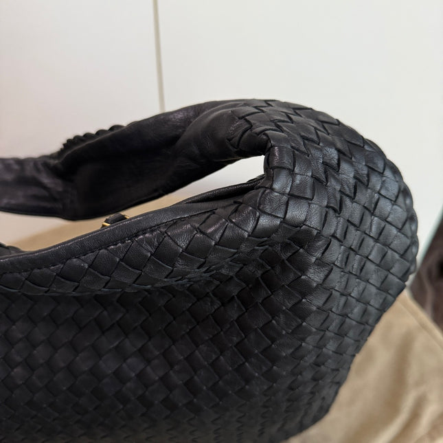 Bottega Veneta Bottega Veneta Intrecciato Hobo Bag Medium Black Leather 47cm