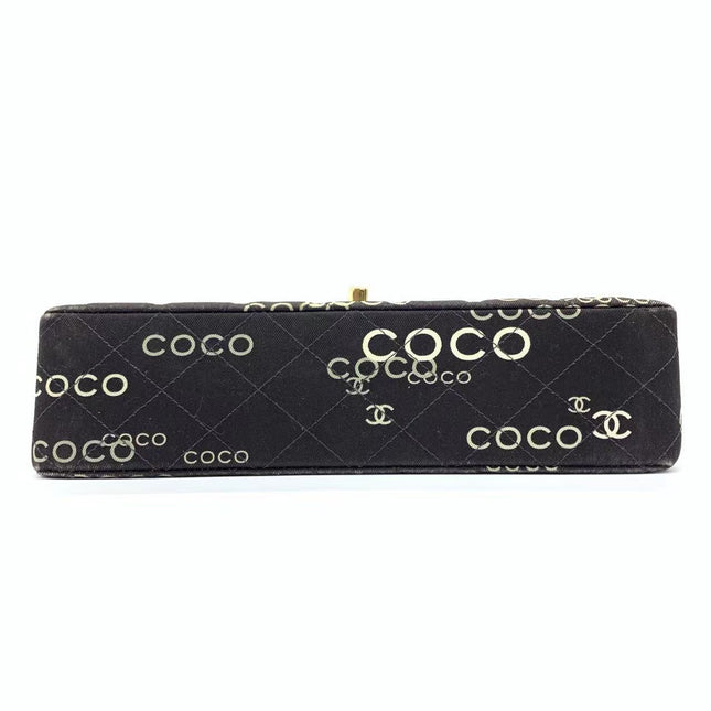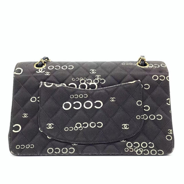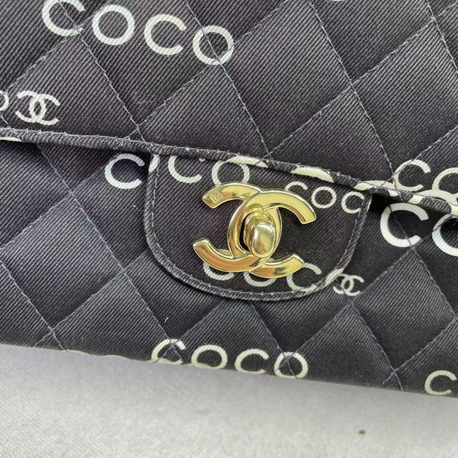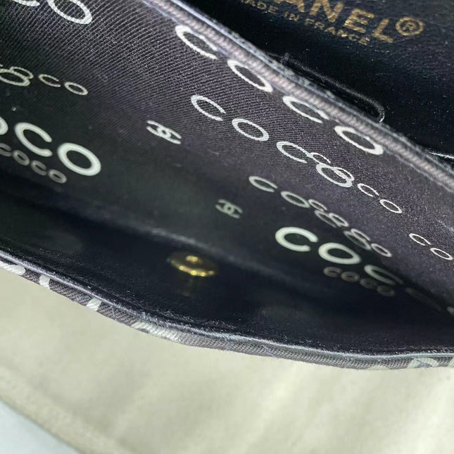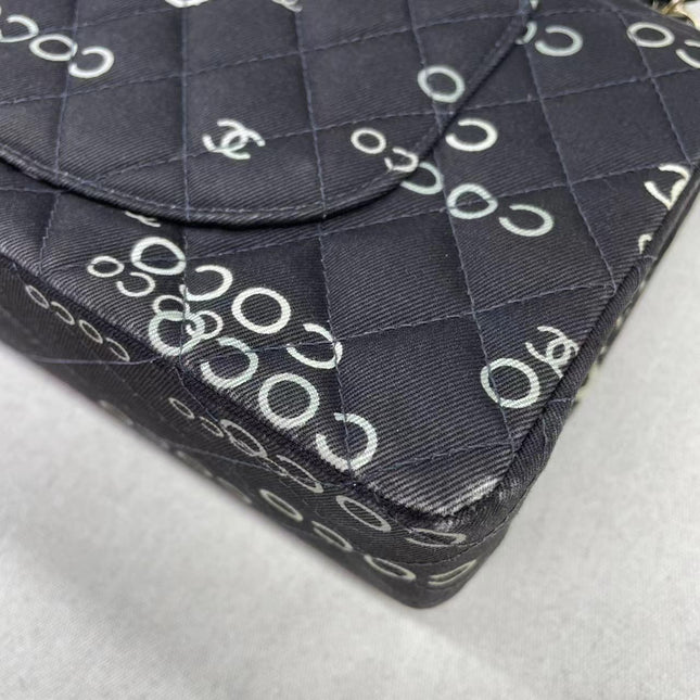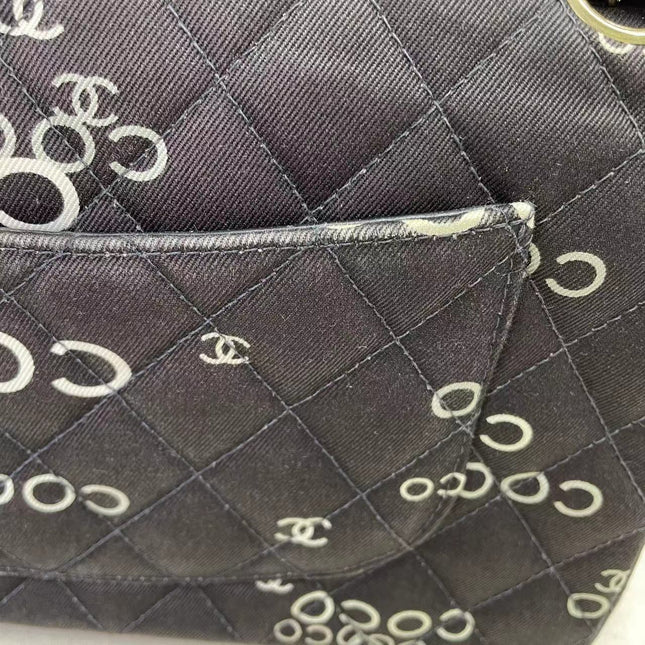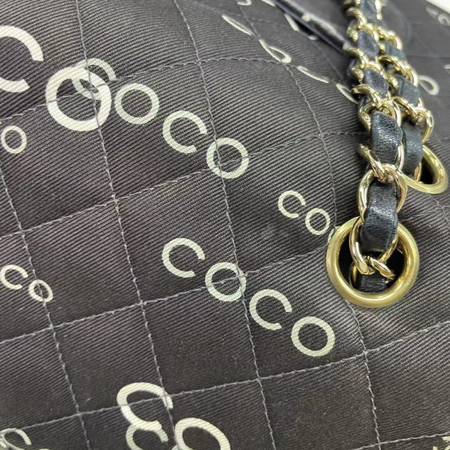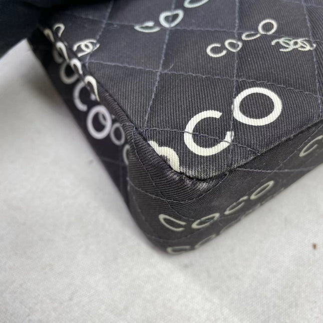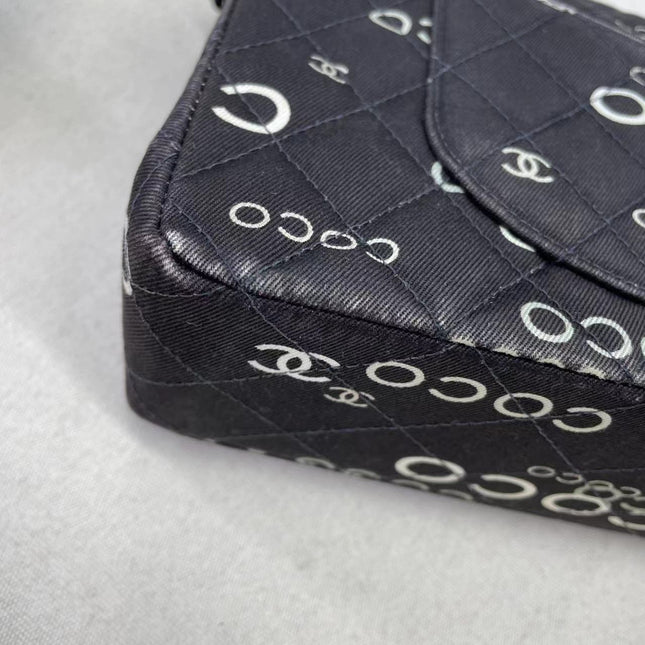 Chanel Chanel Classic Flap Diamond Stitch 2002 Black Denim with Coco Logo Prints 24k Gold Hardware