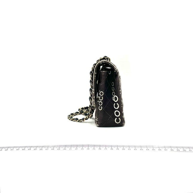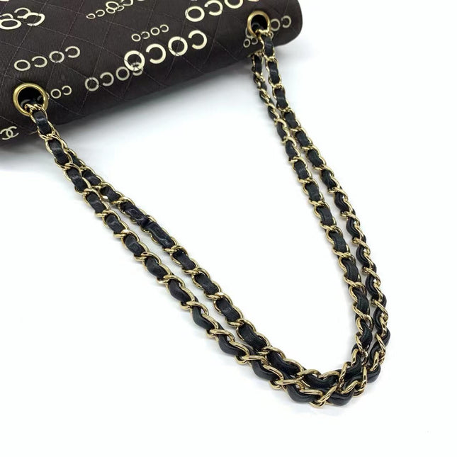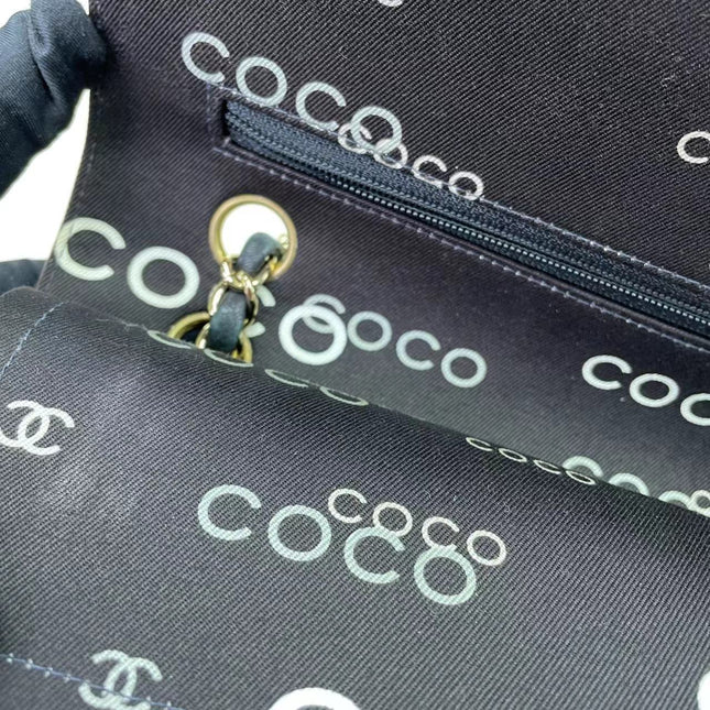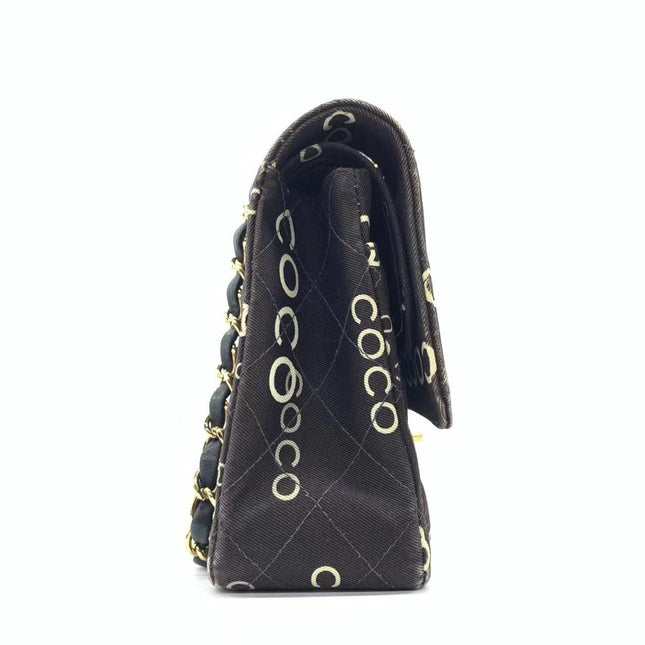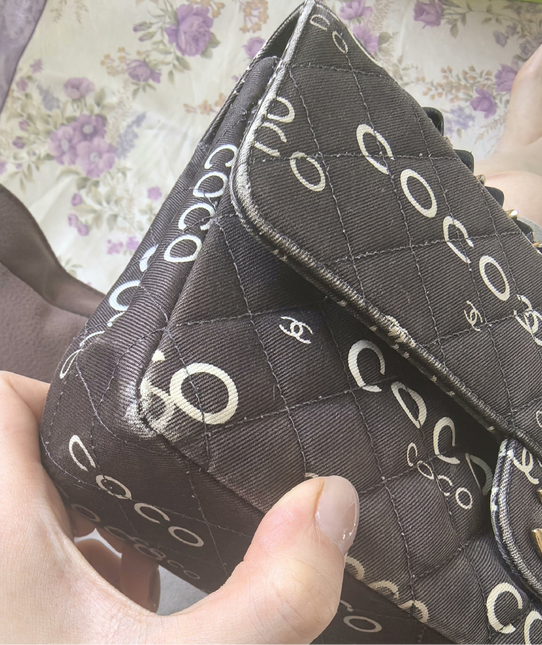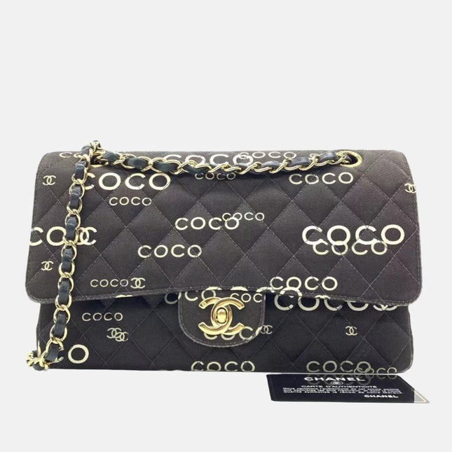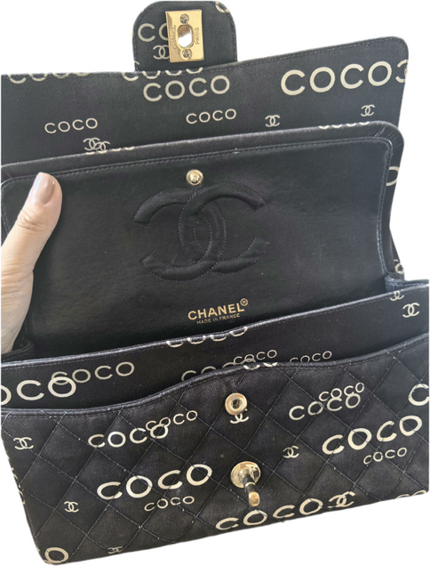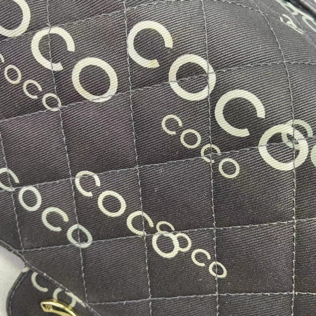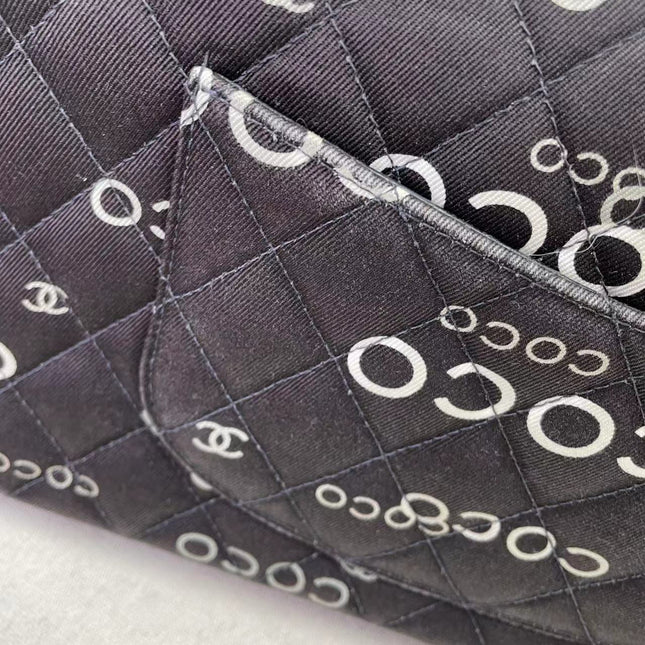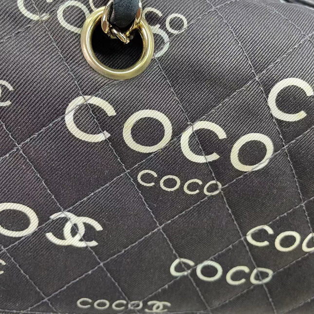 Chanel Chanel Classic Flap Diamond Stitch 2002 Black Denim with Coco Logo Prints 24k Gold Hardware