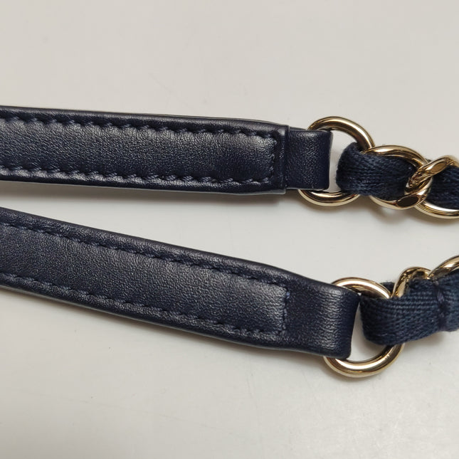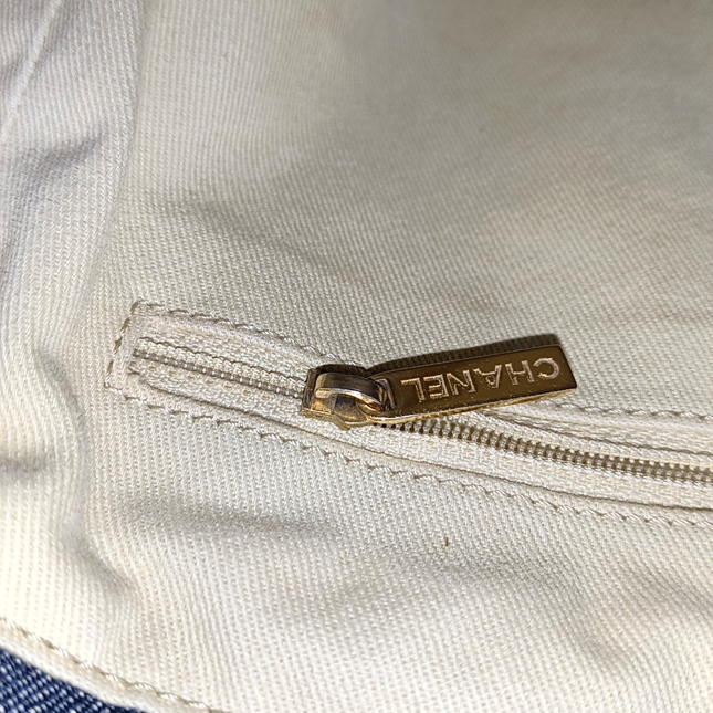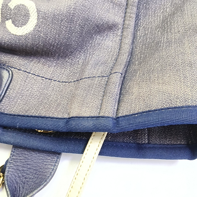 Chanel Chanel East West Chocolate Bar Blue Denim Beige Leather Piping Silver Hardware
