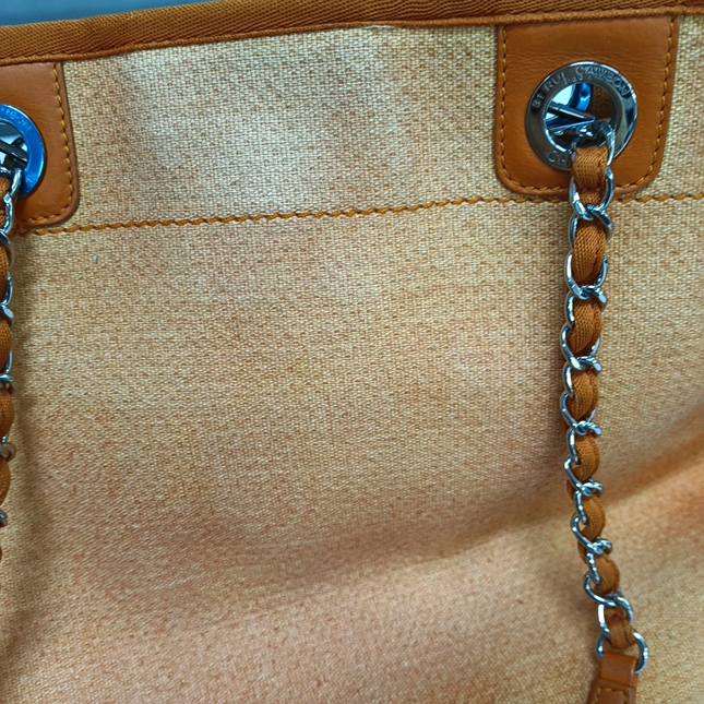 Chanel Chanel Deauville Tote Light Orange Denim Leather Trim Small 32cm