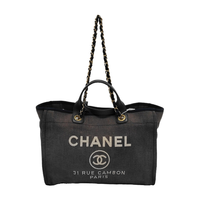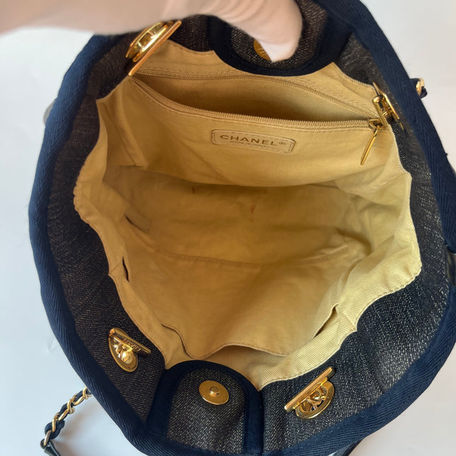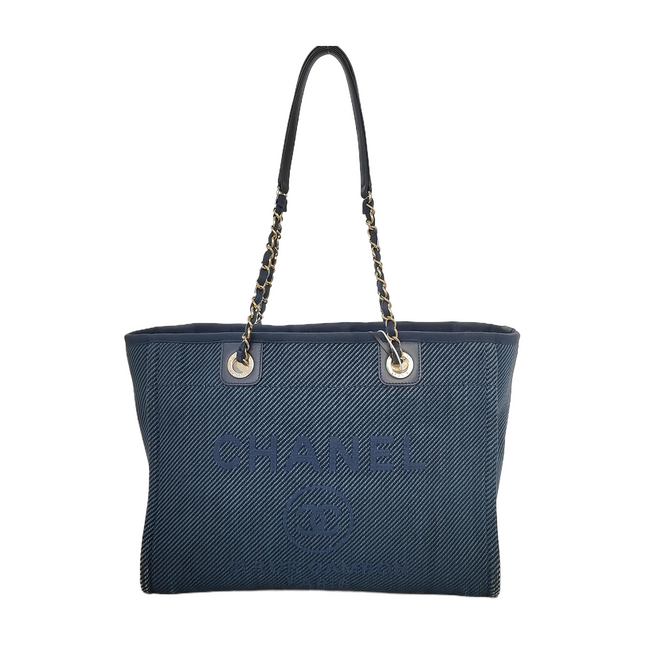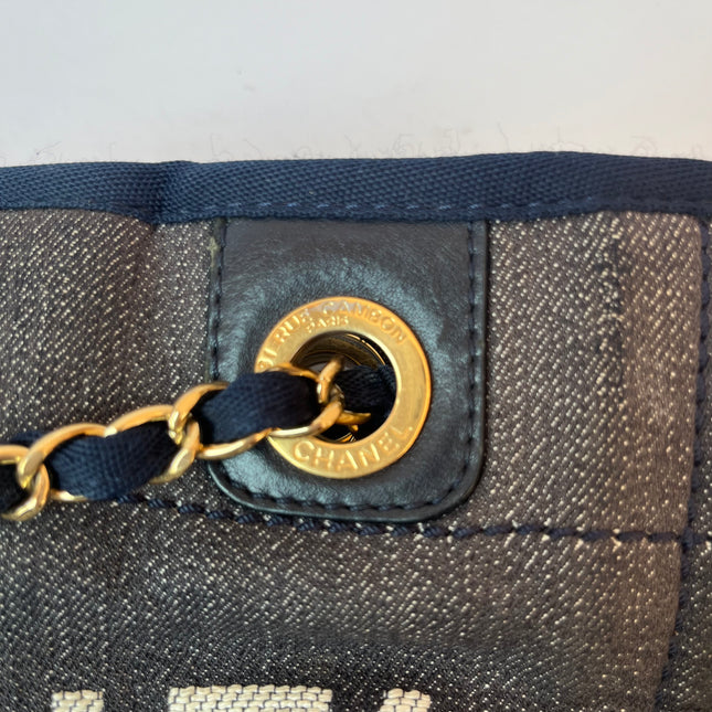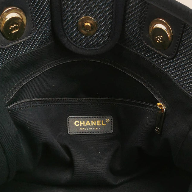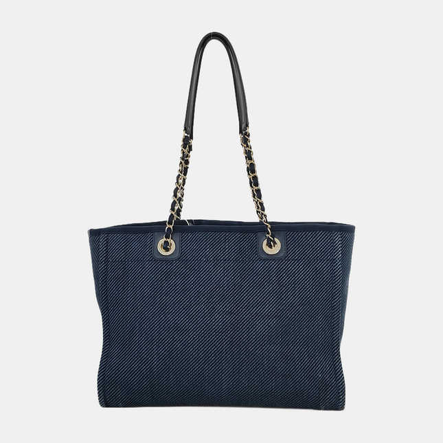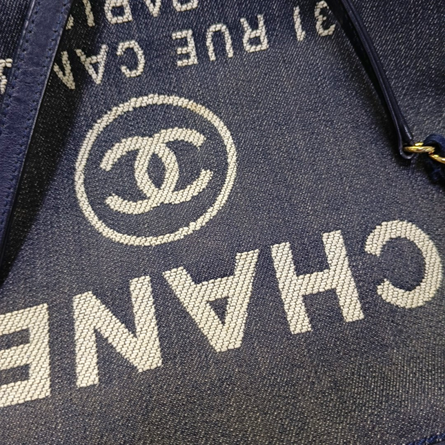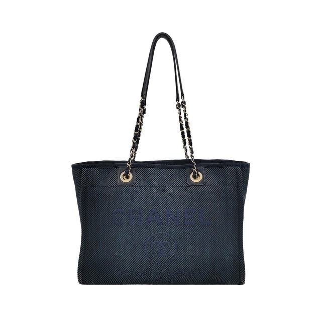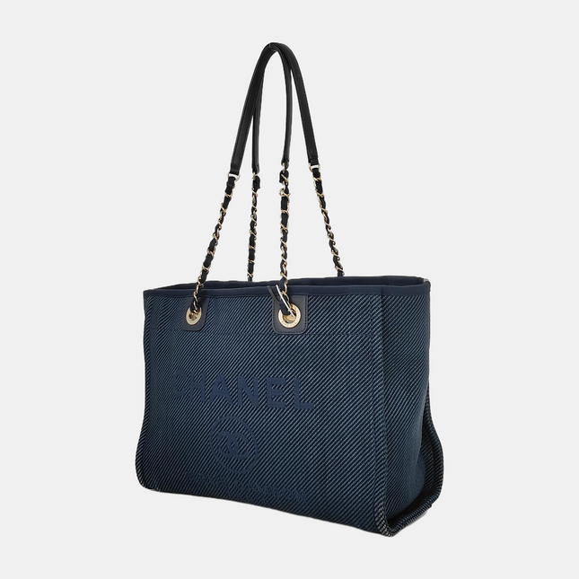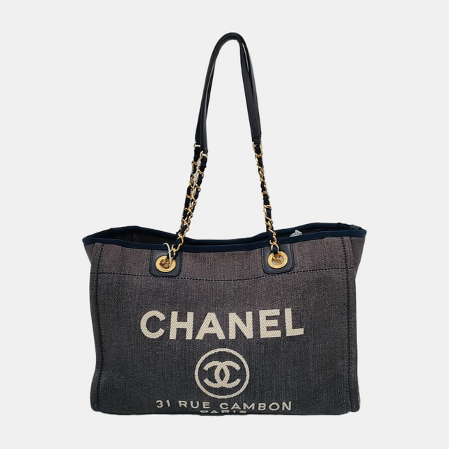 Chanel Chanel Deauville Tote Medium Navy Denim Top Handle