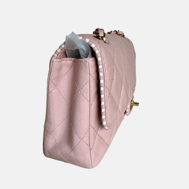 Chanel Chanel Classic Flap Medium Happy Stitch Pink Leather with Contrast White Trim