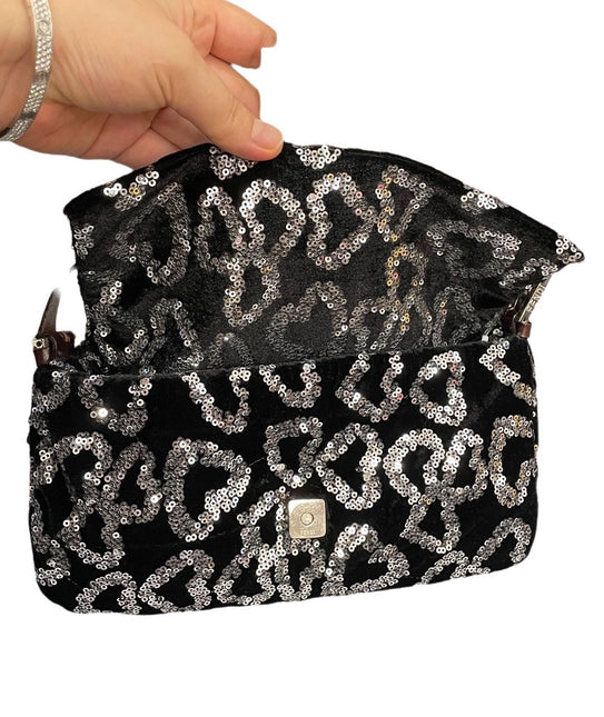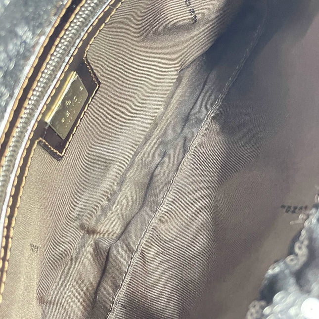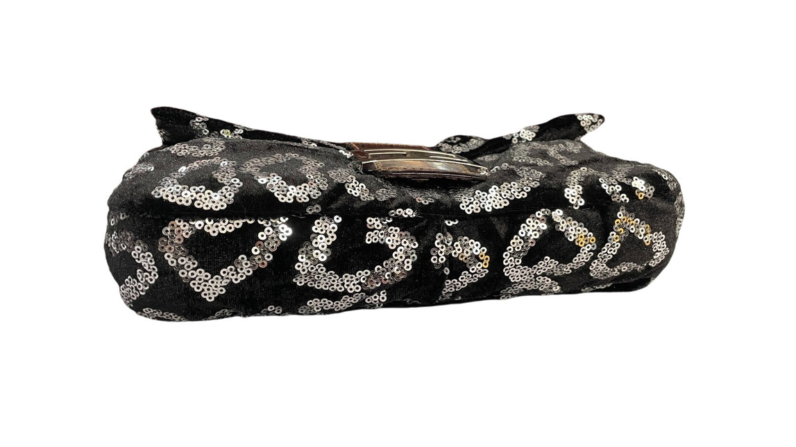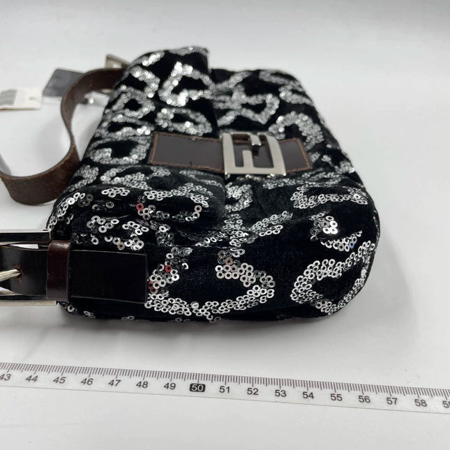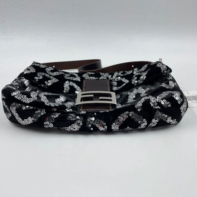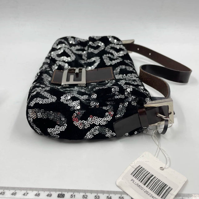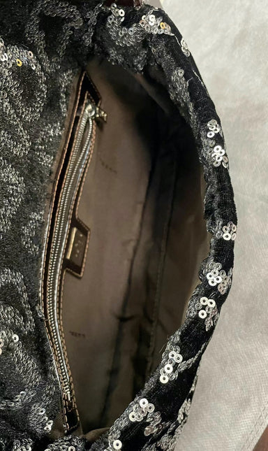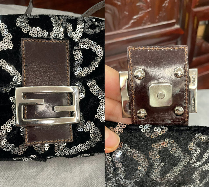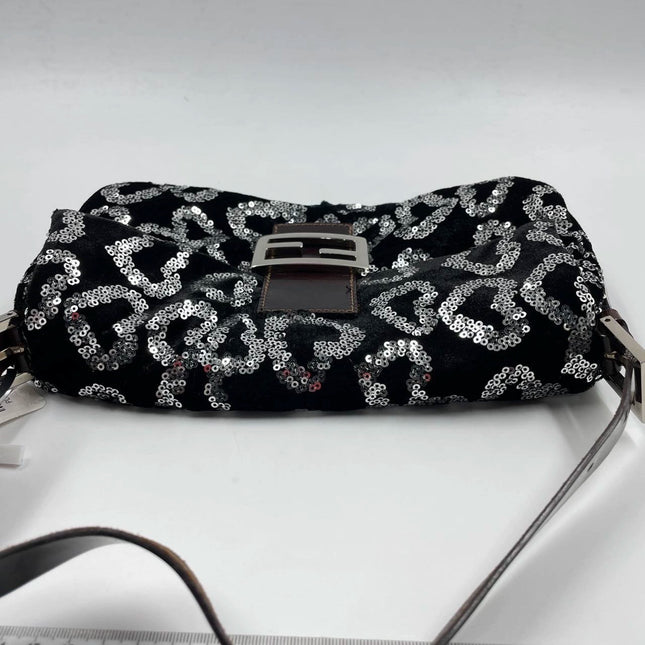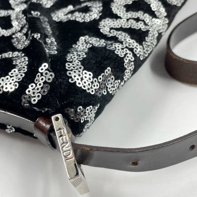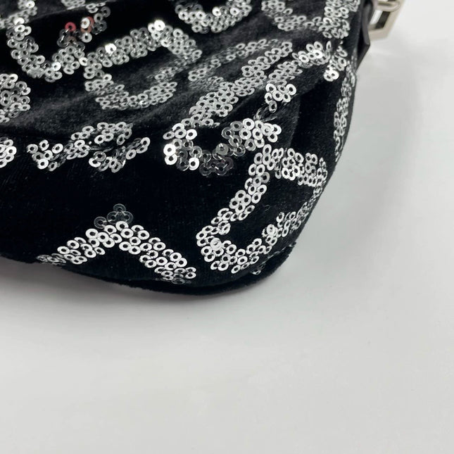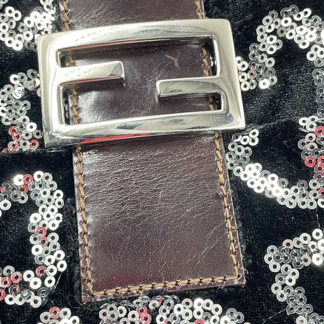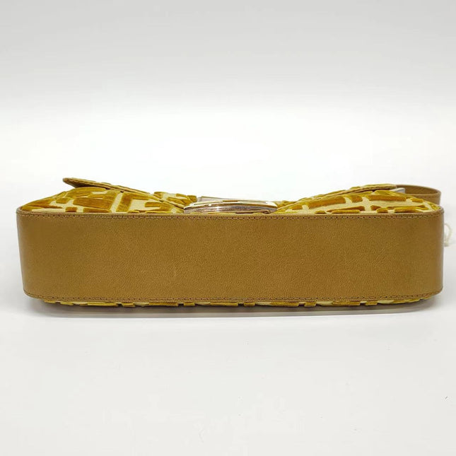 Fendi FENDI Baguette Gold FF Monogram Velvet Shoulder Bag