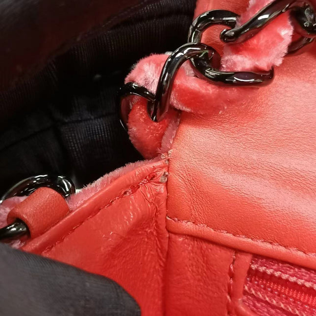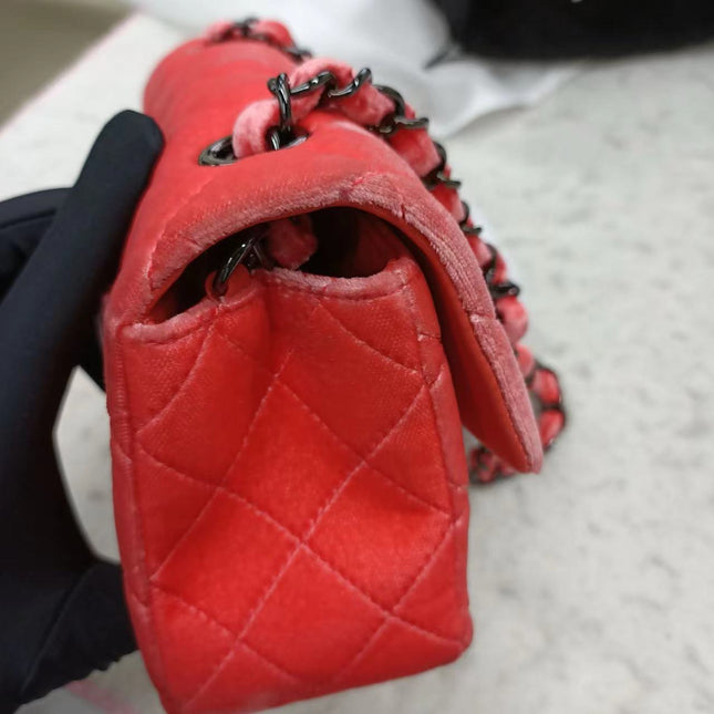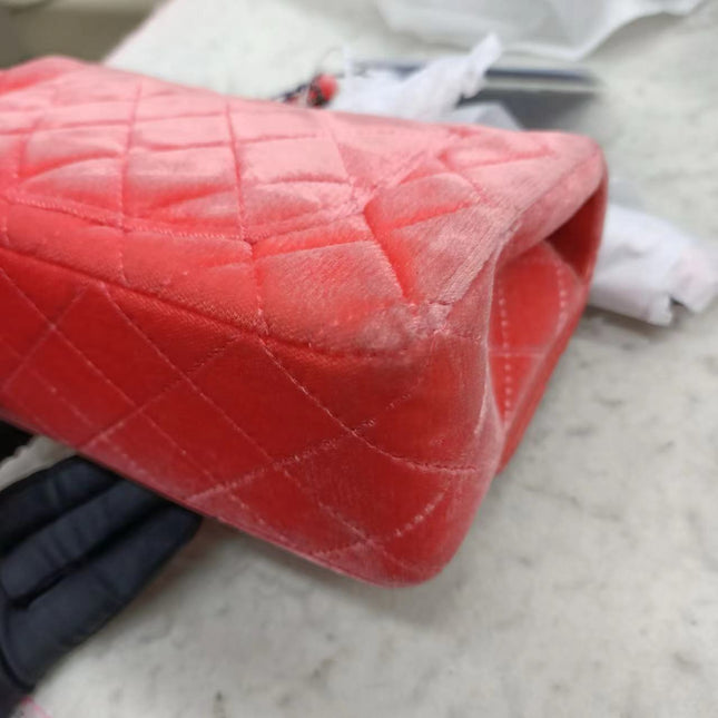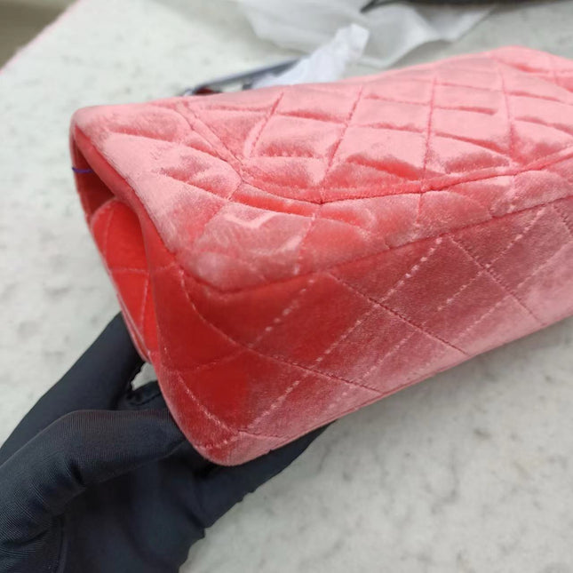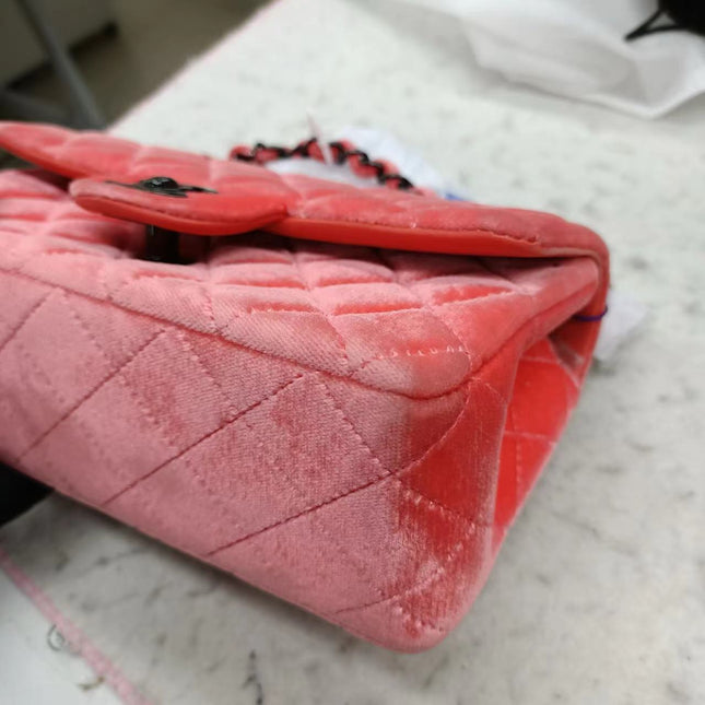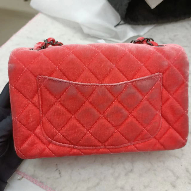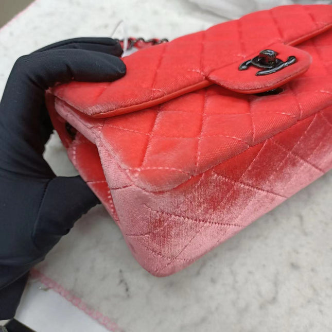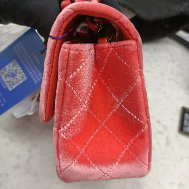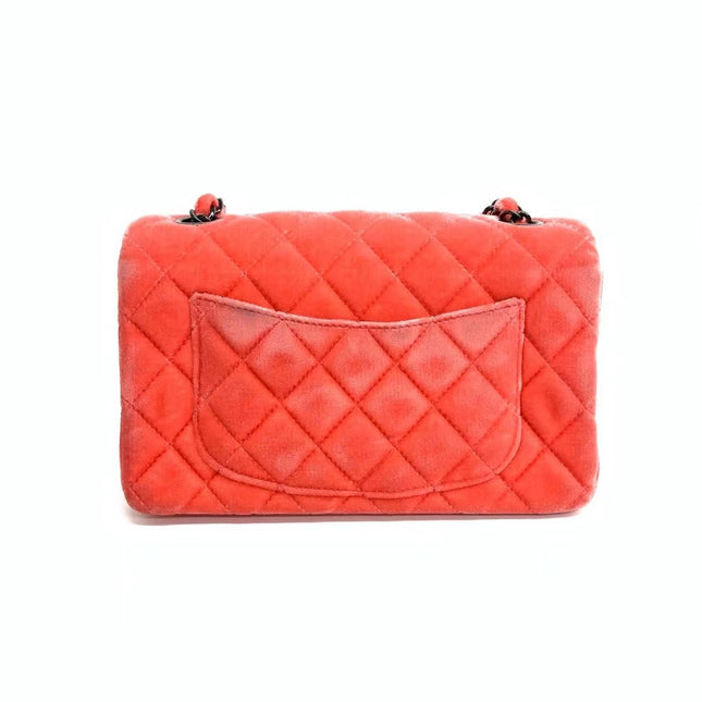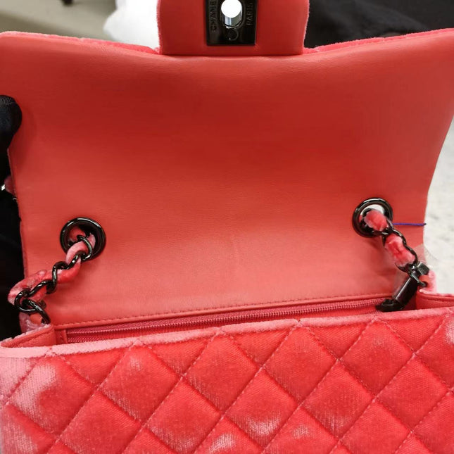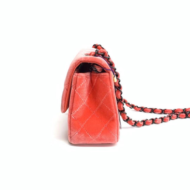 Chanel Chanel Classic Flap Mini Coral Pink Velvet Black Hardware, 2014-2015