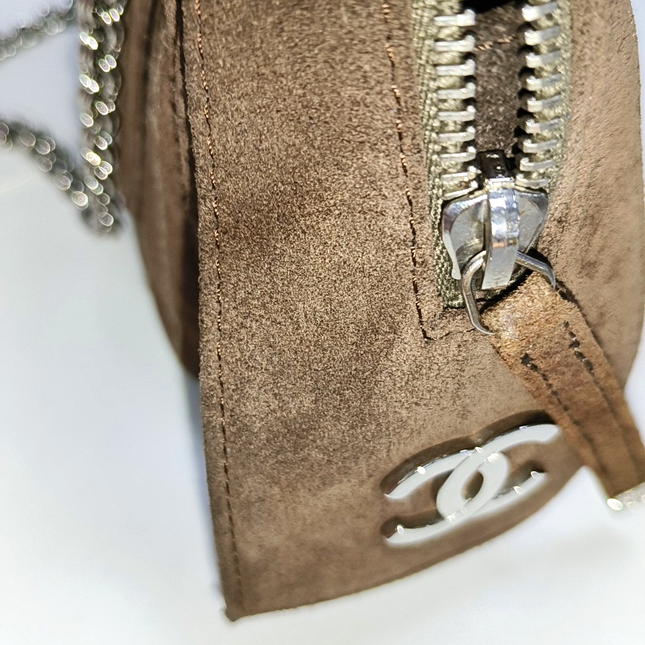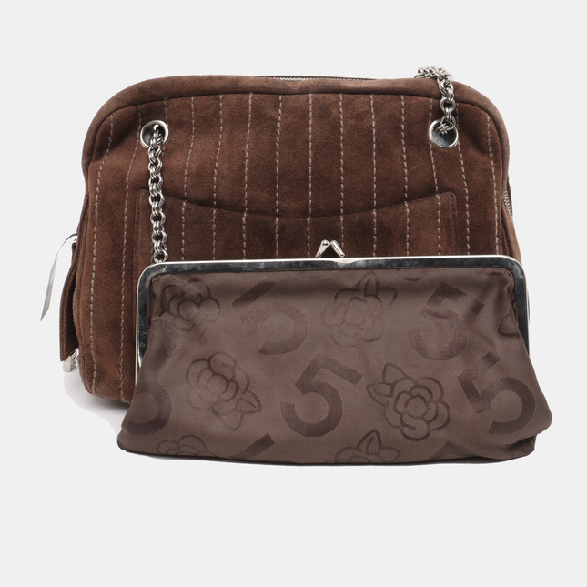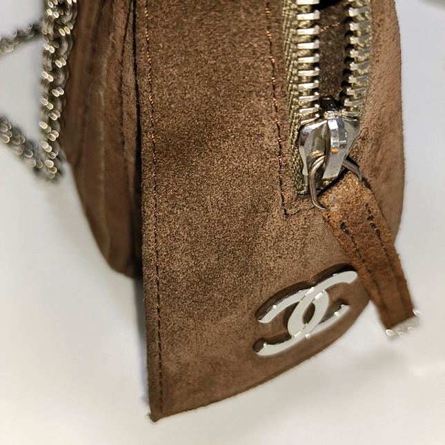 Chanel Chanel Mademoiselle Camera Bag Chocolate Brown Suede Silver Chain 2005-2006