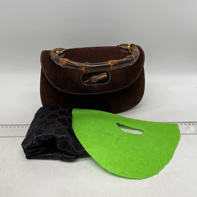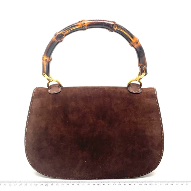 Gucci Gucci Bamboo 1947 Top Handle Bag Suede Leather Medium Dark Chocolate Brown