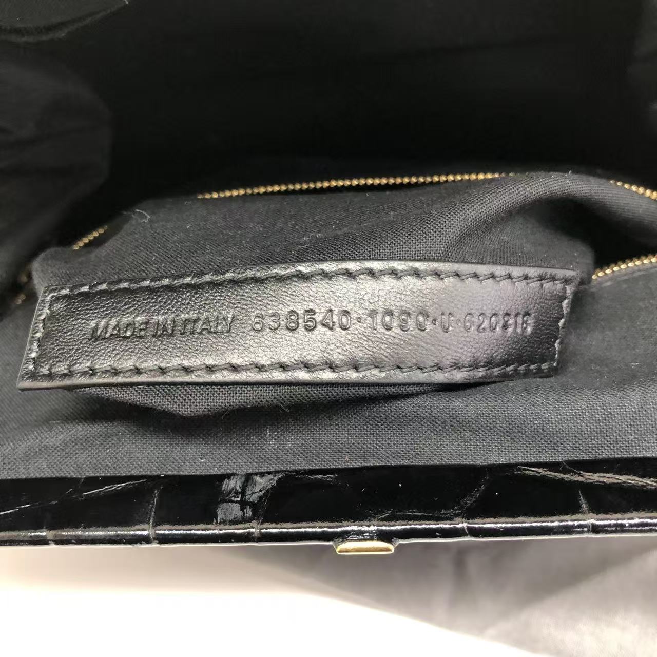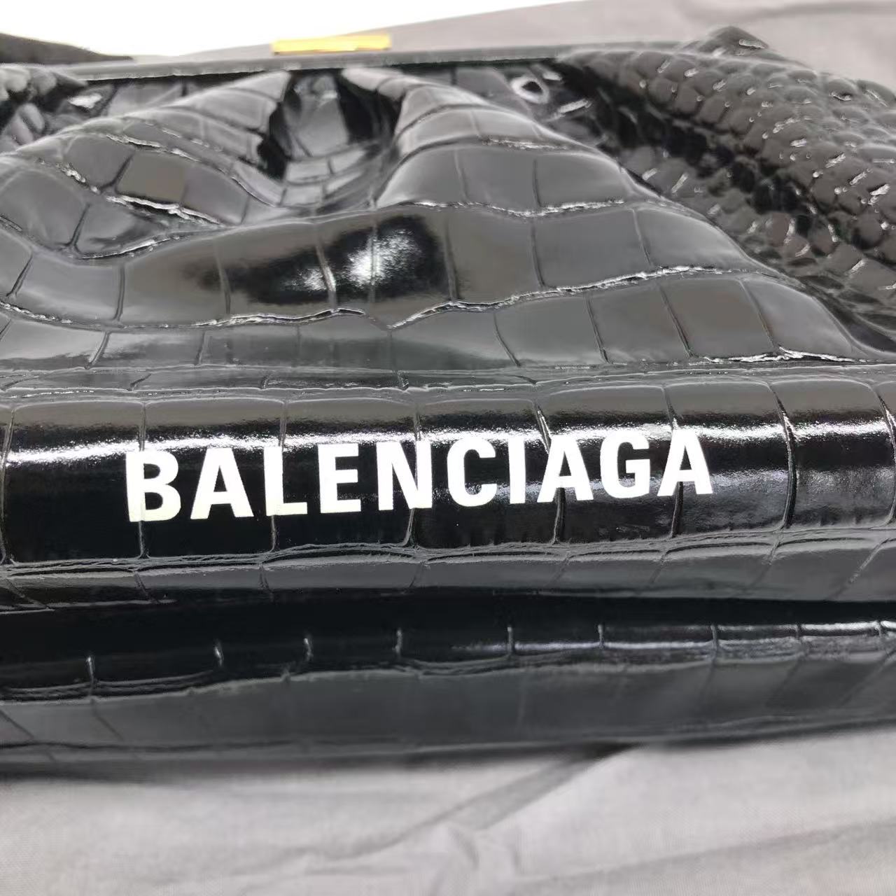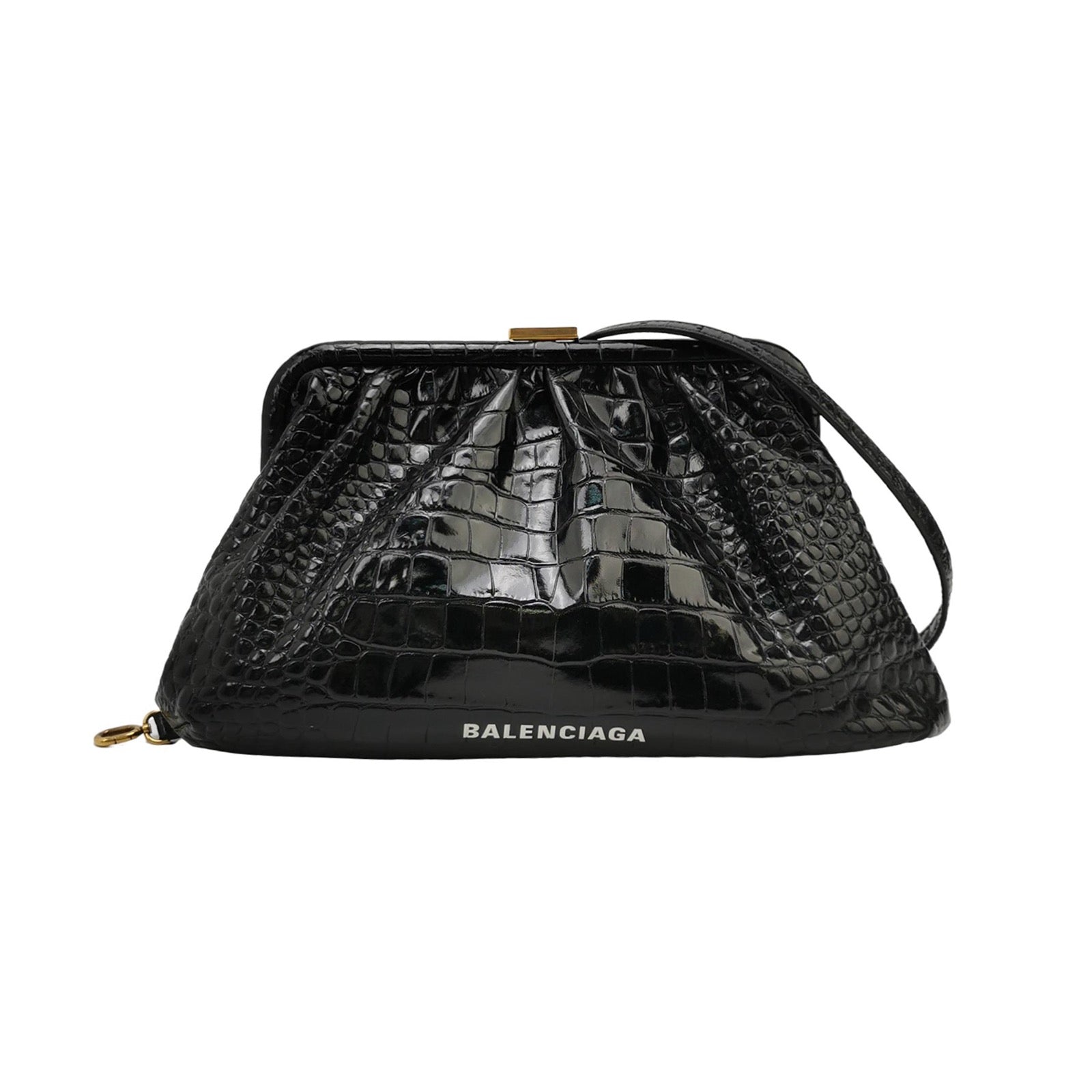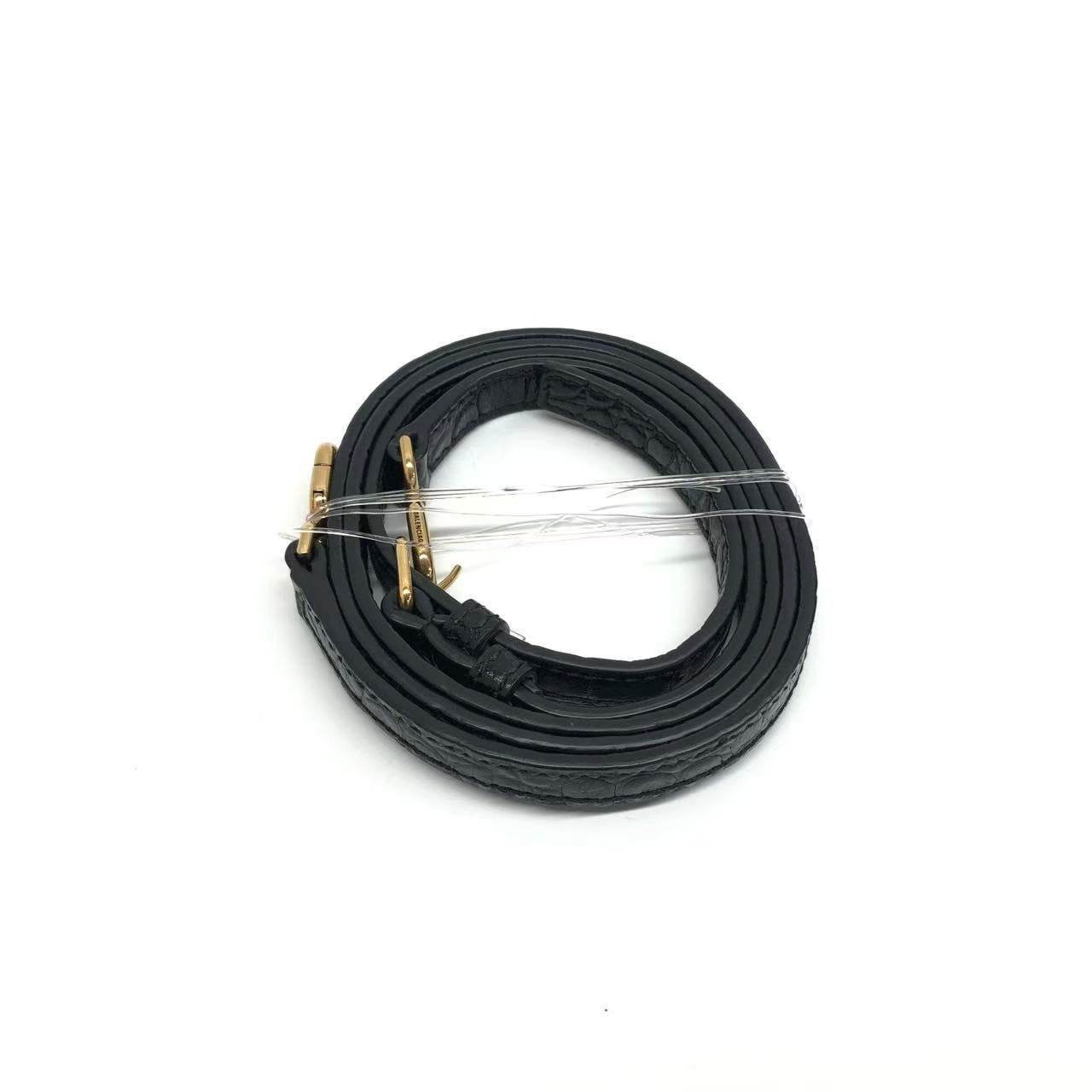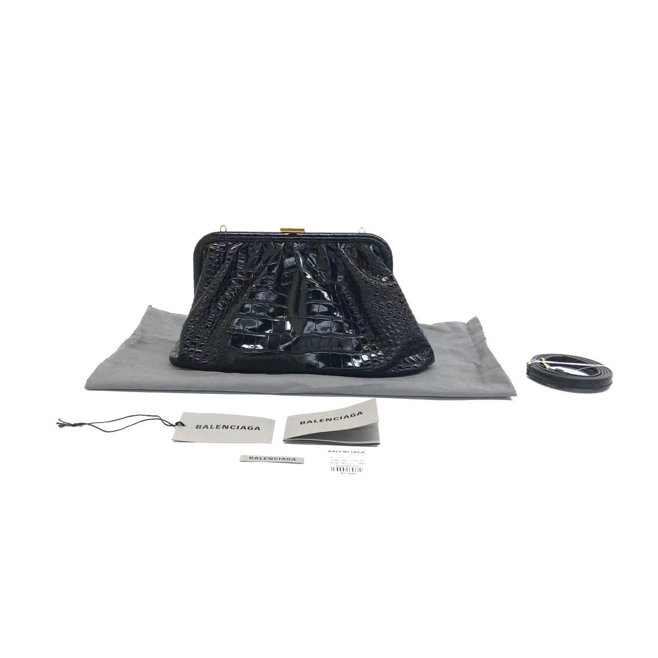 Balenciaga Pouch Black Crocodile Pattern Shiny Calfskin Leather With Strap