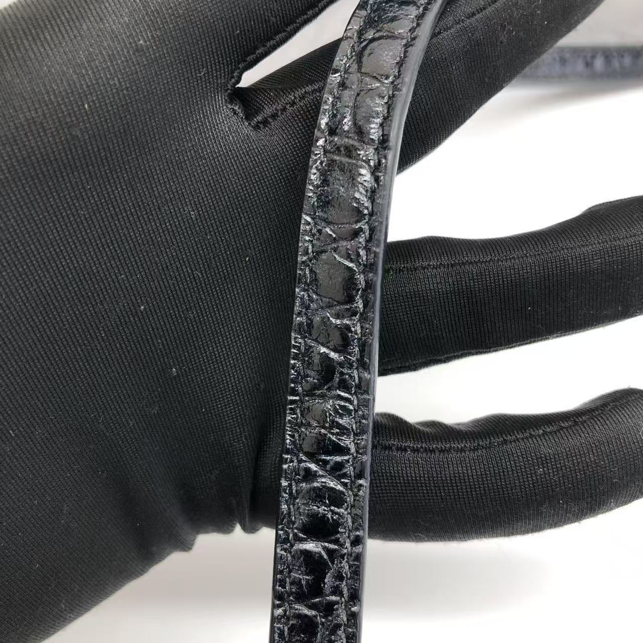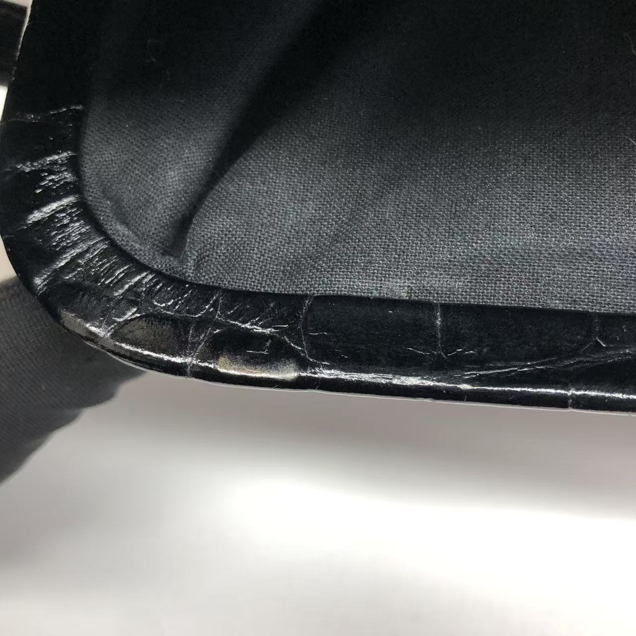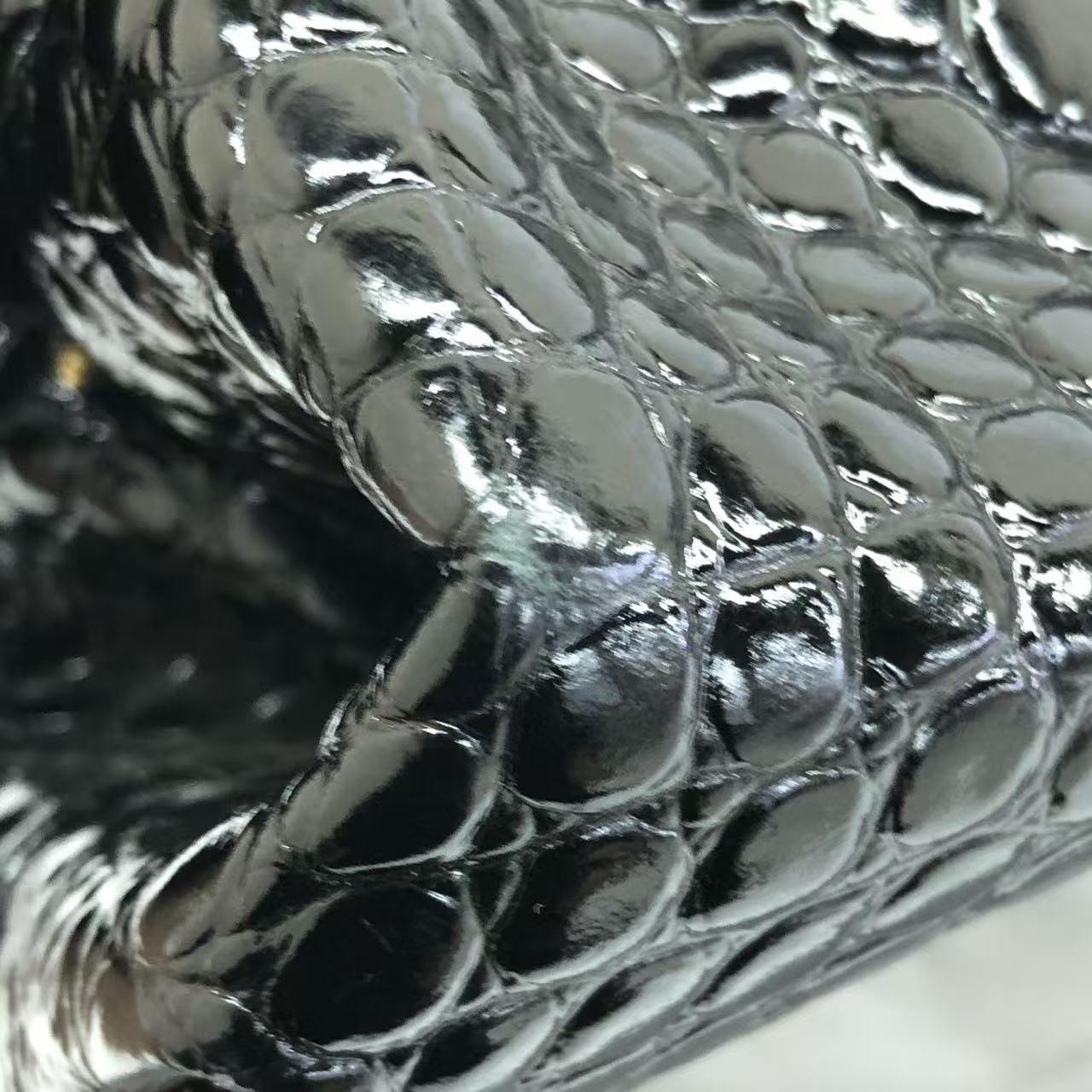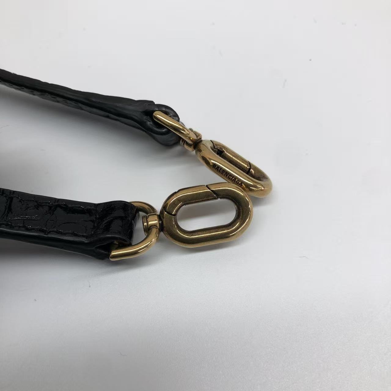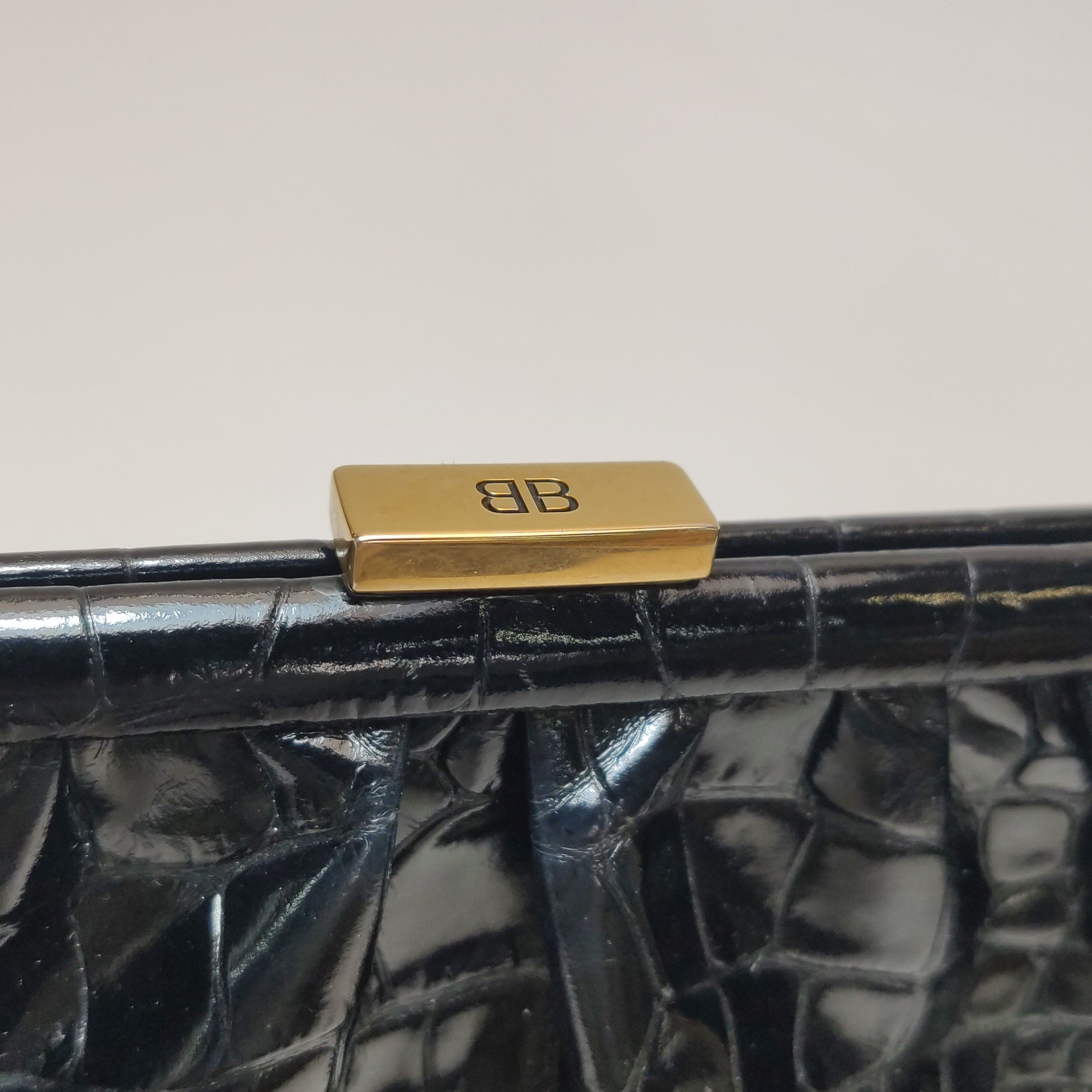 Balenciaga Pouch Black Crocodile Pattern Shiny Calfskin Leather With Strap