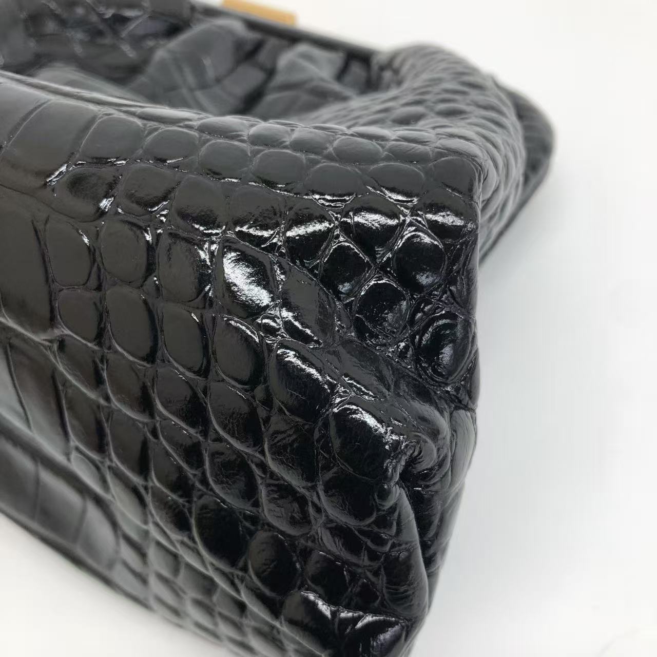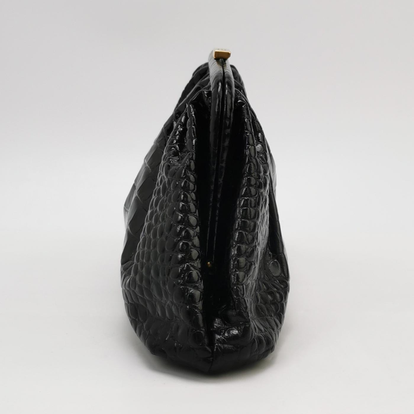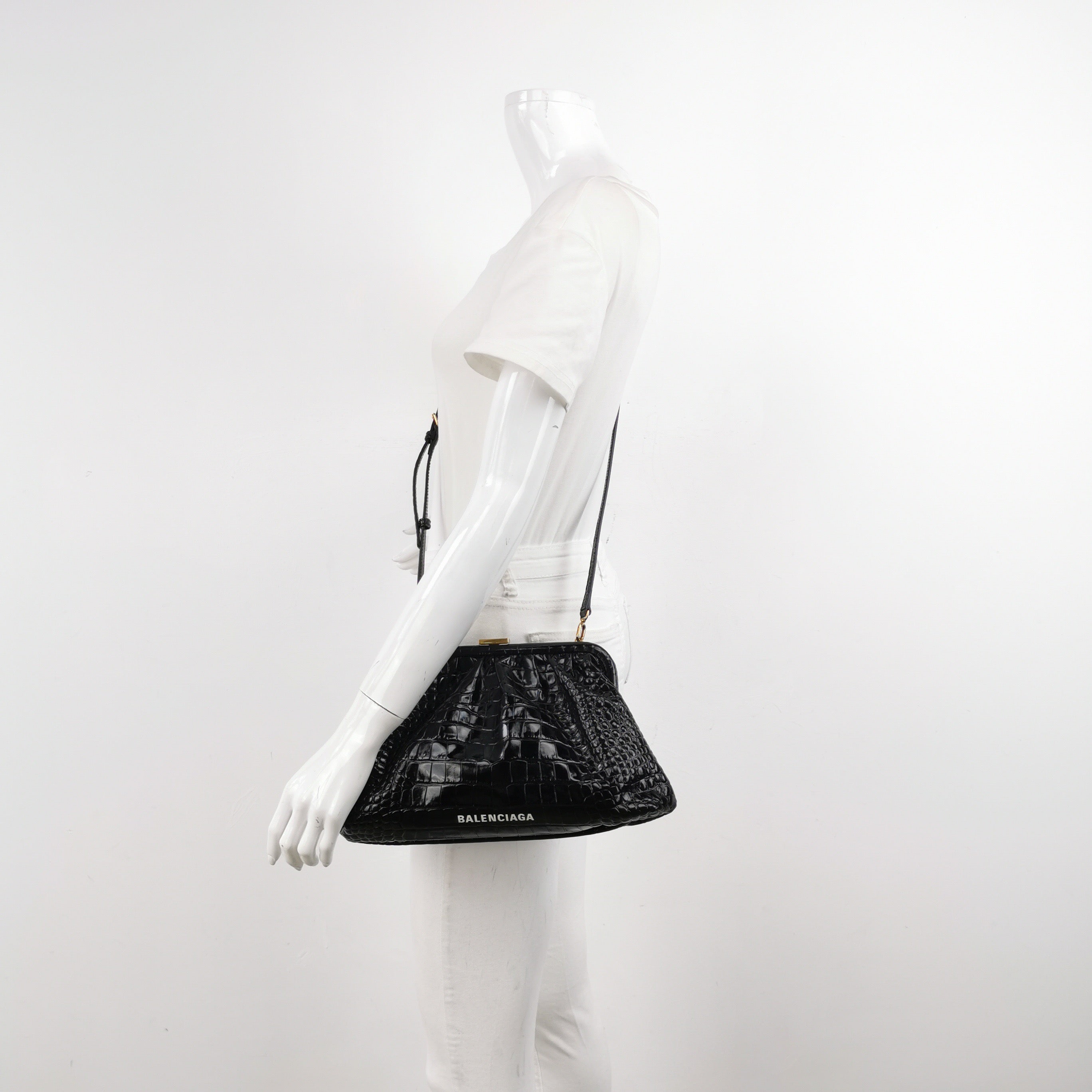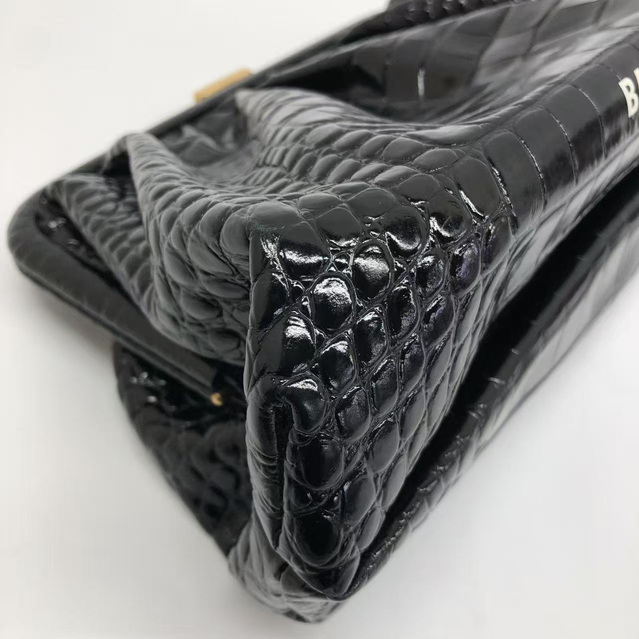 Balenciaga Pouch Black Crocodile Pattern Shiny Calfskin Leather With Strap