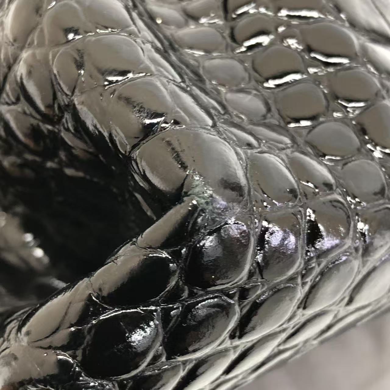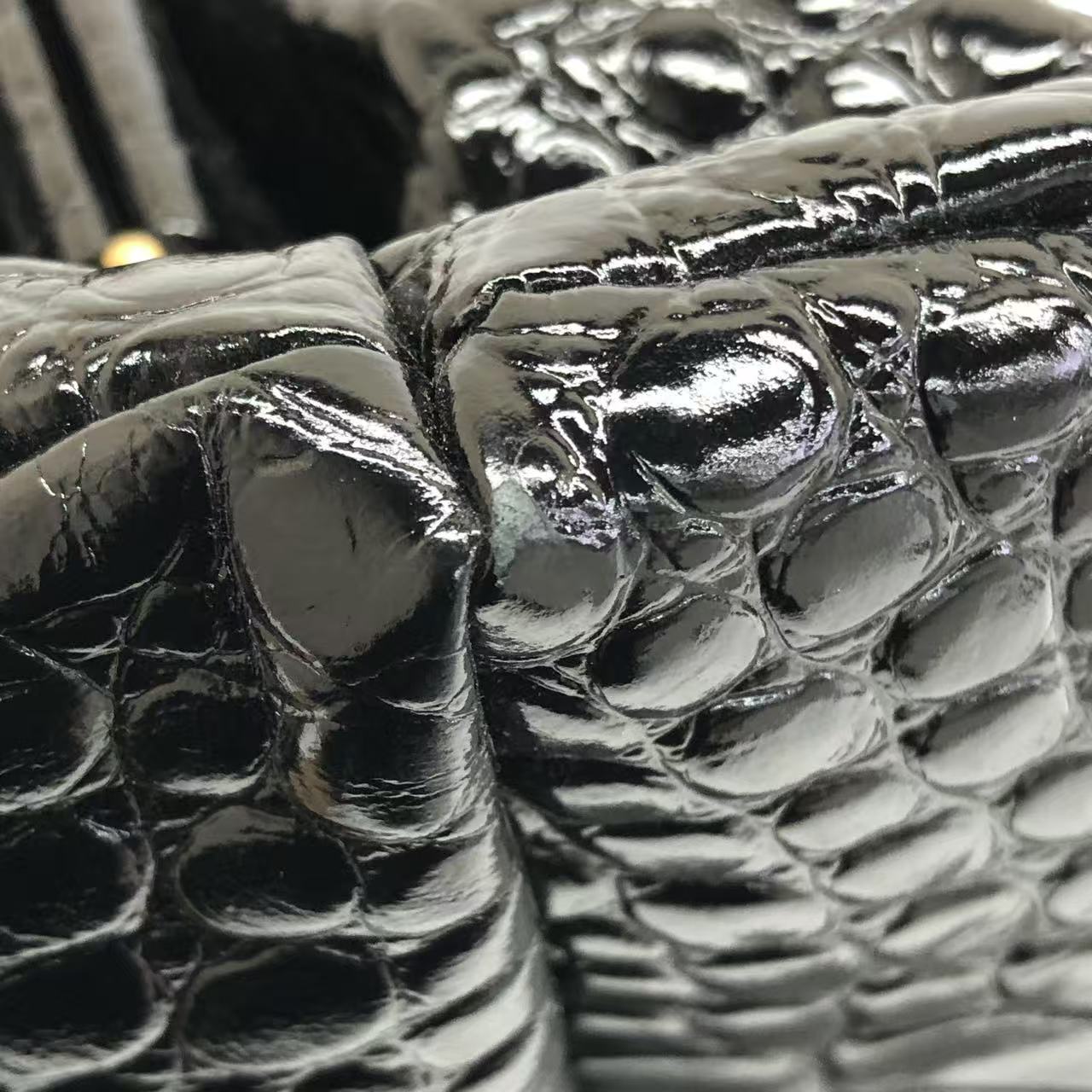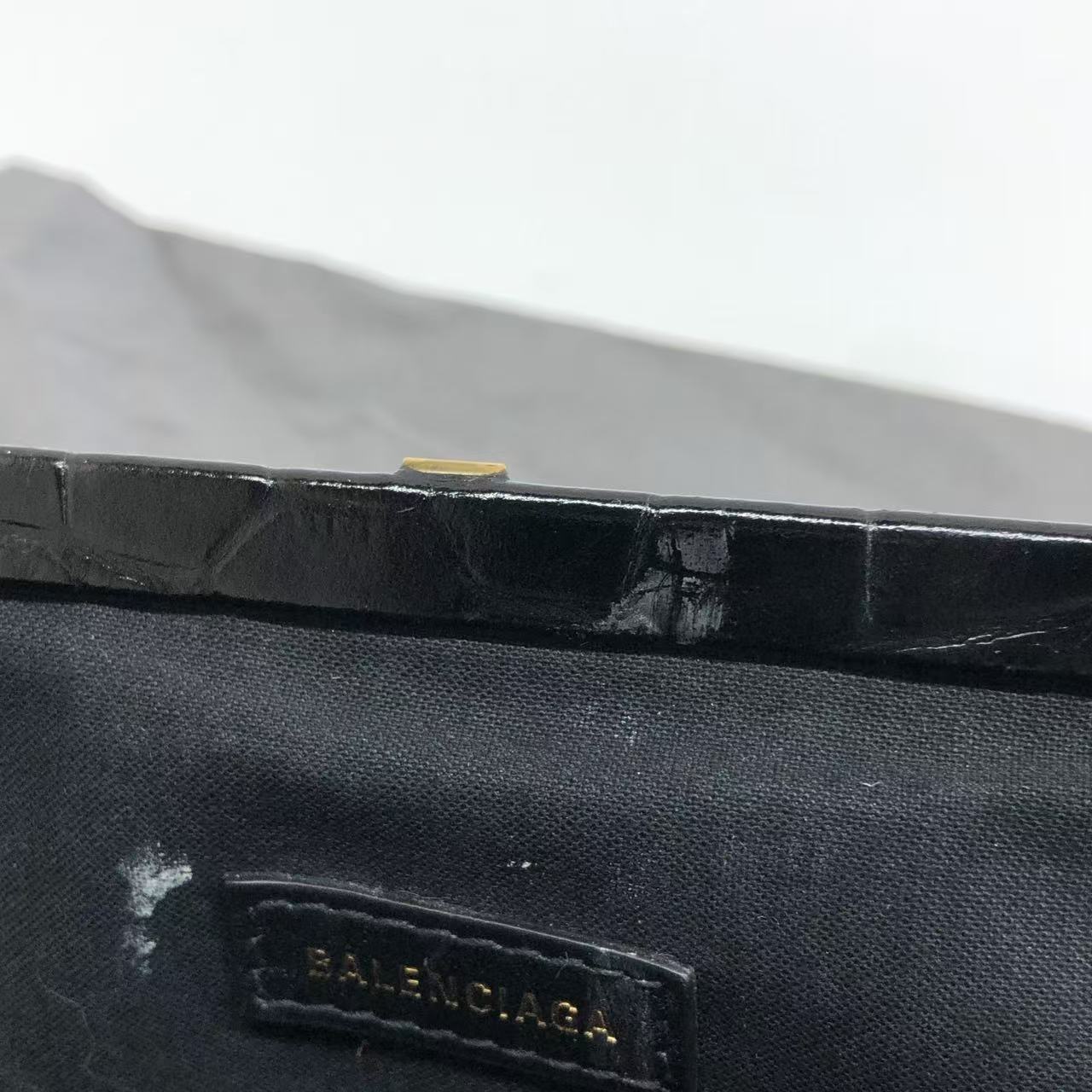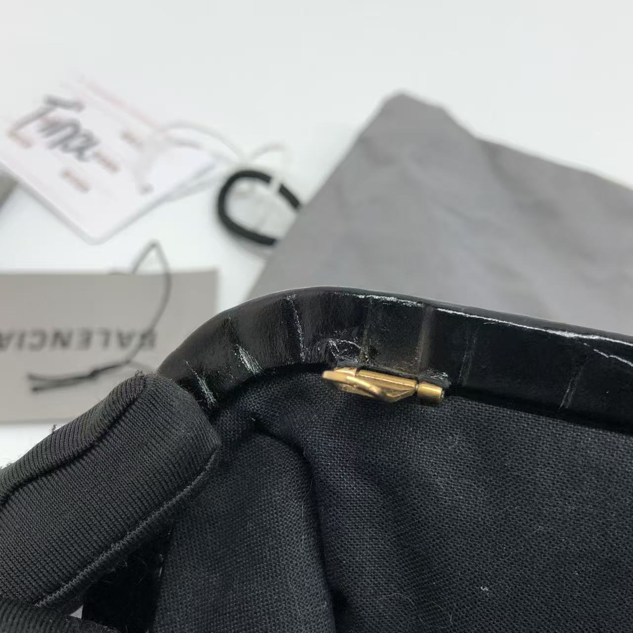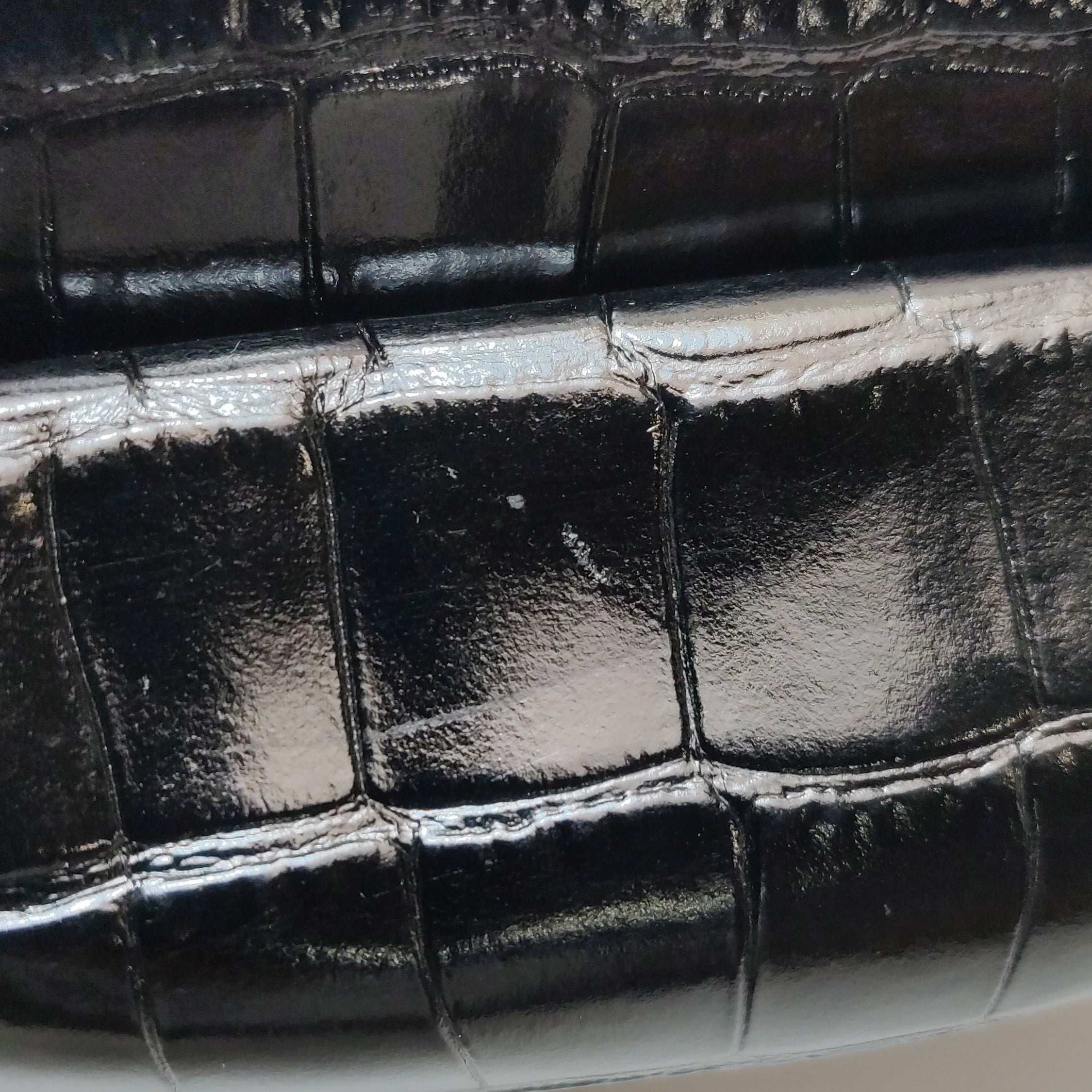 Balenciaga Pouch Black Crocodile Pattern Shiny Calfskin Leather With Strap