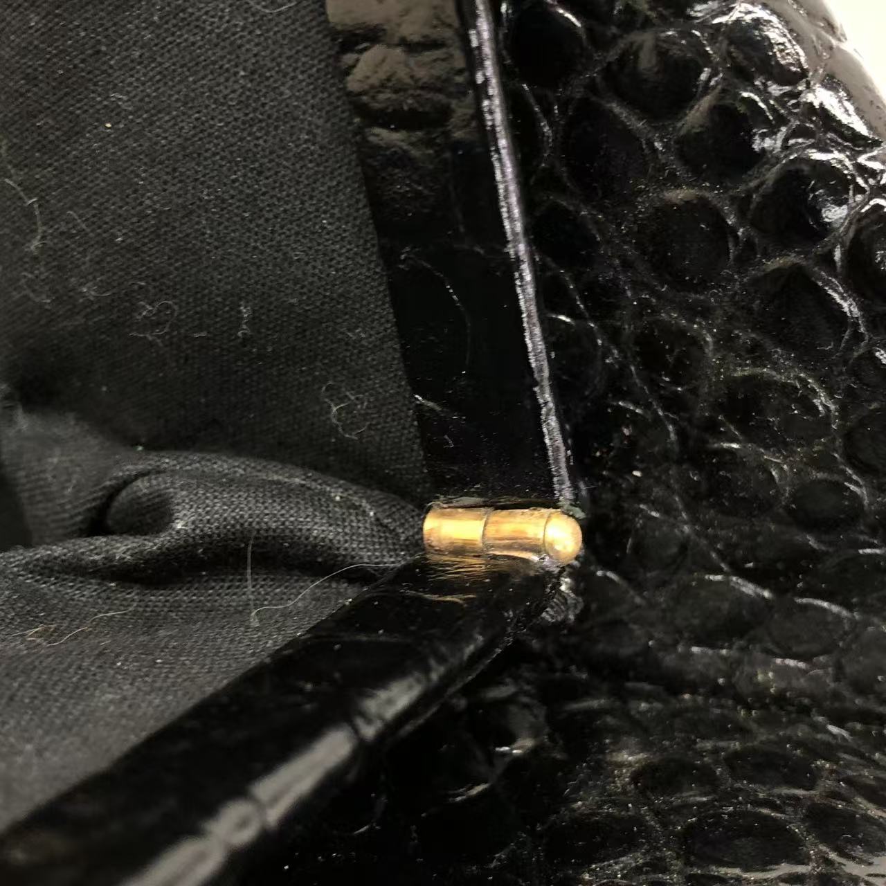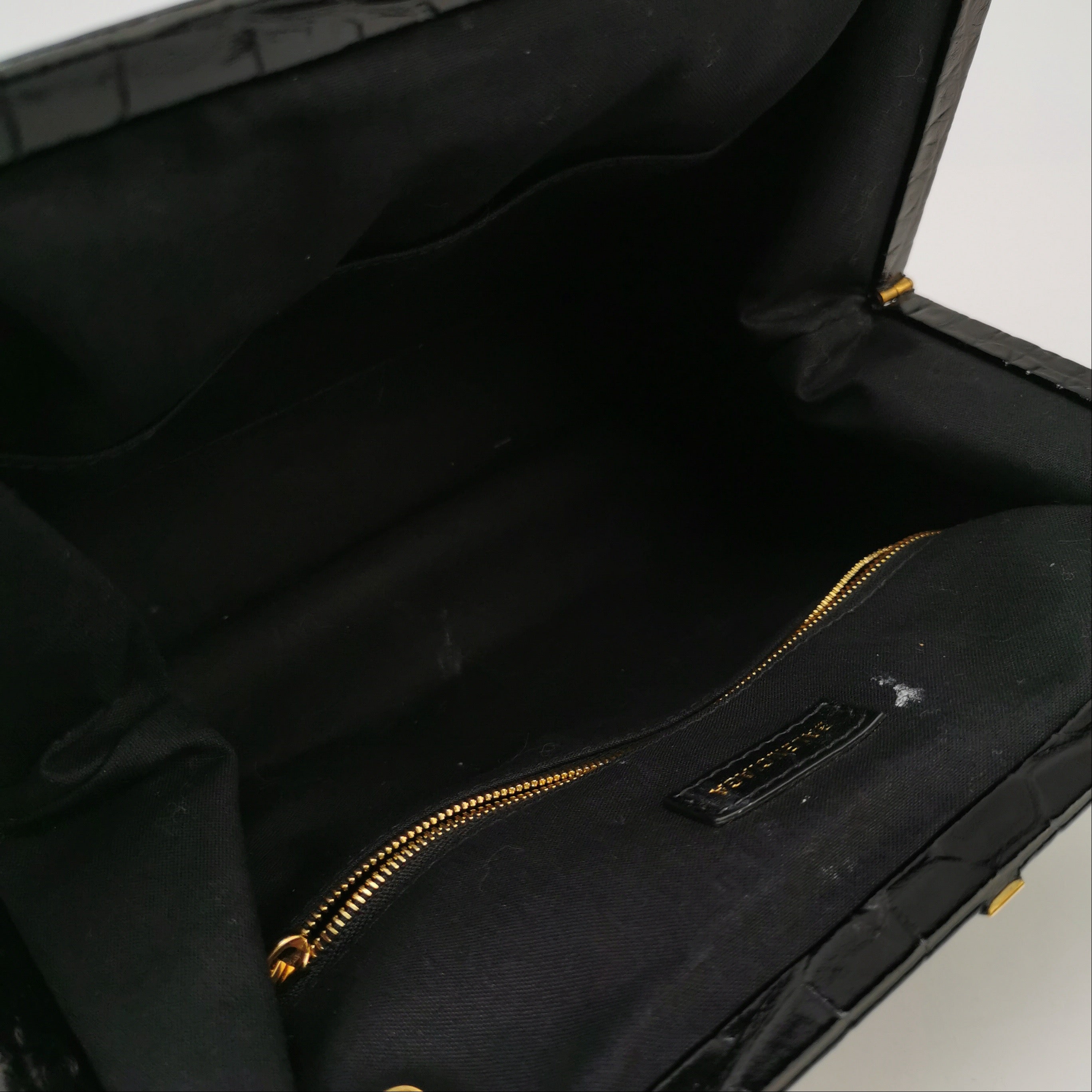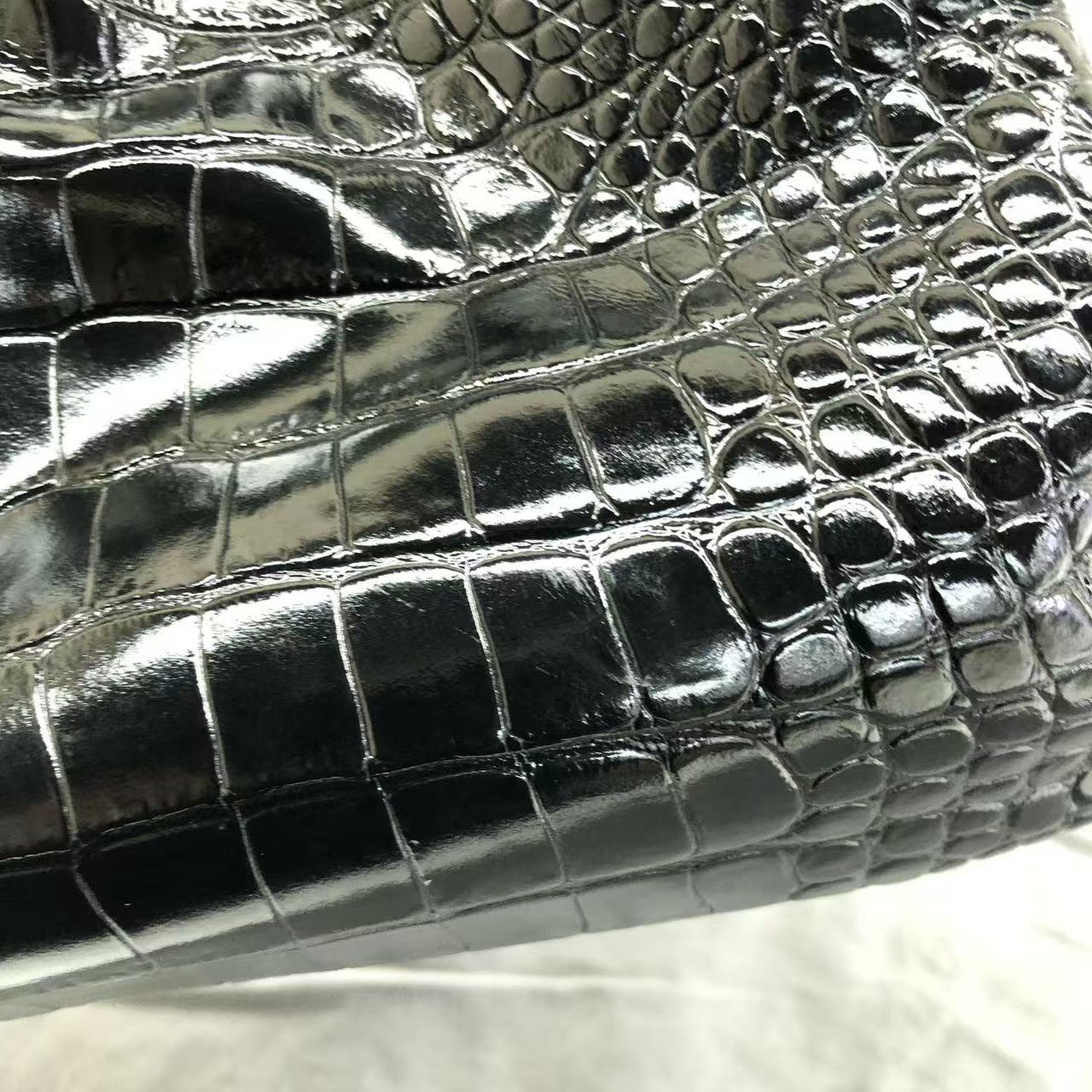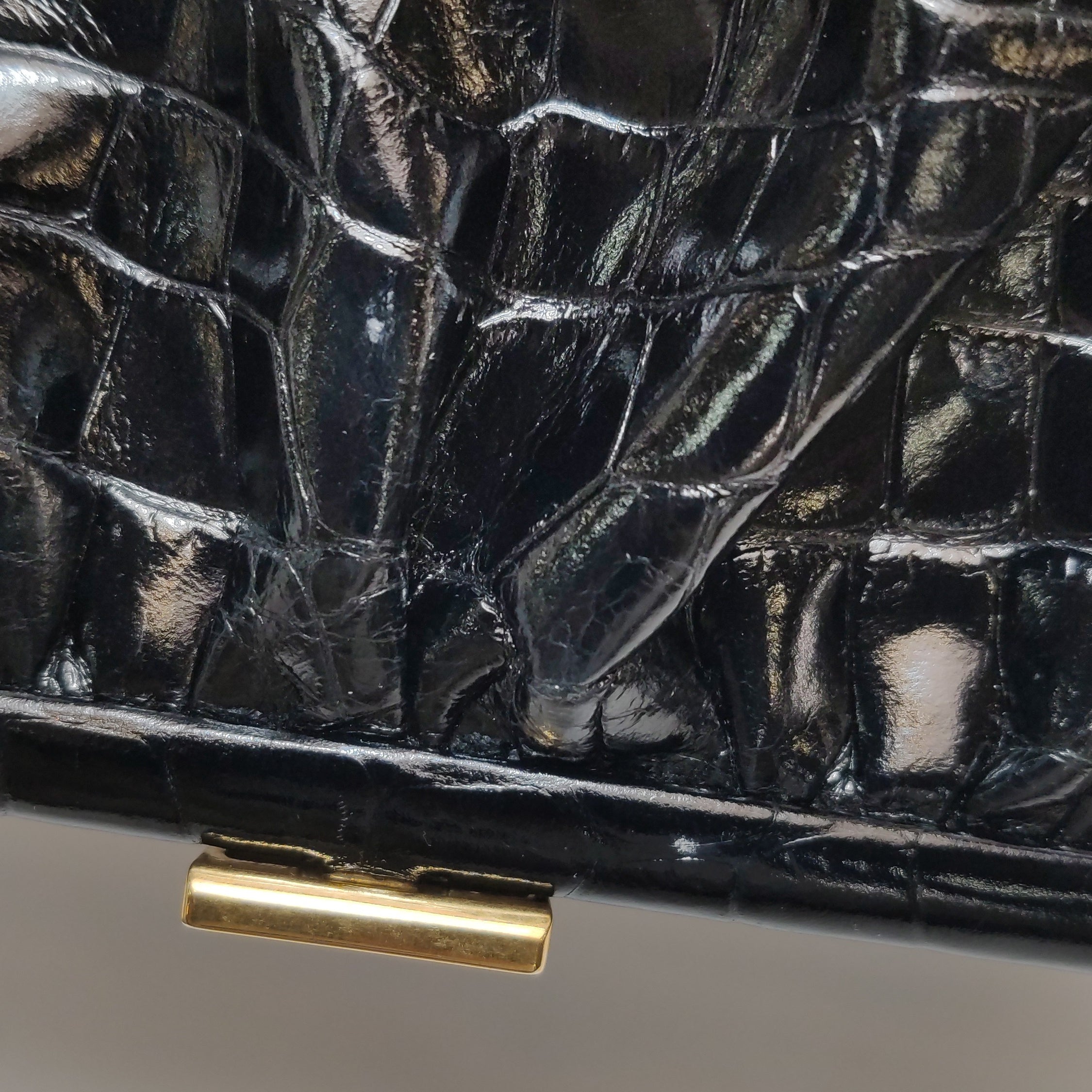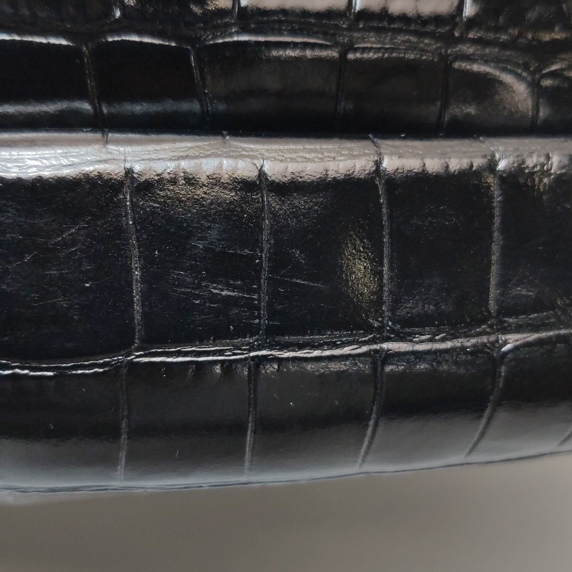 Balenciaga Pouch Black Crocodile Pattern Shiny Calfskin Leather With Strap