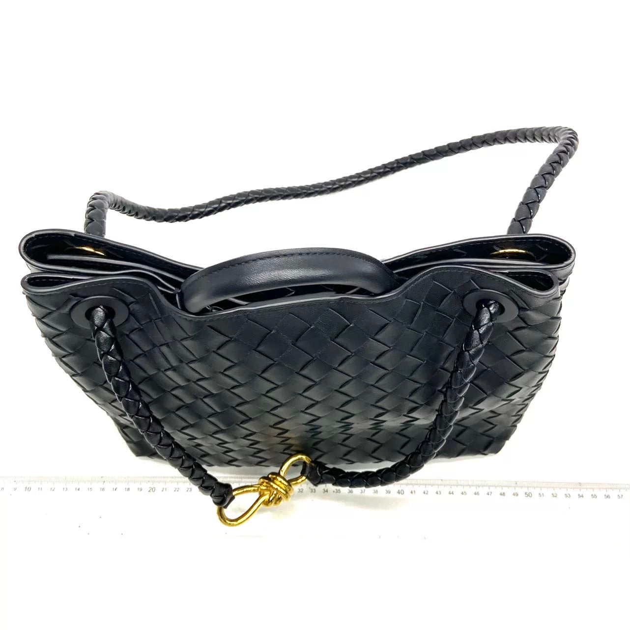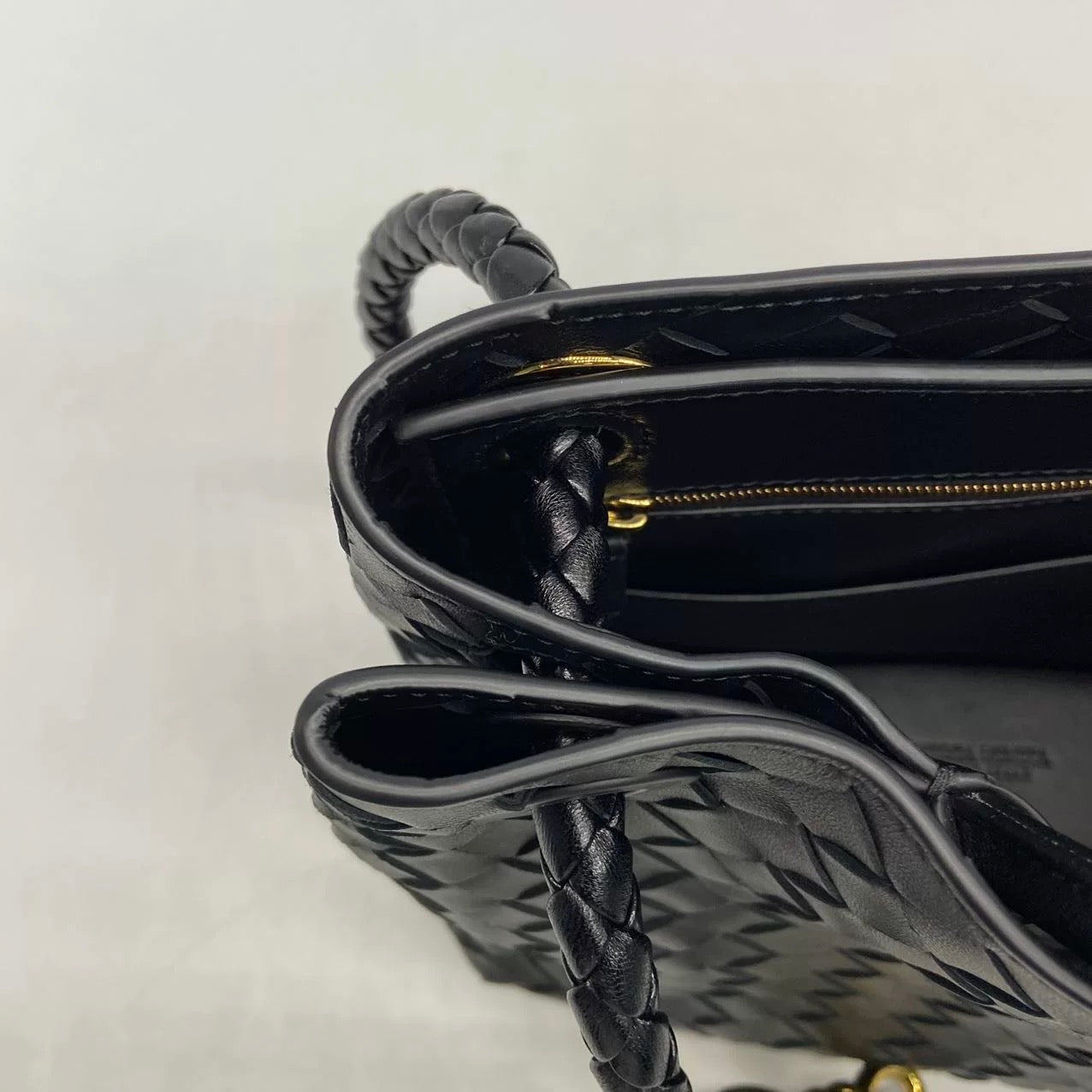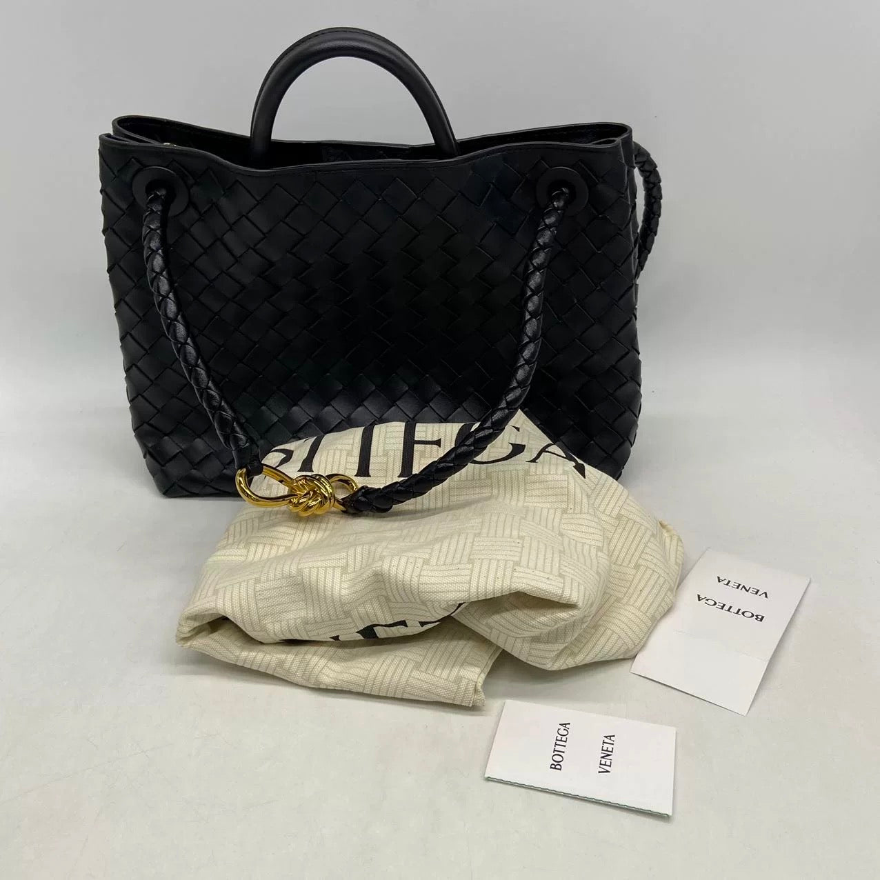 Bottega Veneta Andiamo Medium Black Intrecciato Leather Handbag