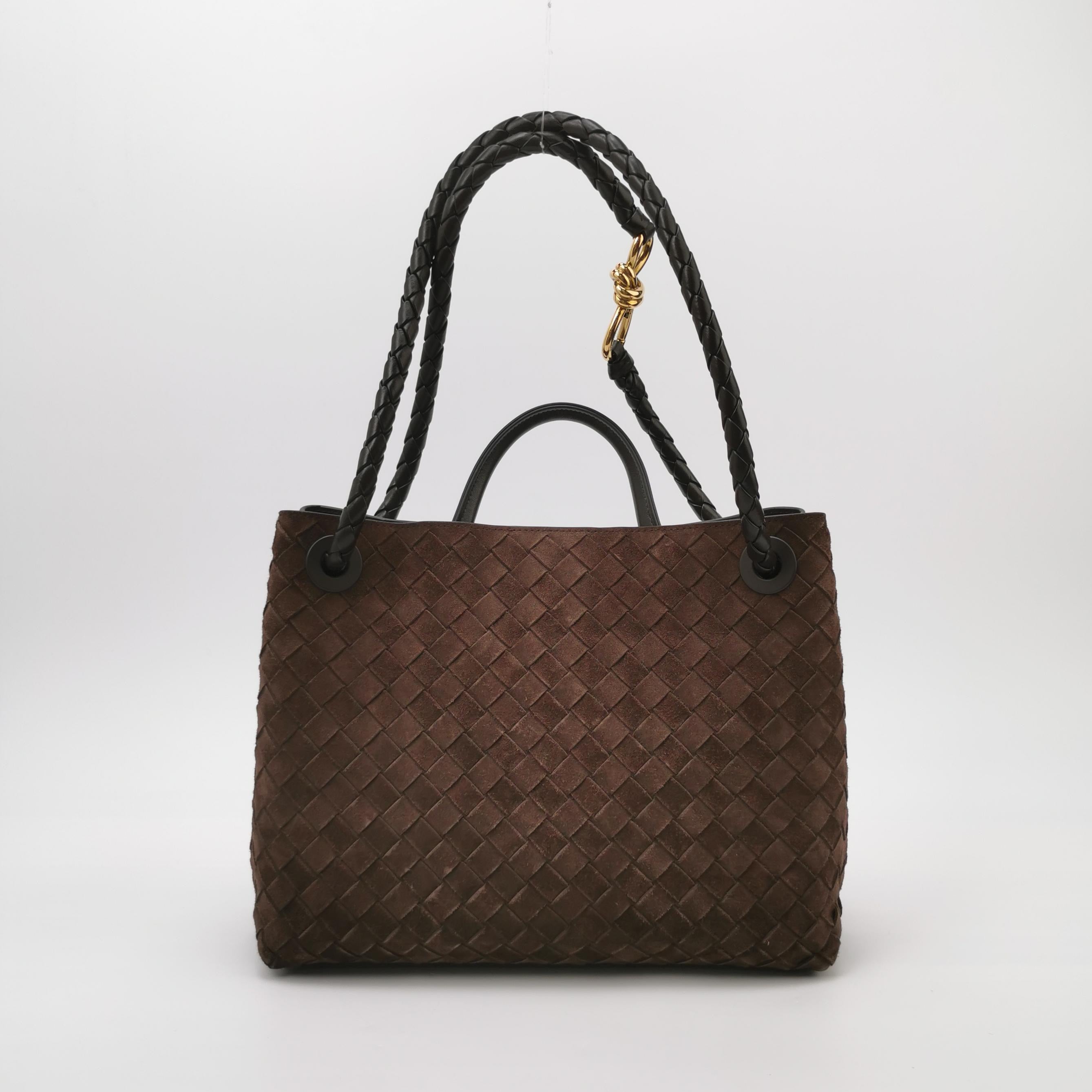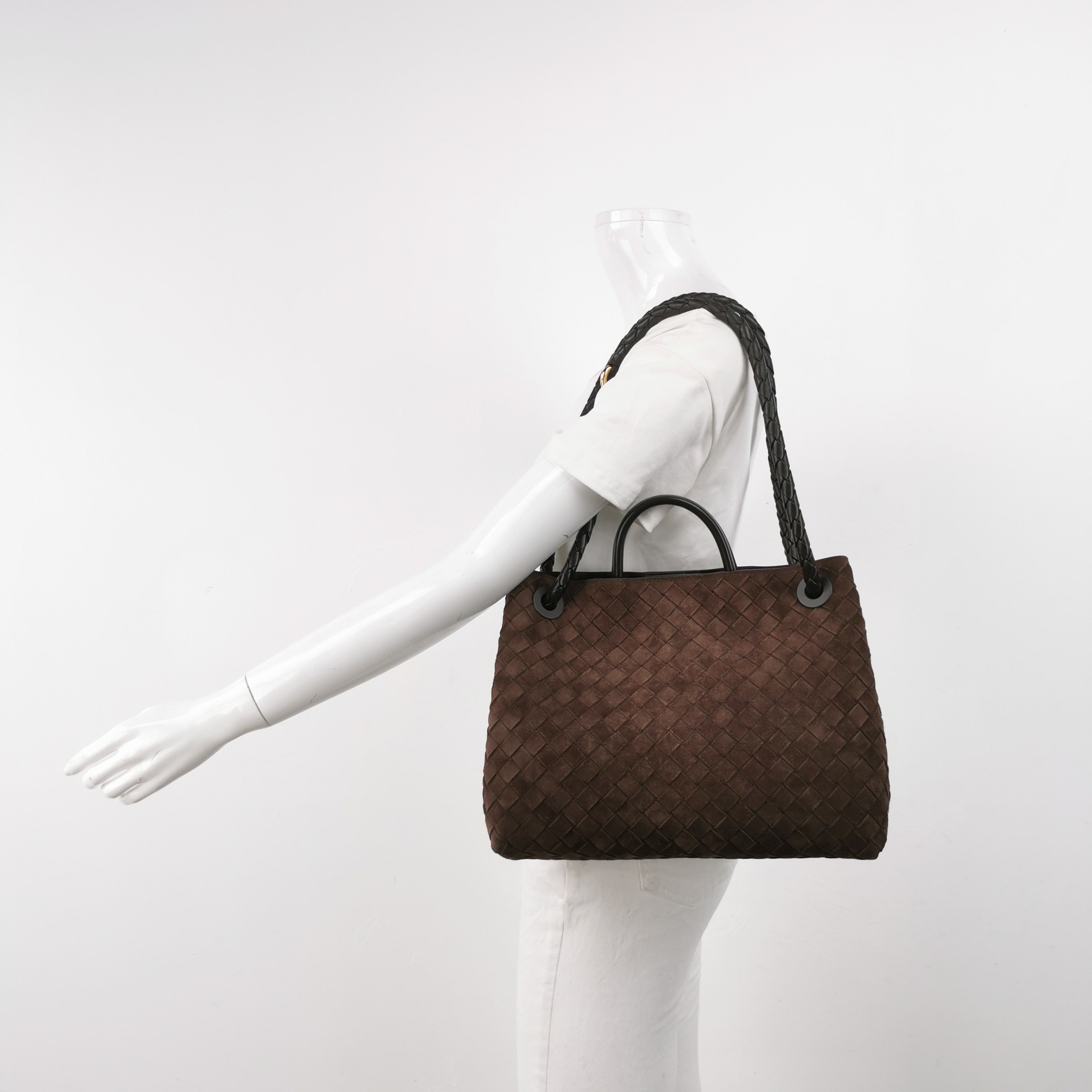 Bottega Veneta Andiamo Medium Dark Brown Suede Handbag