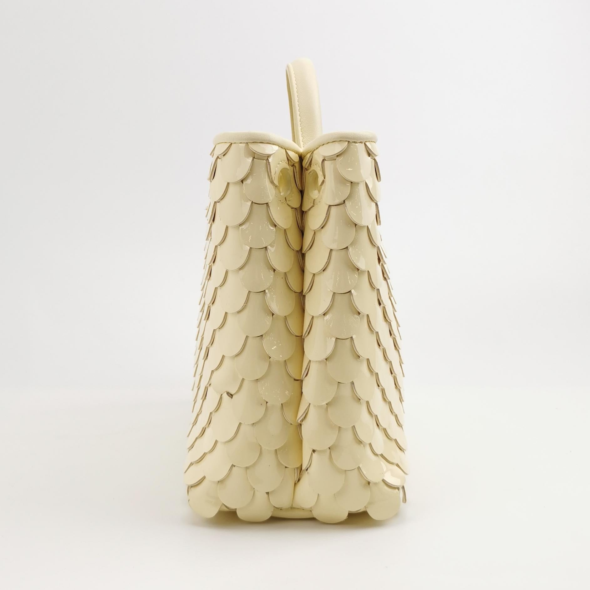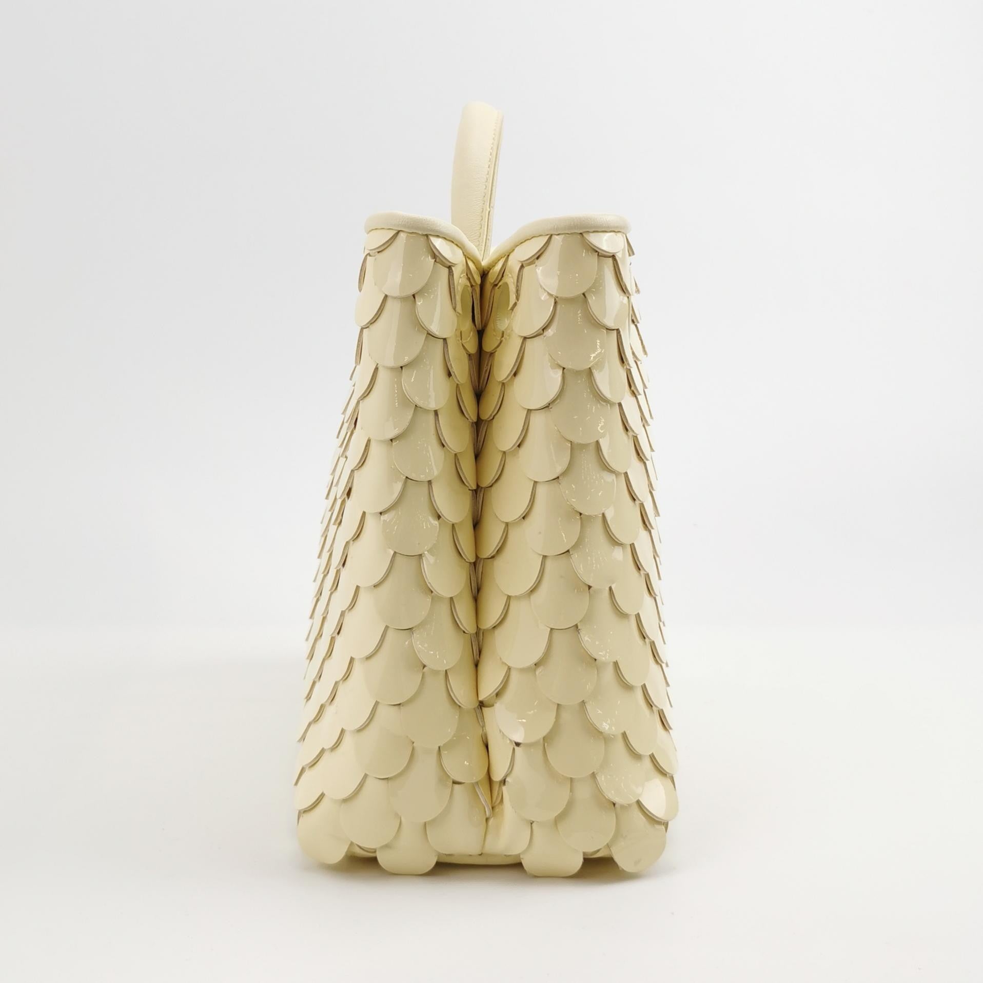 Bottega Veneta Andiamo Small Butter Yellow Fish Scale Patent Leather Handbag