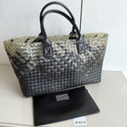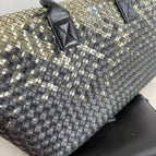Bottega Veneta Cabat Large Intreccio Black and Transparent Leather and PVC Tote Bag