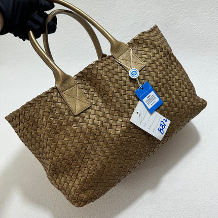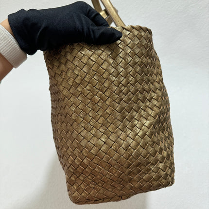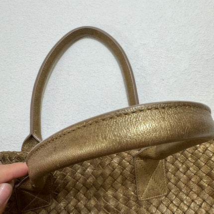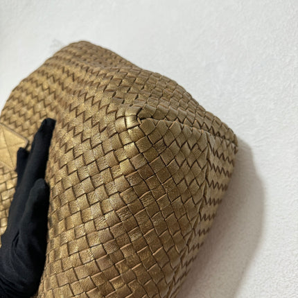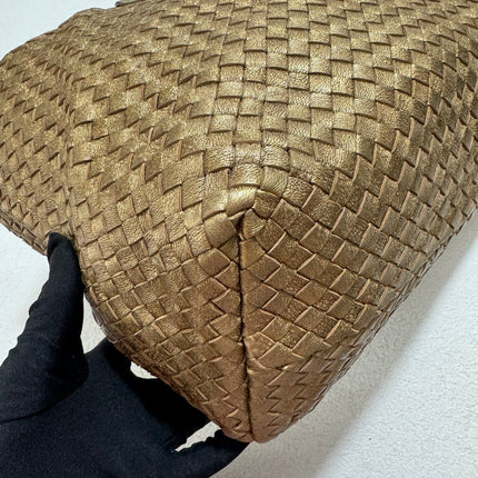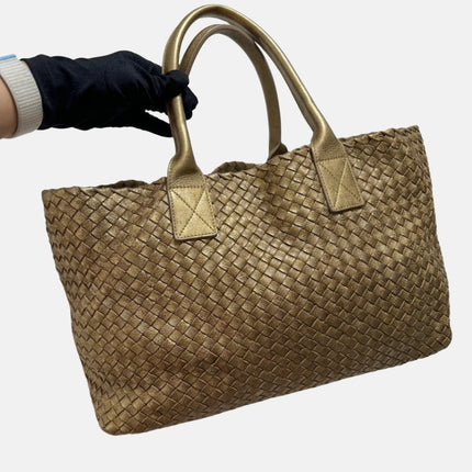 Sold Bottega Veneta Cabat Medium Intreccio Leather Tote Bag Gold