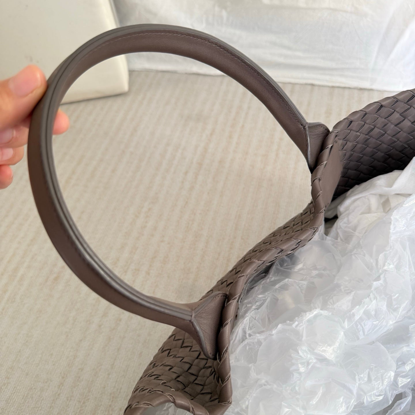 Bottega Veneta Cabat Large Intreccio Leather Tote Bag Grey 40-43cm