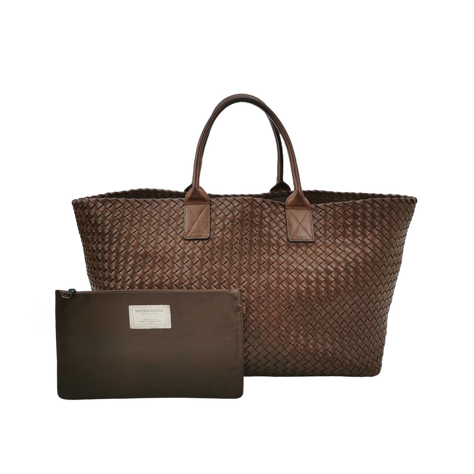 Bottega Veneta Cabat Tote Intreccio Leather Dark Chocolate Brown 44cm