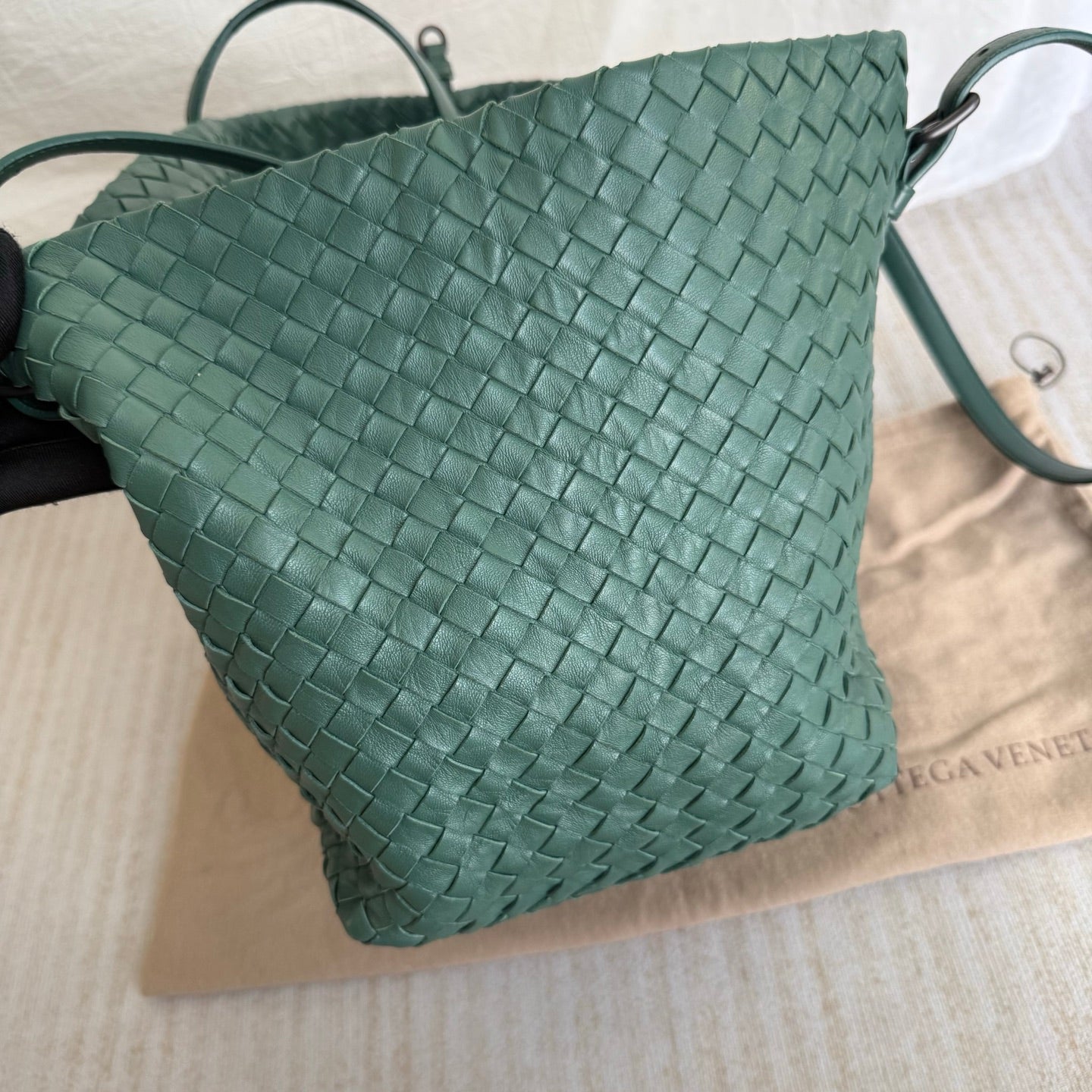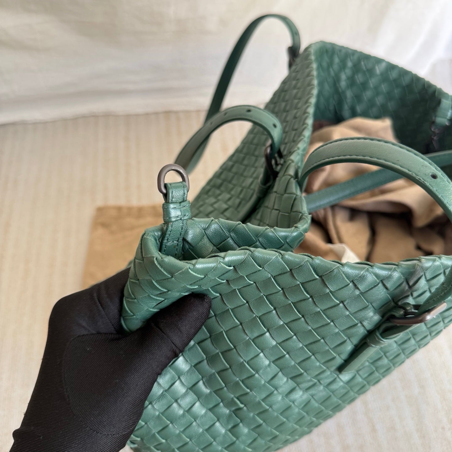 Bottega Veneta Cesta Shopper Tote Nappa Intrecciato Leather Dark Green Small