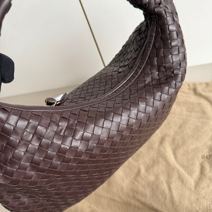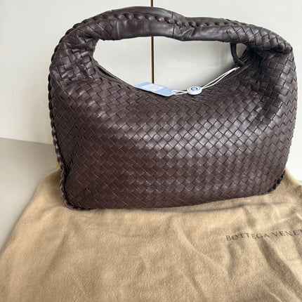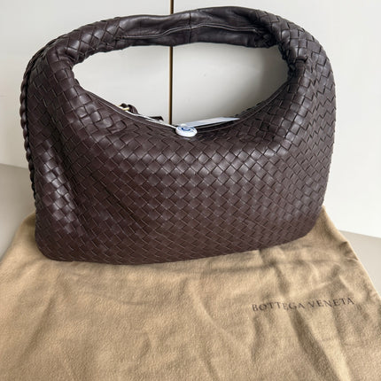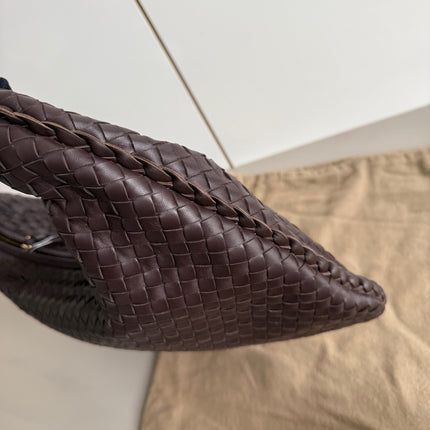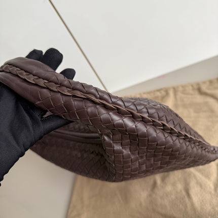 Bottega Veneta Intrecciato Hobo Bag Medium Dark Chocolate Brown Lambskin leather 40cm
