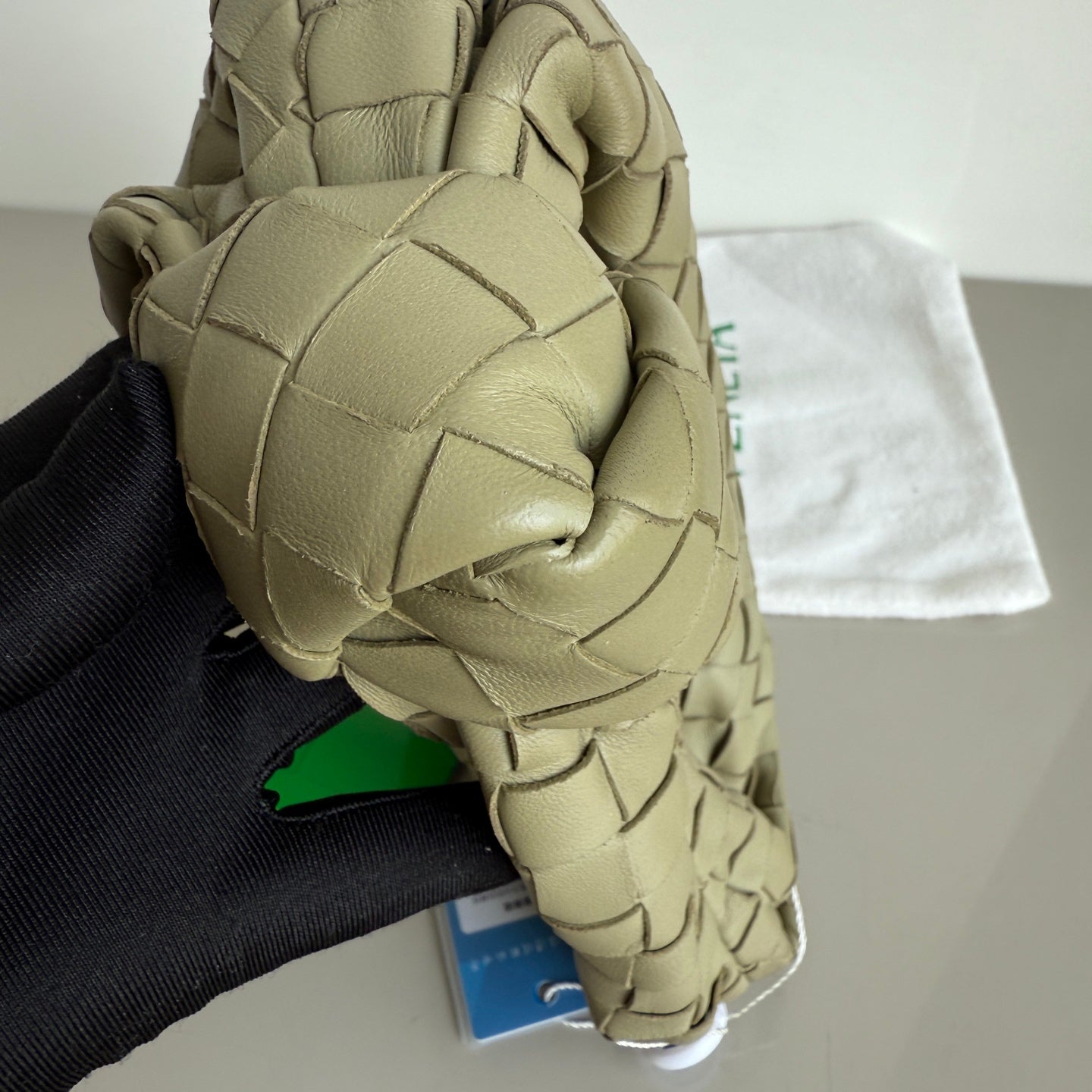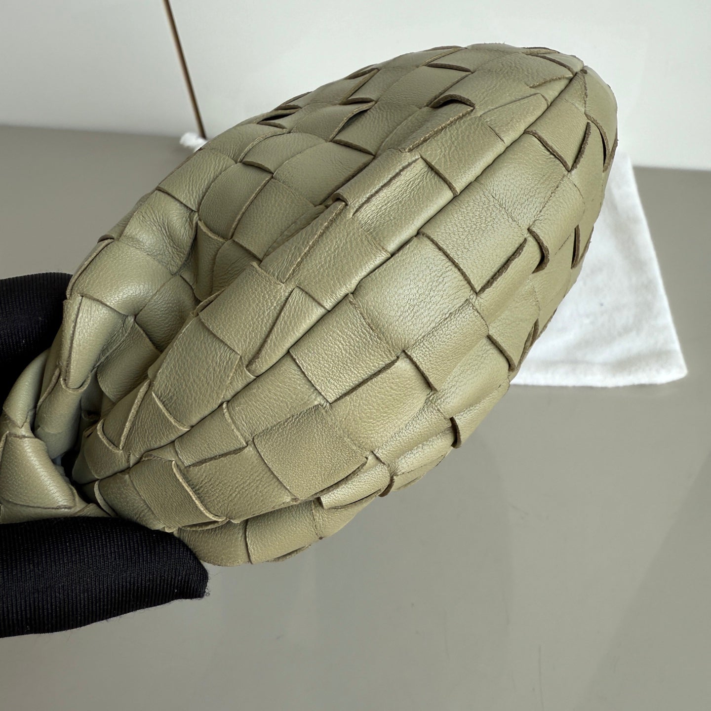 Bottega Veneta Jodie Mini Travertine Green Lambskin Leather Clutch Bag