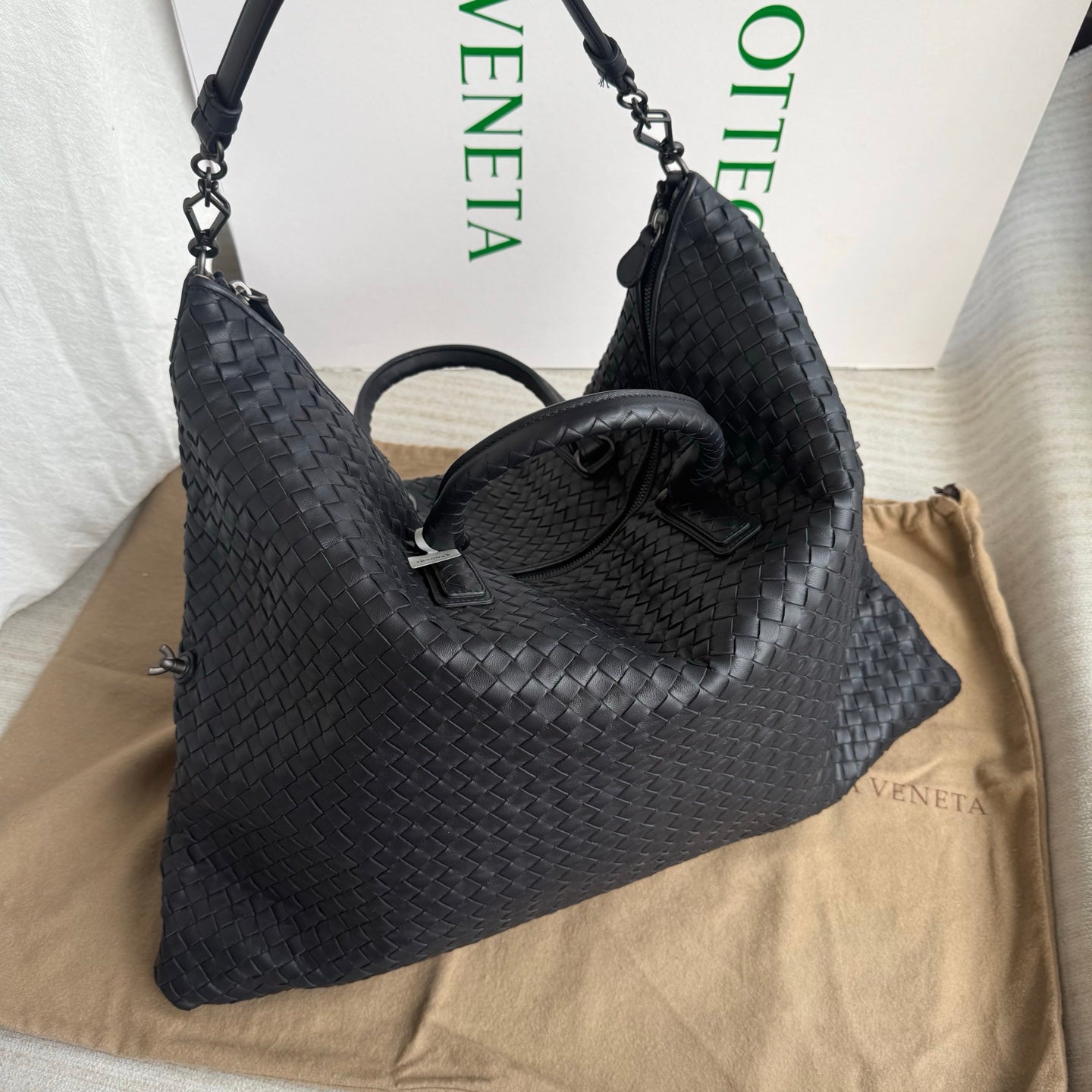 Bottega Veneta Maxi Convertible Tote Bag Hobo Black Leather Two-way Carry 50cm