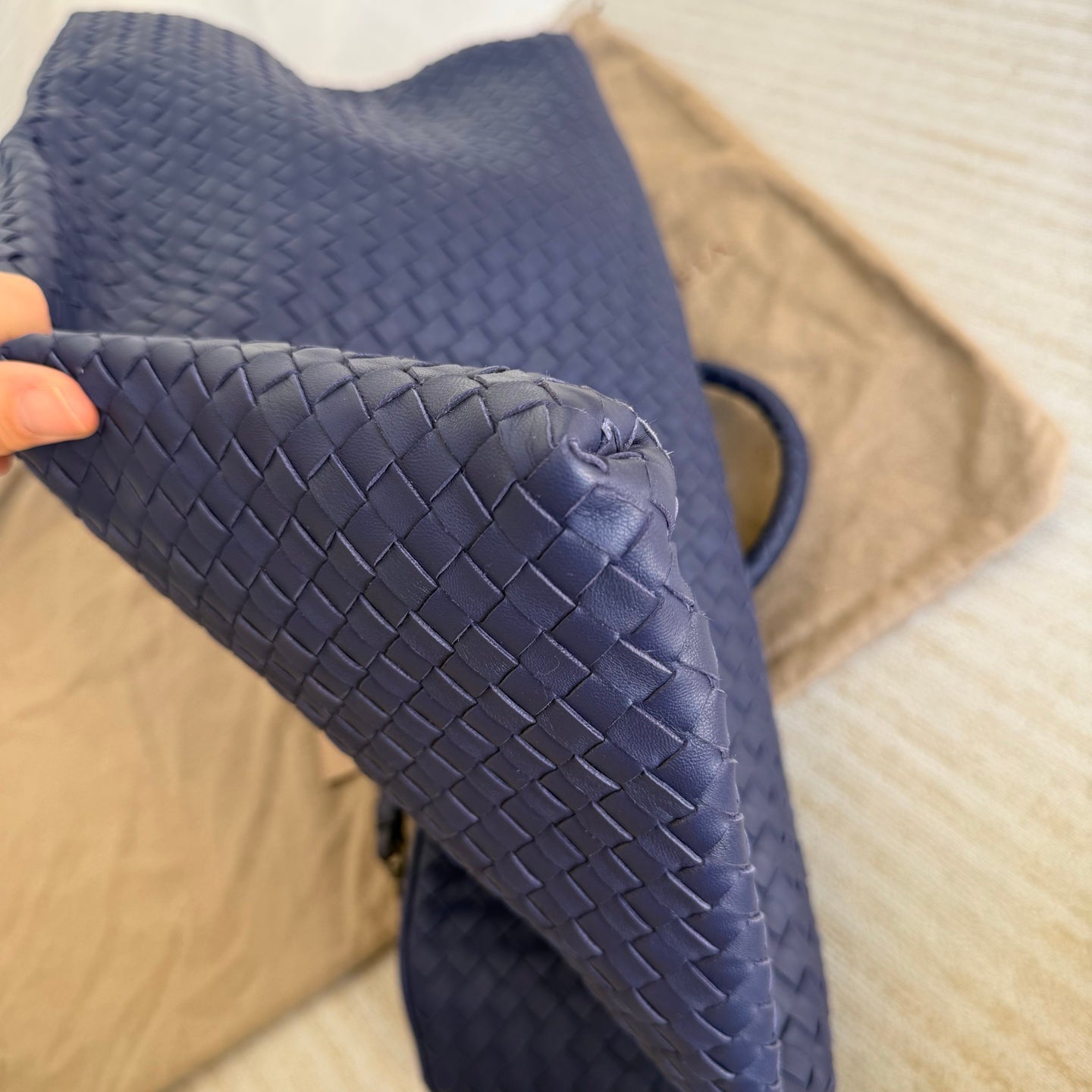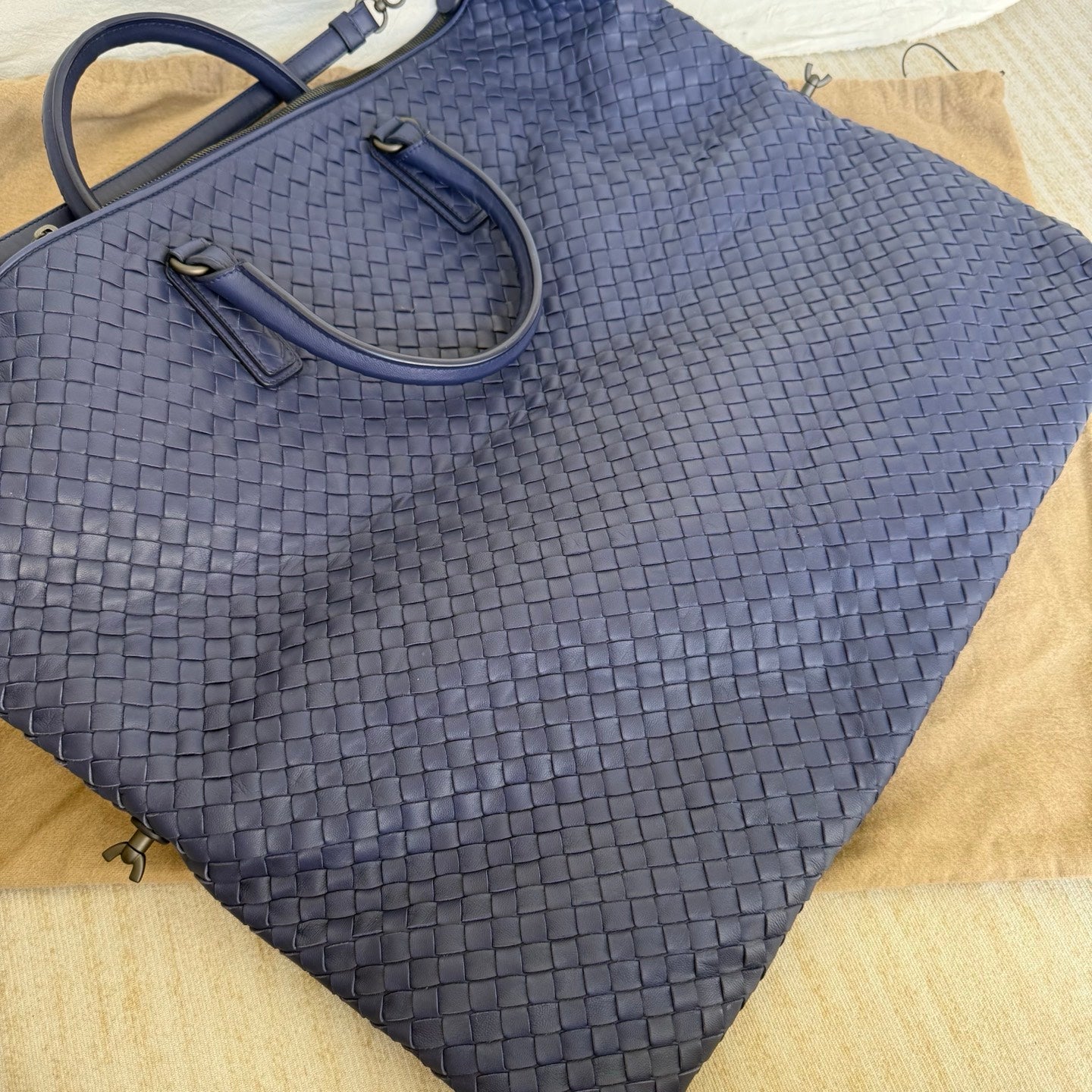 Bottega Veneta Maxi Convertible Tote Navy Leather 50cm