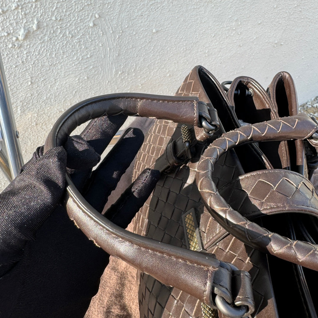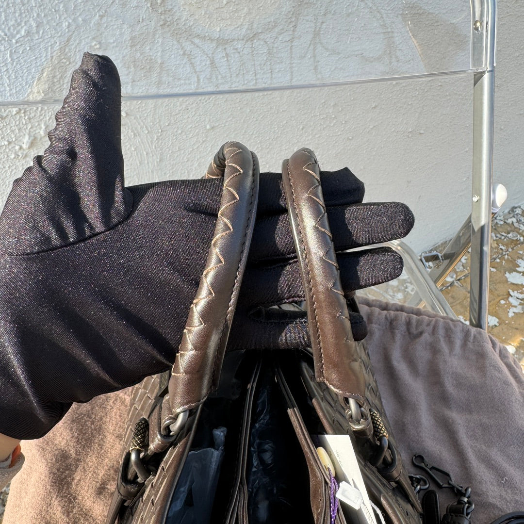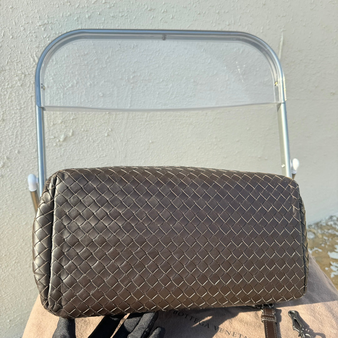 Bottega Veneta Roma Handbag Bag Intrecciato Nappa Leather Chocolate Brown Small 30cm