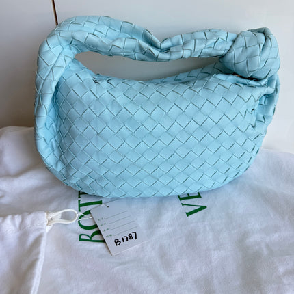 Bottega Veneta Teen Jodie Baby Blue Intrecciato Leather Gold Hardware