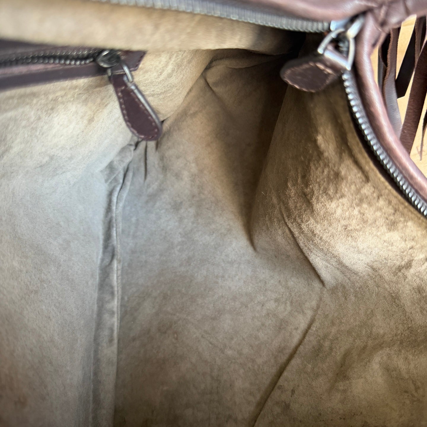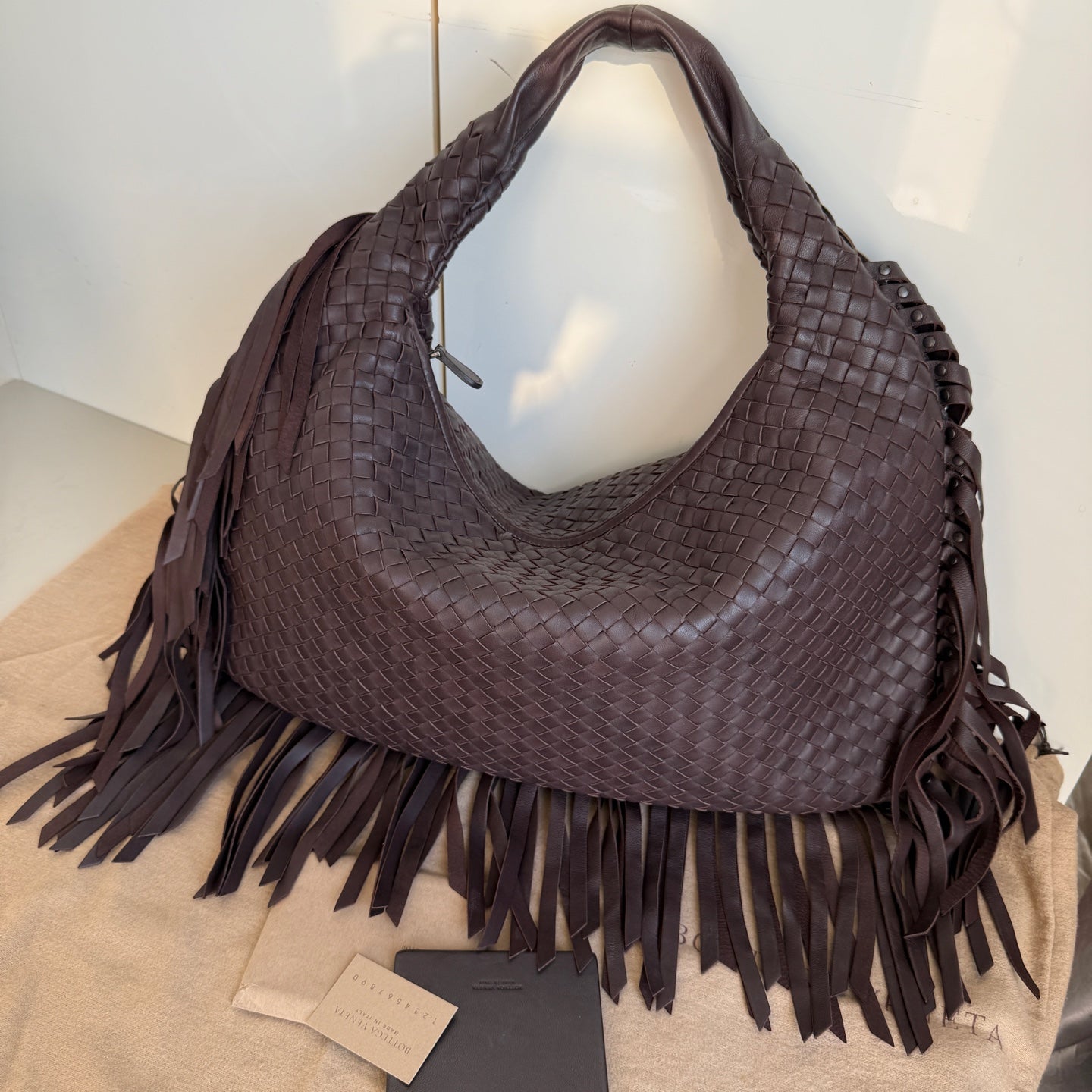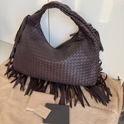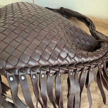 Bottega Veneta Veneta Fringed Hobo Large Dark Chocolate Brown 47cm Lambskin Leather