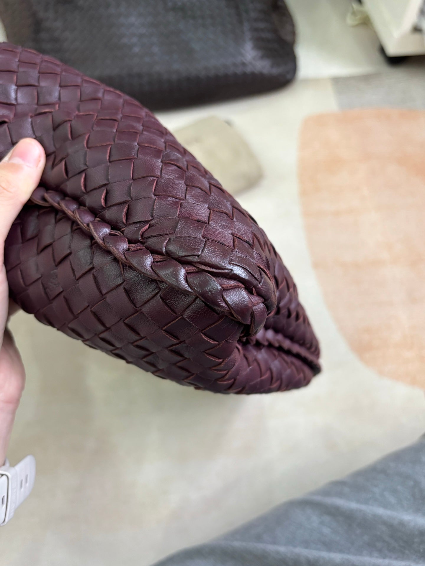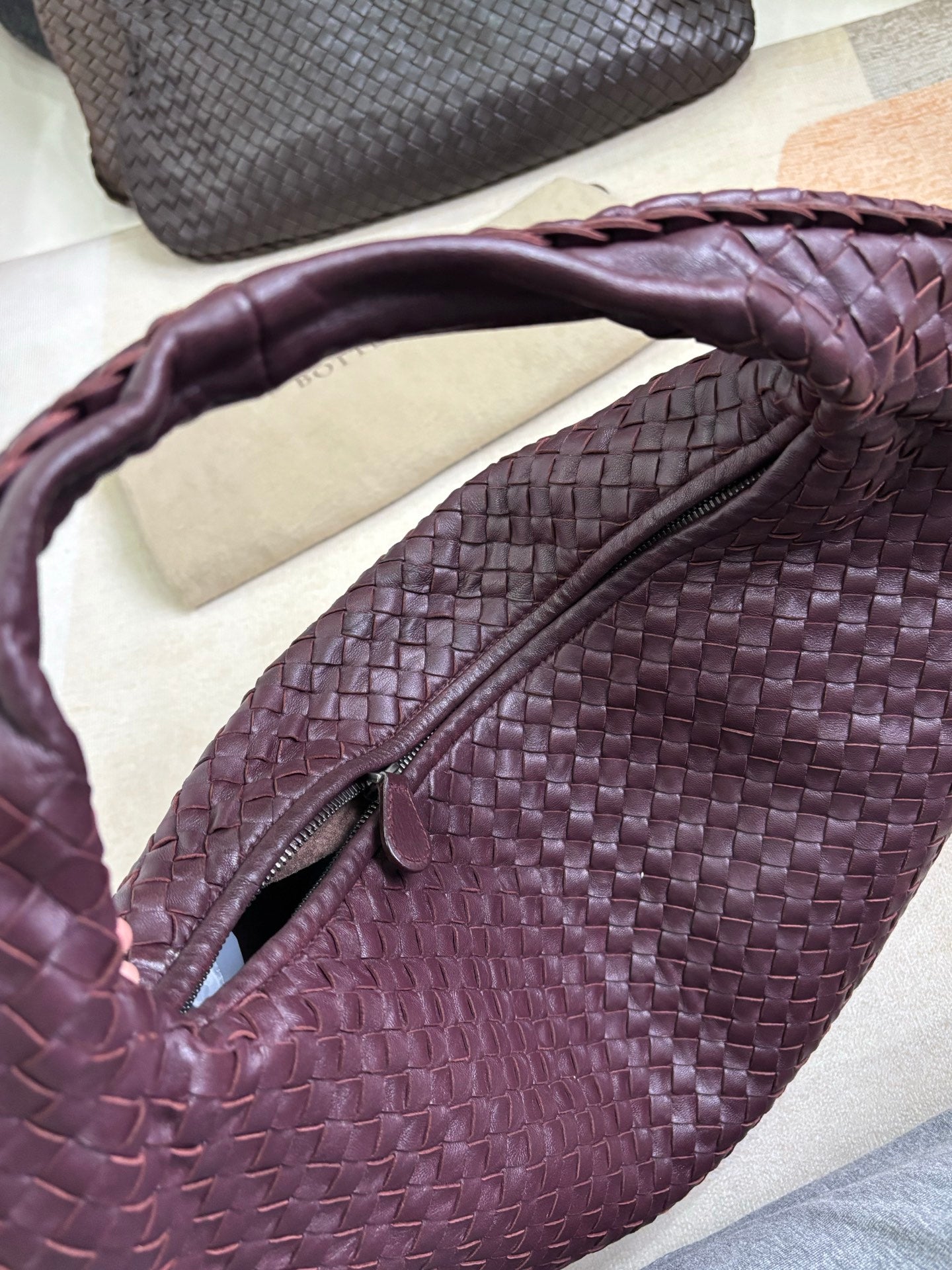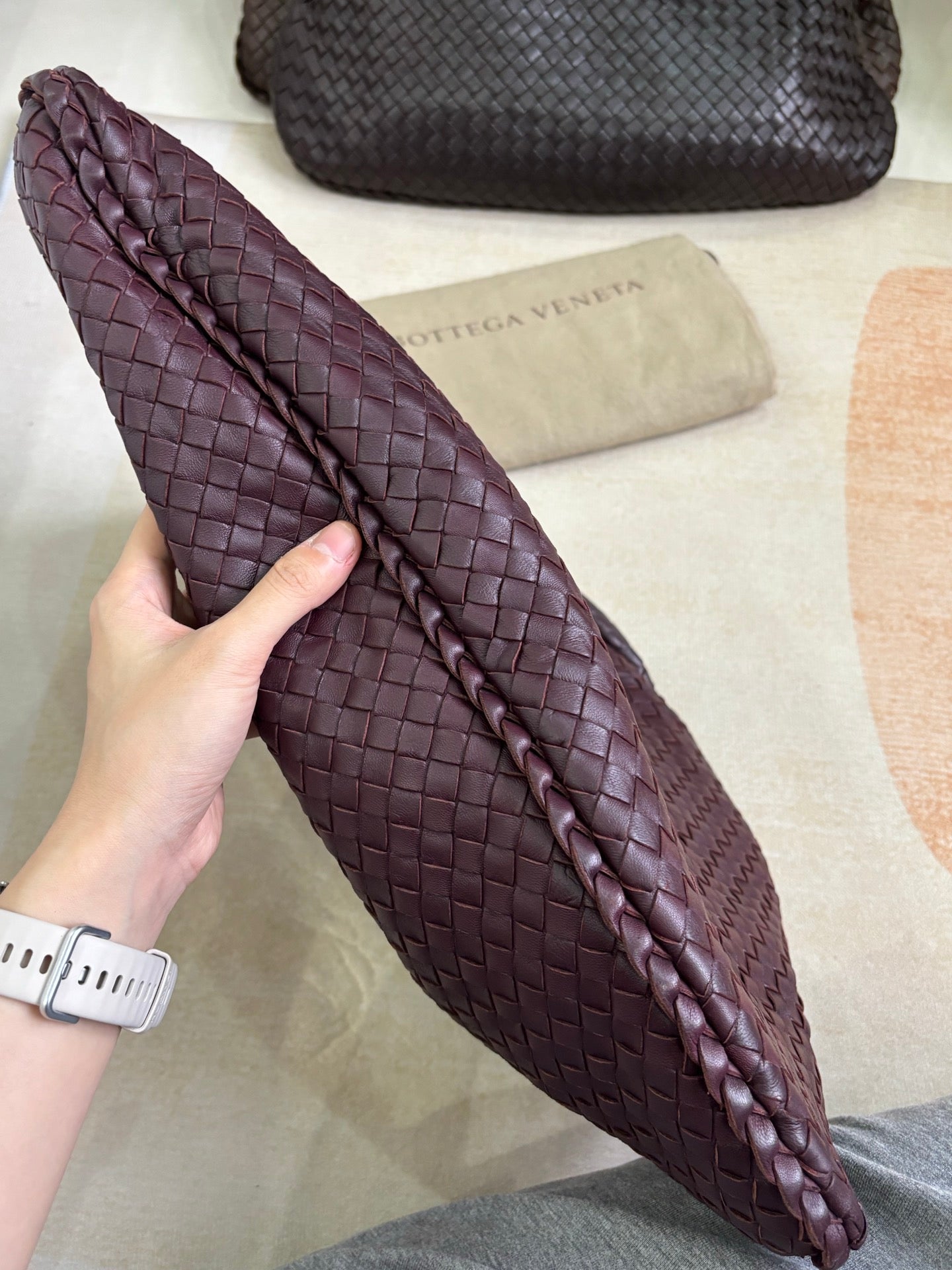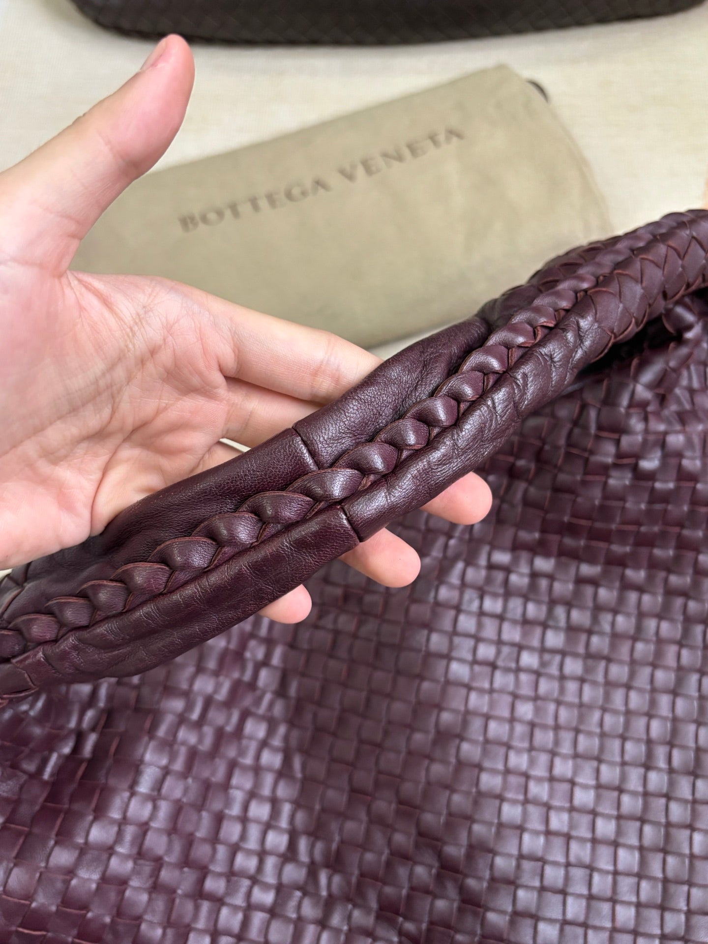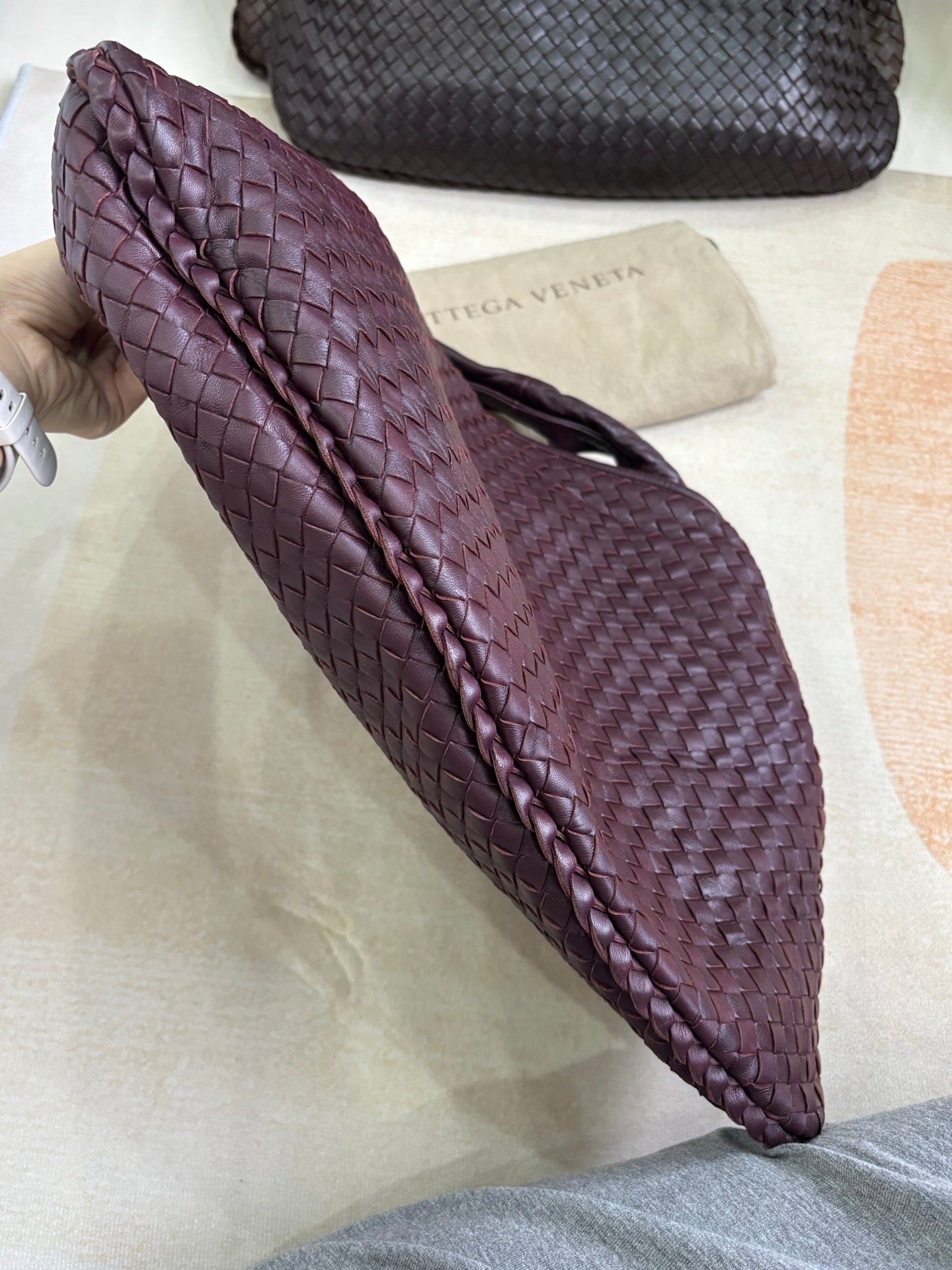 Bottega Veneta Veneta Hobo Burgundy Wine Intreciatto Leather Bag Large 48cm