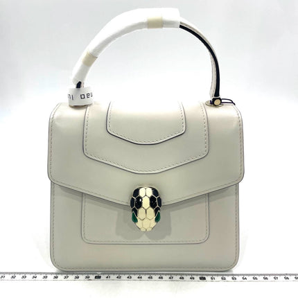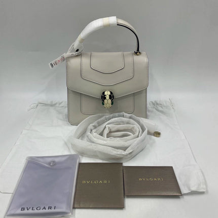 Bvlgari Serpenti Forever Small Leather Top Handle Crossbody Bag White