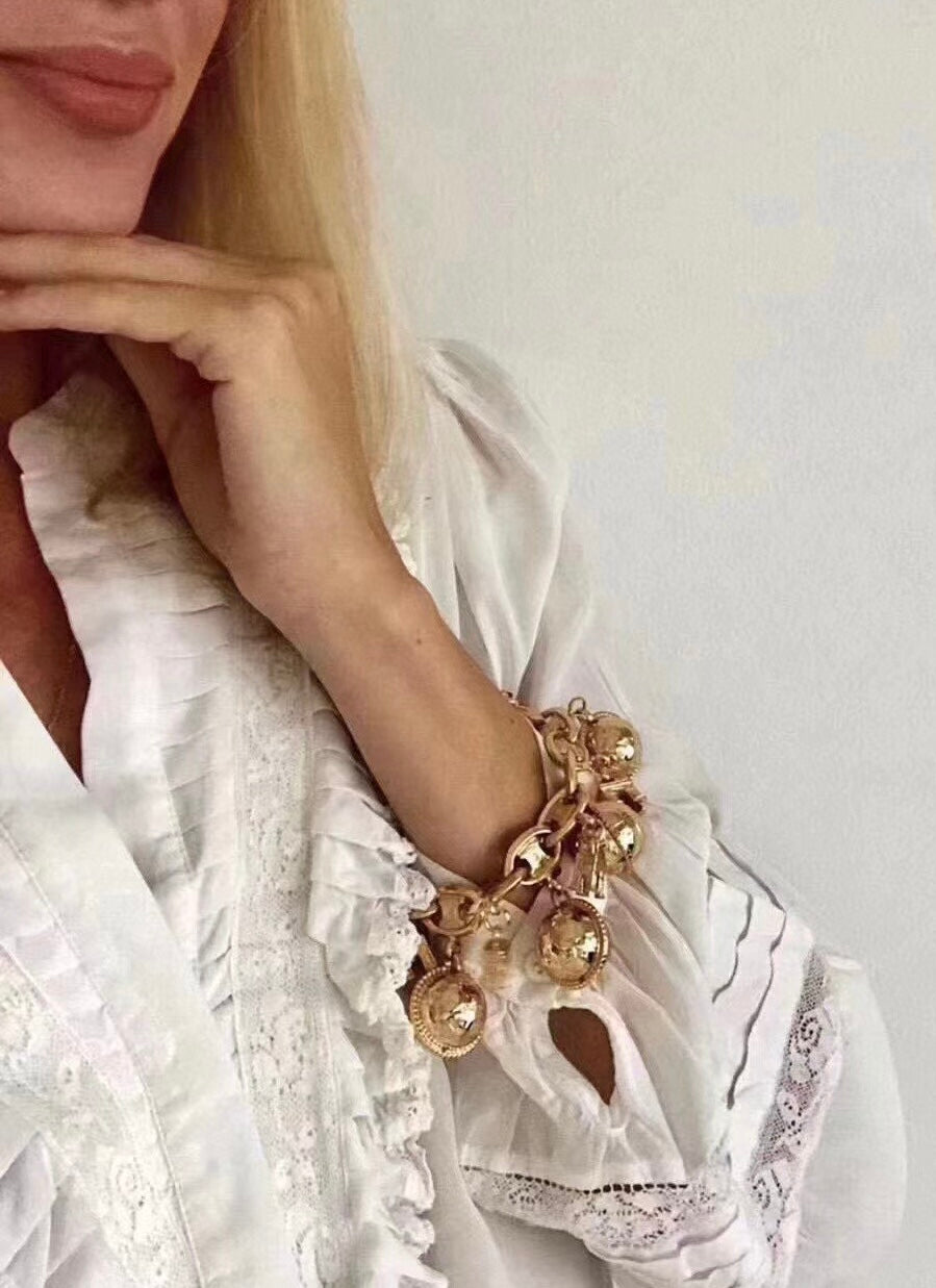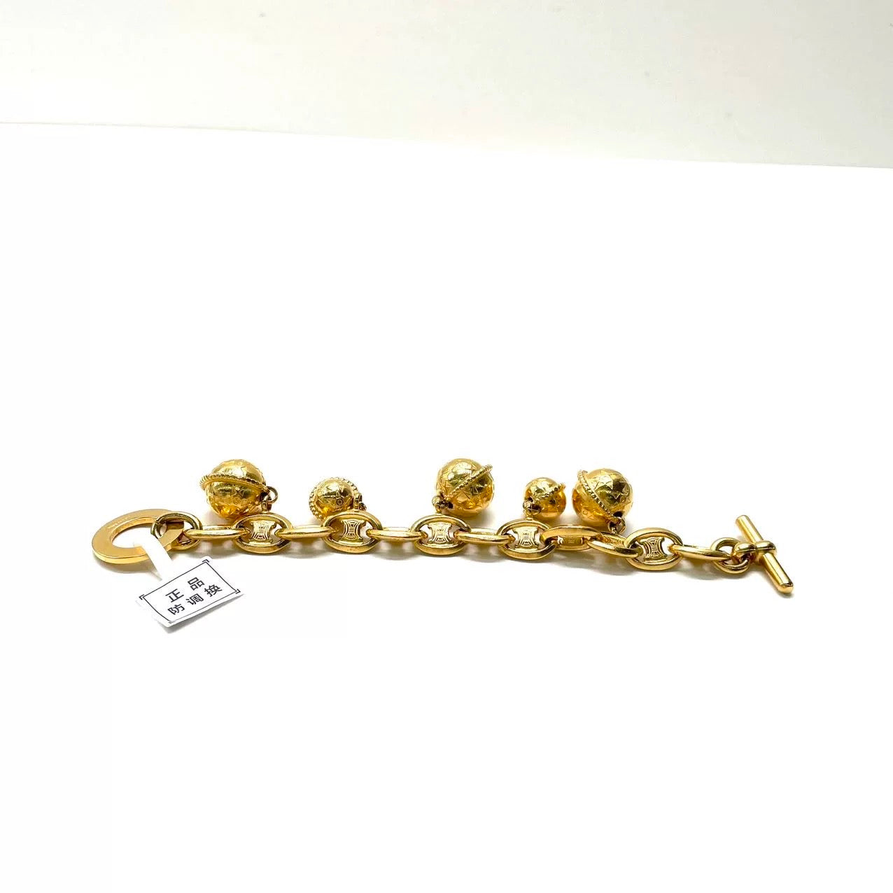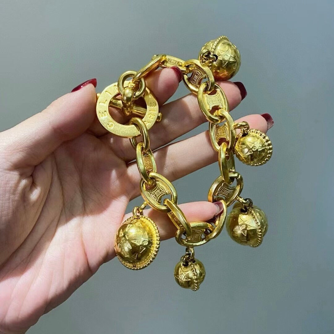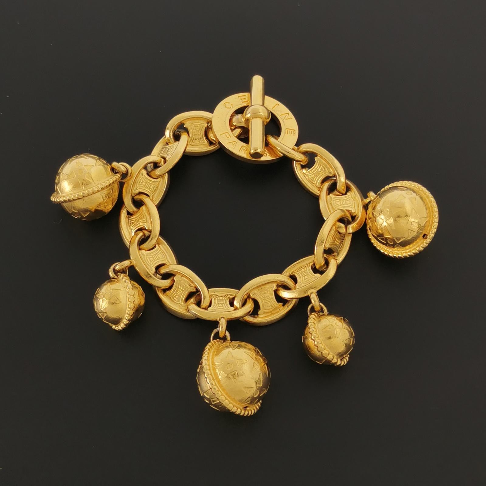 Celine 1990s Vintage Gold-tone Triomphe Planet Link Charm Bracelet