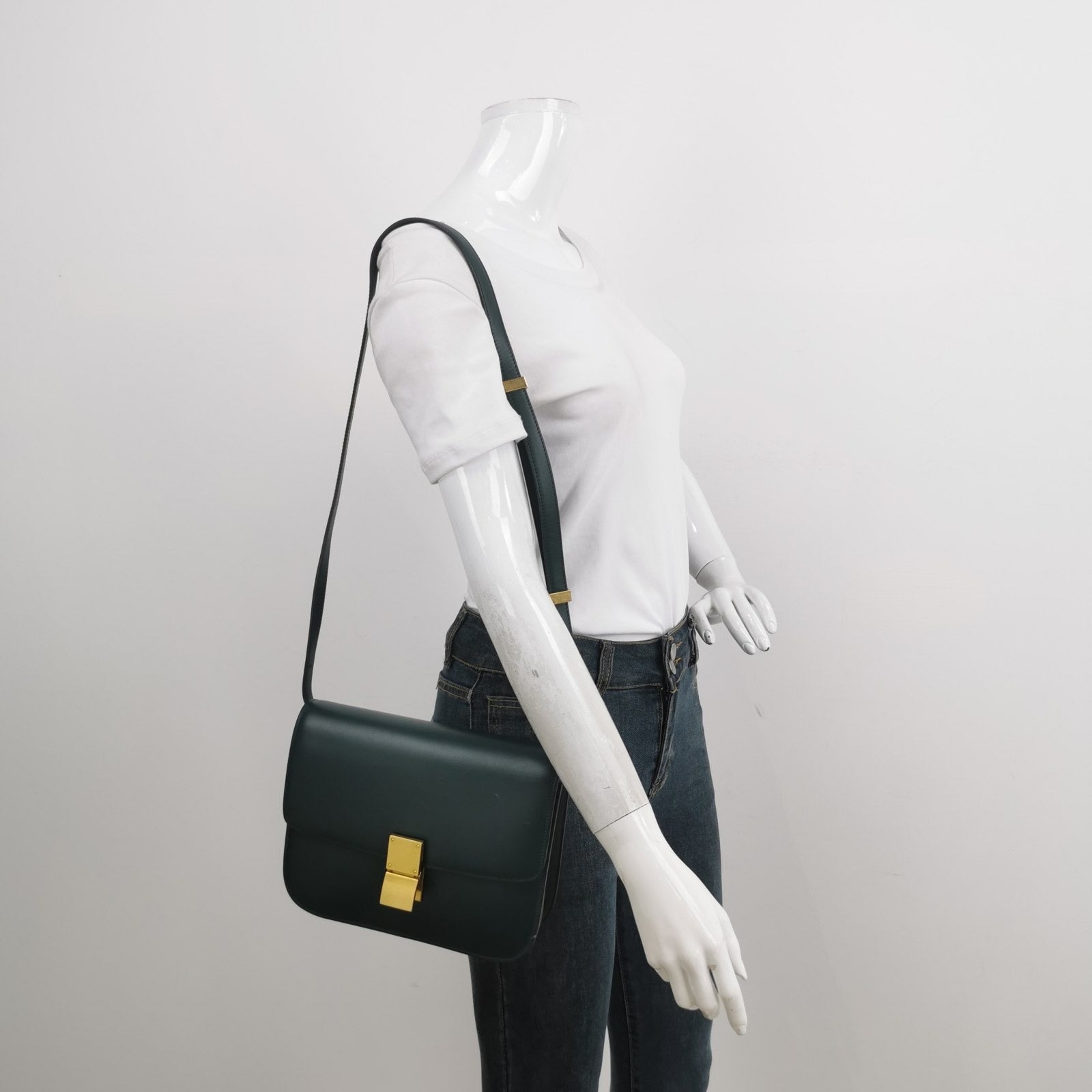 Sold CELINE Classic Box Flap Dark Green Leather crossbody bag