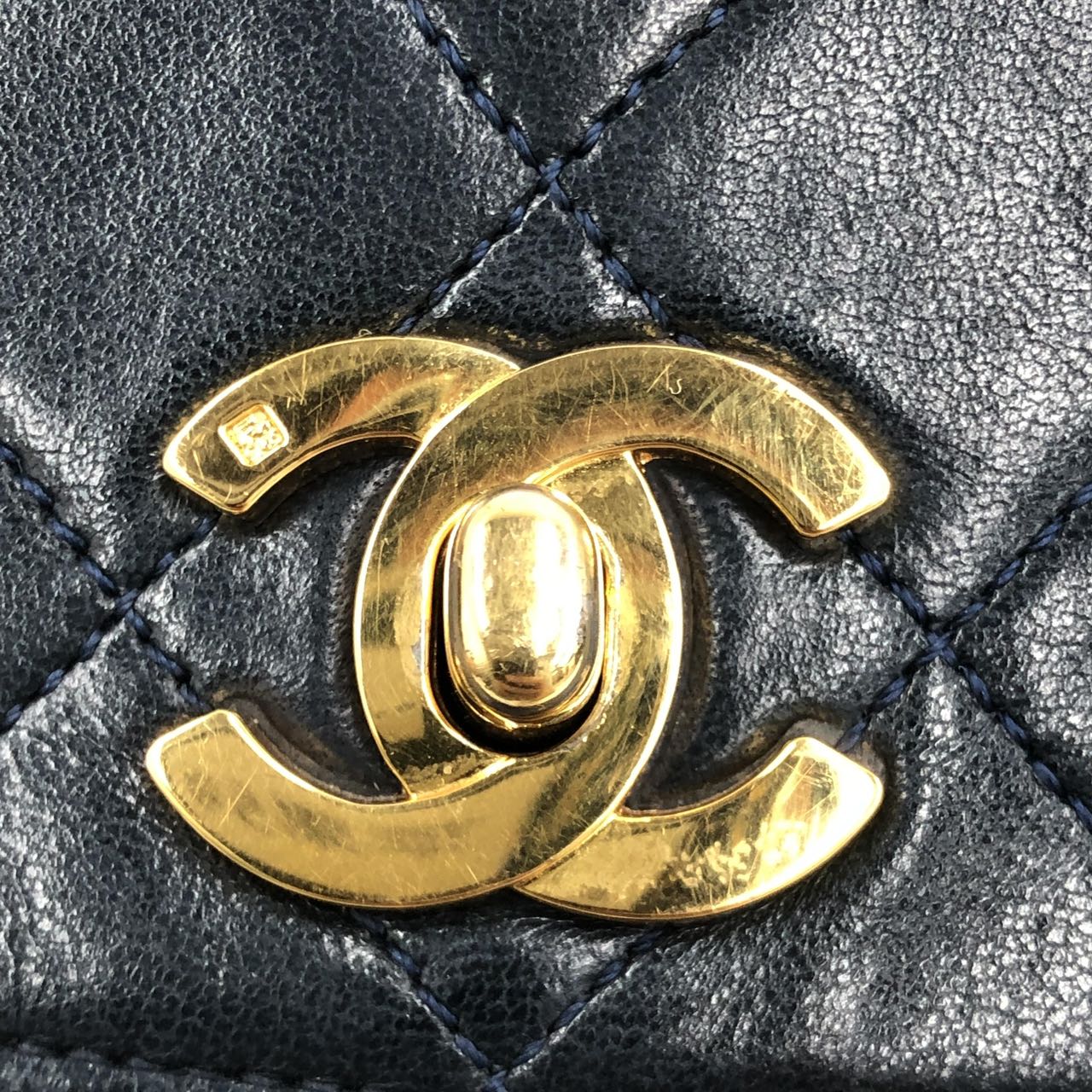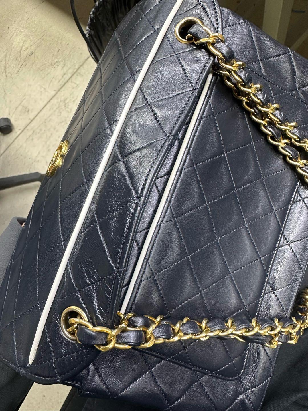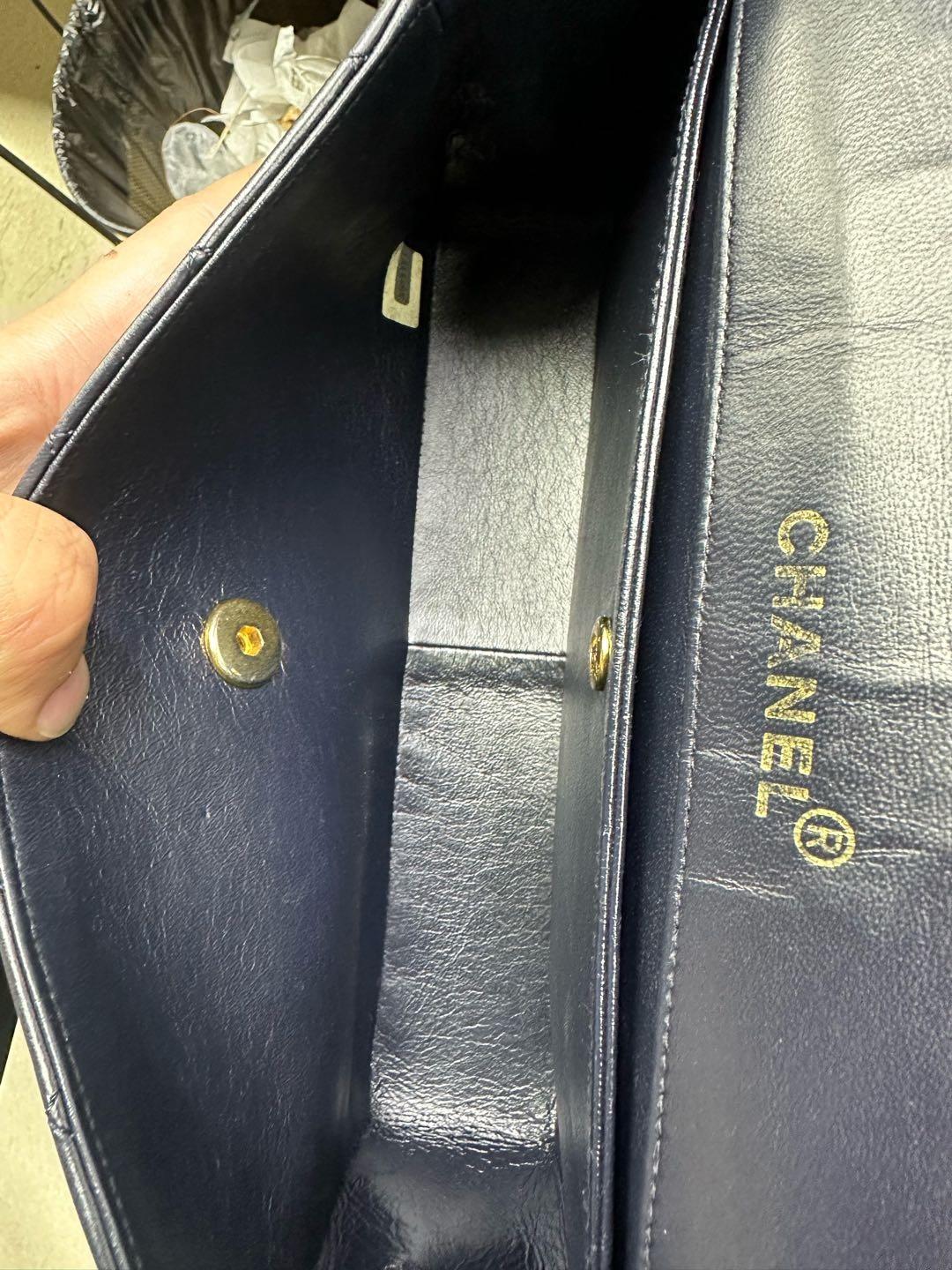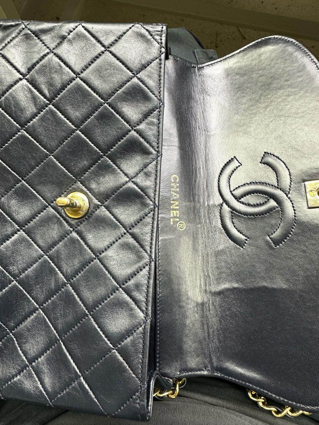 Chanel 1989-1991 Navy Lambskin Quilted Flap Bag 24k Gold Hardware