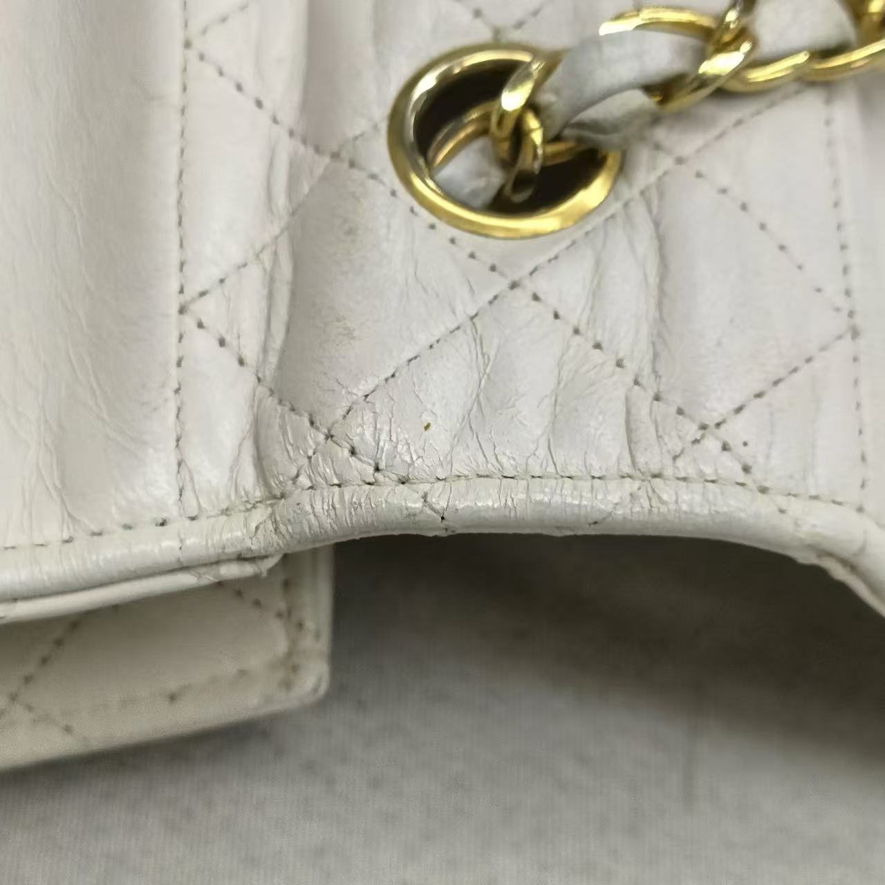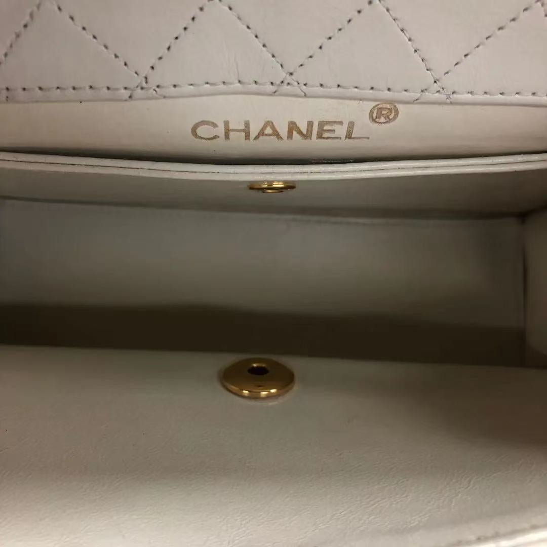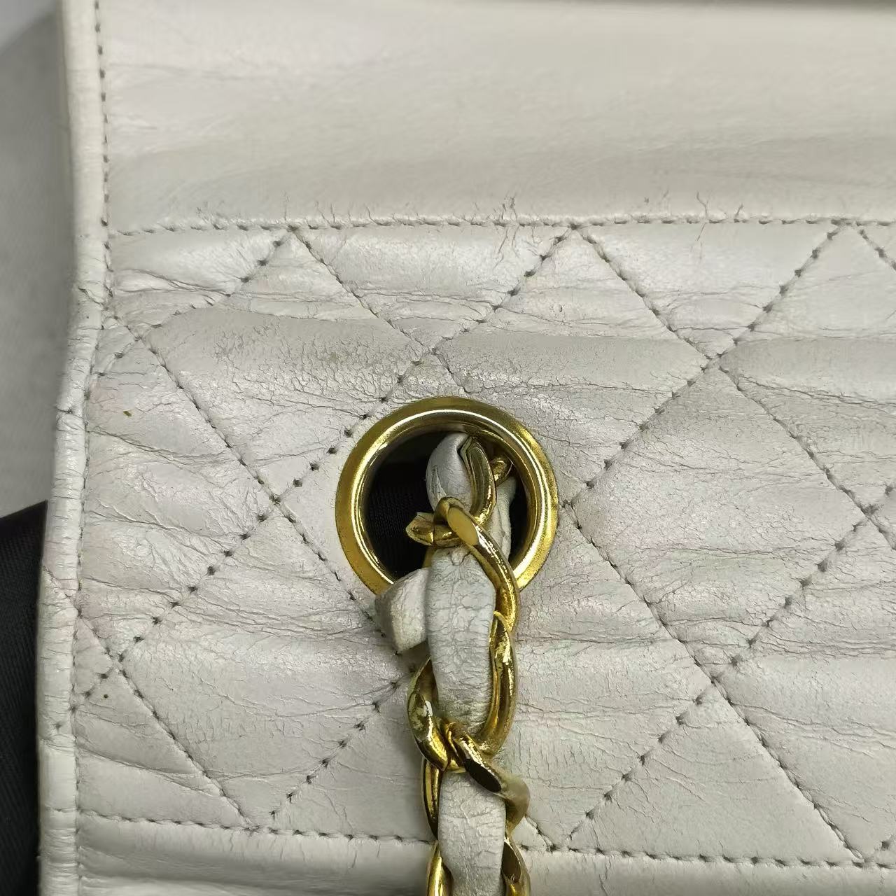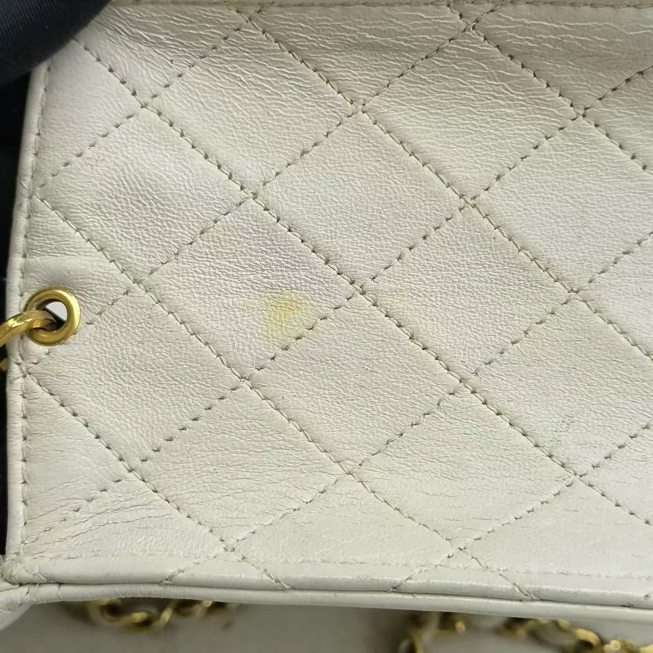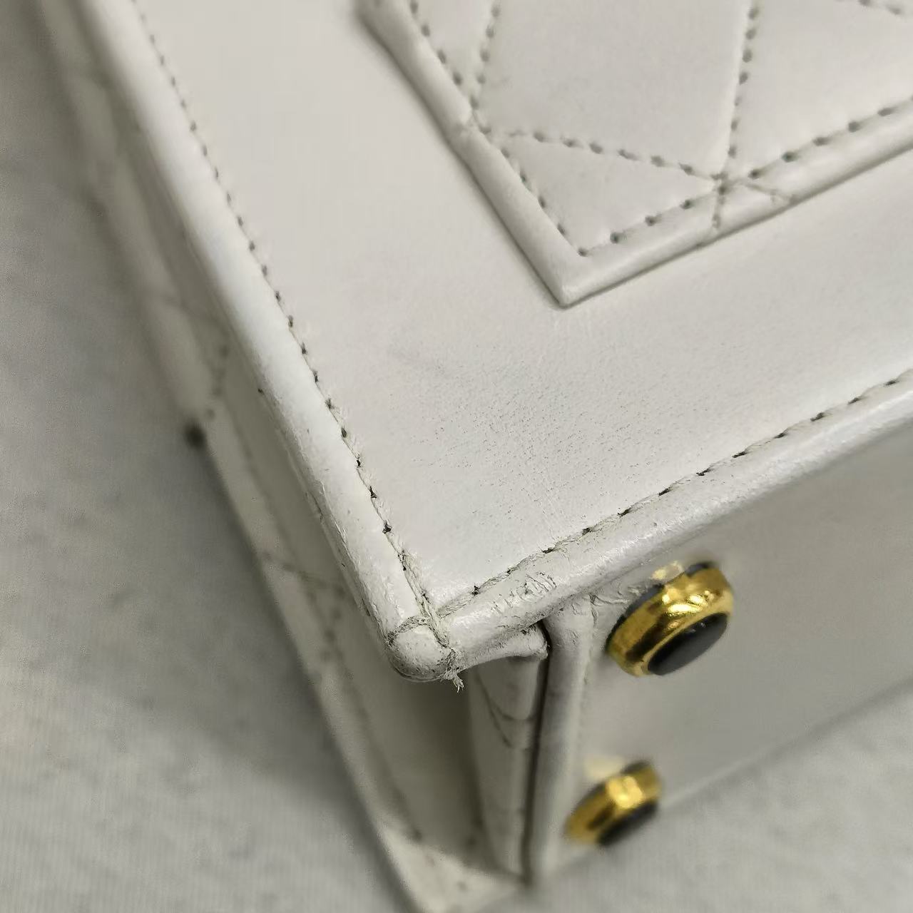 Chanel 1989-1991 White Lambskin Trapezium Shape Flap Bag