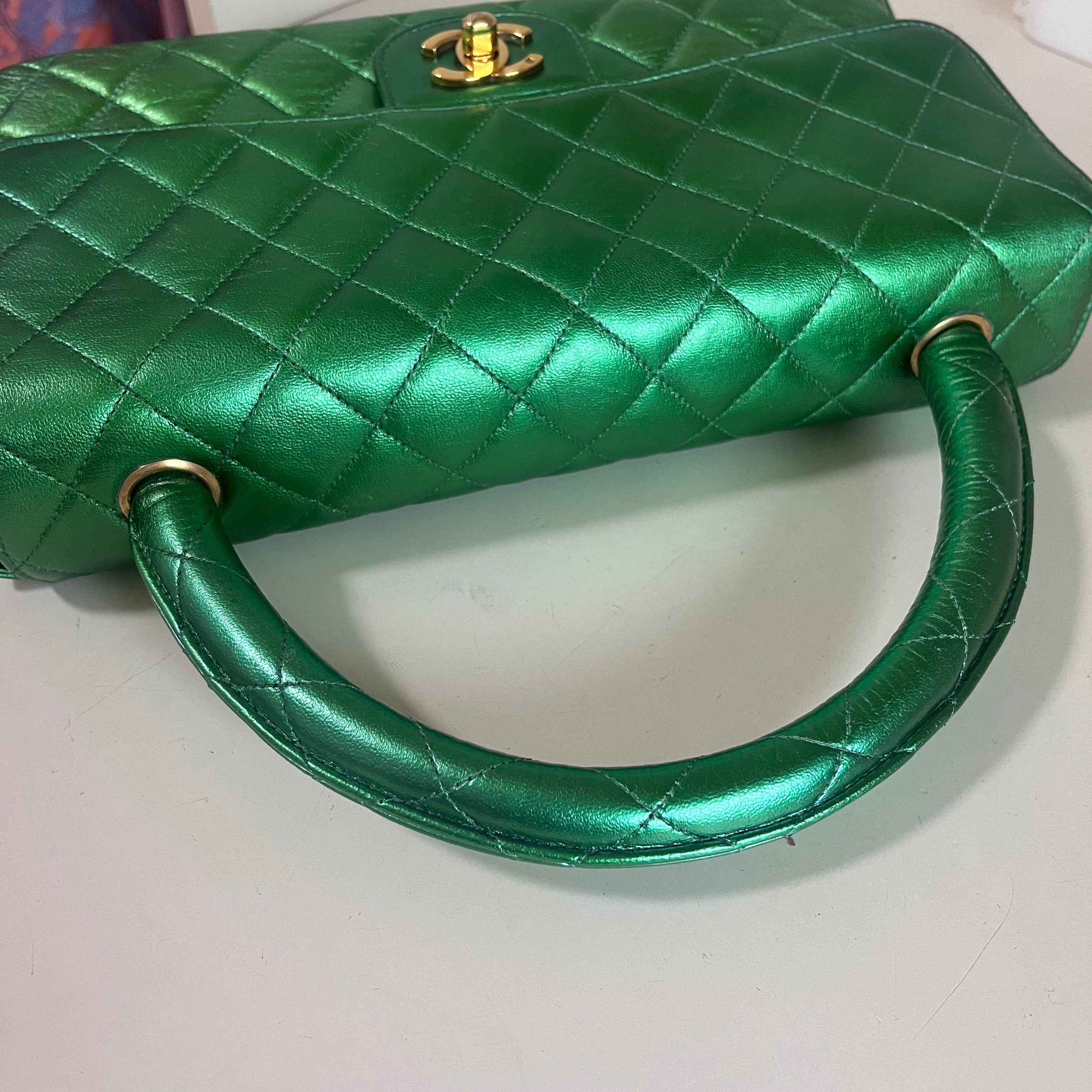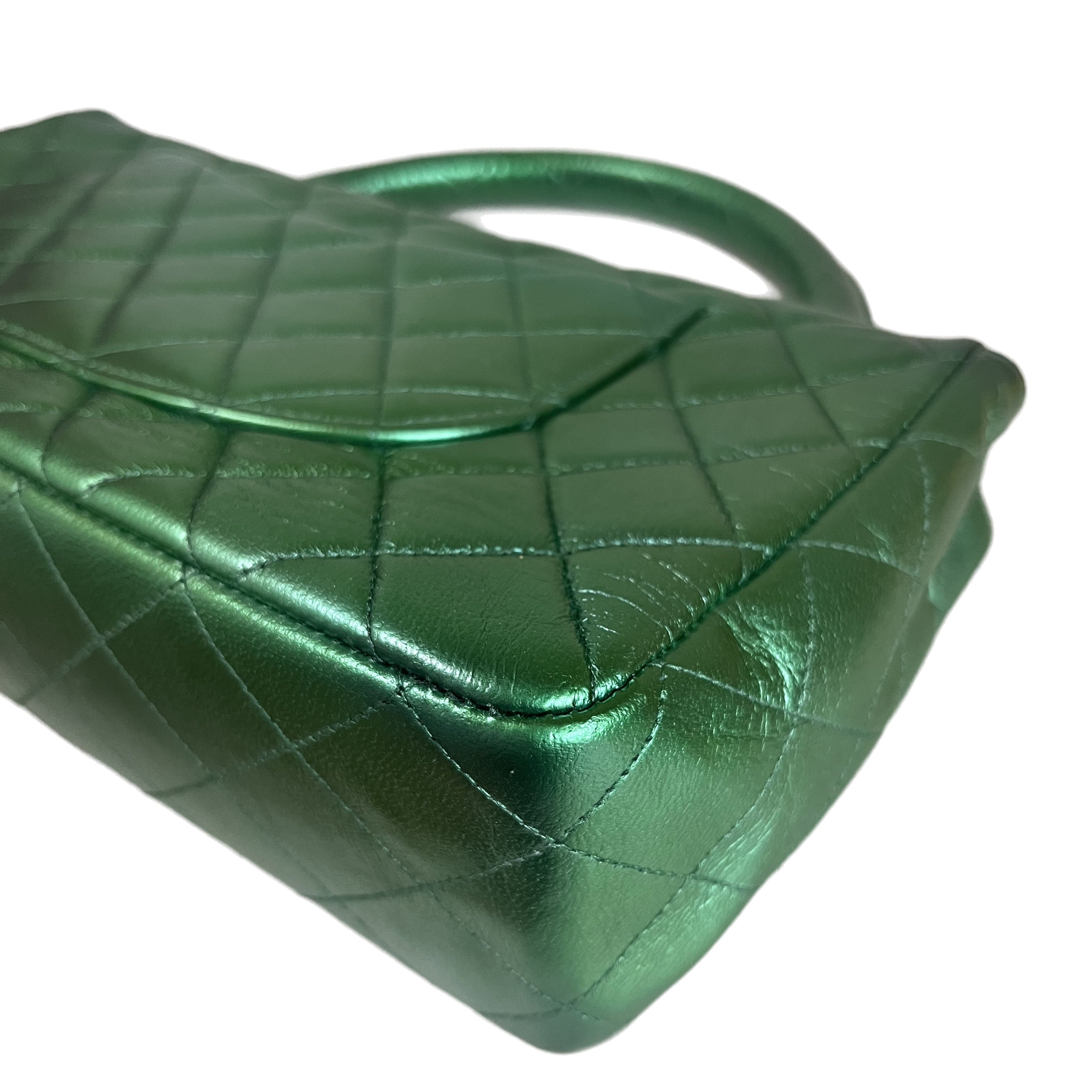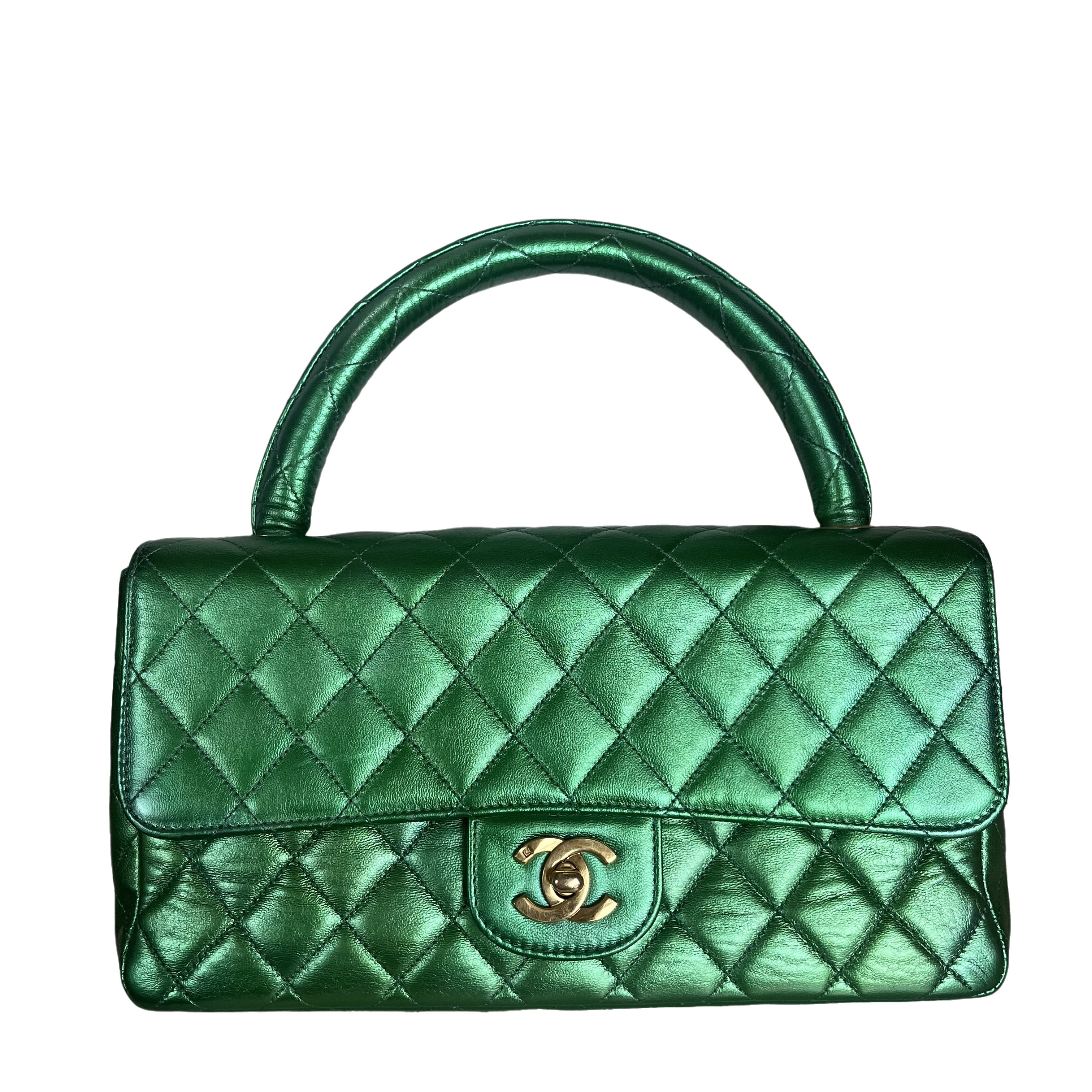 Sold Chanel 1994 Classic Flap Kelly Top Handle Bag Medium Metallic Green Lambskin Leather