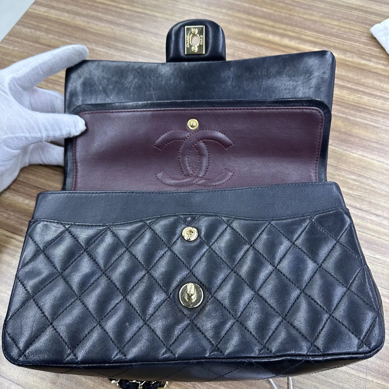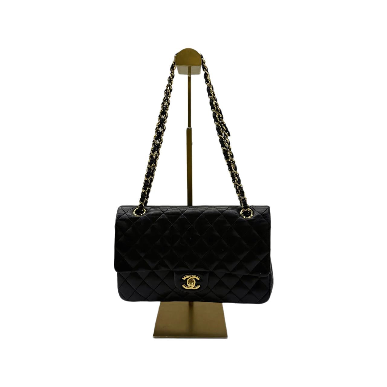 Chanel 2011 Timeless Classic Flap Medium Black Lambskin Leather Gold Hardware