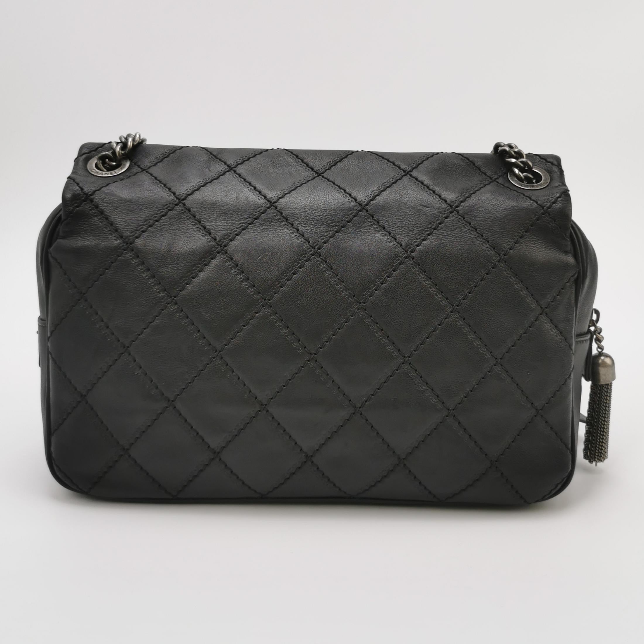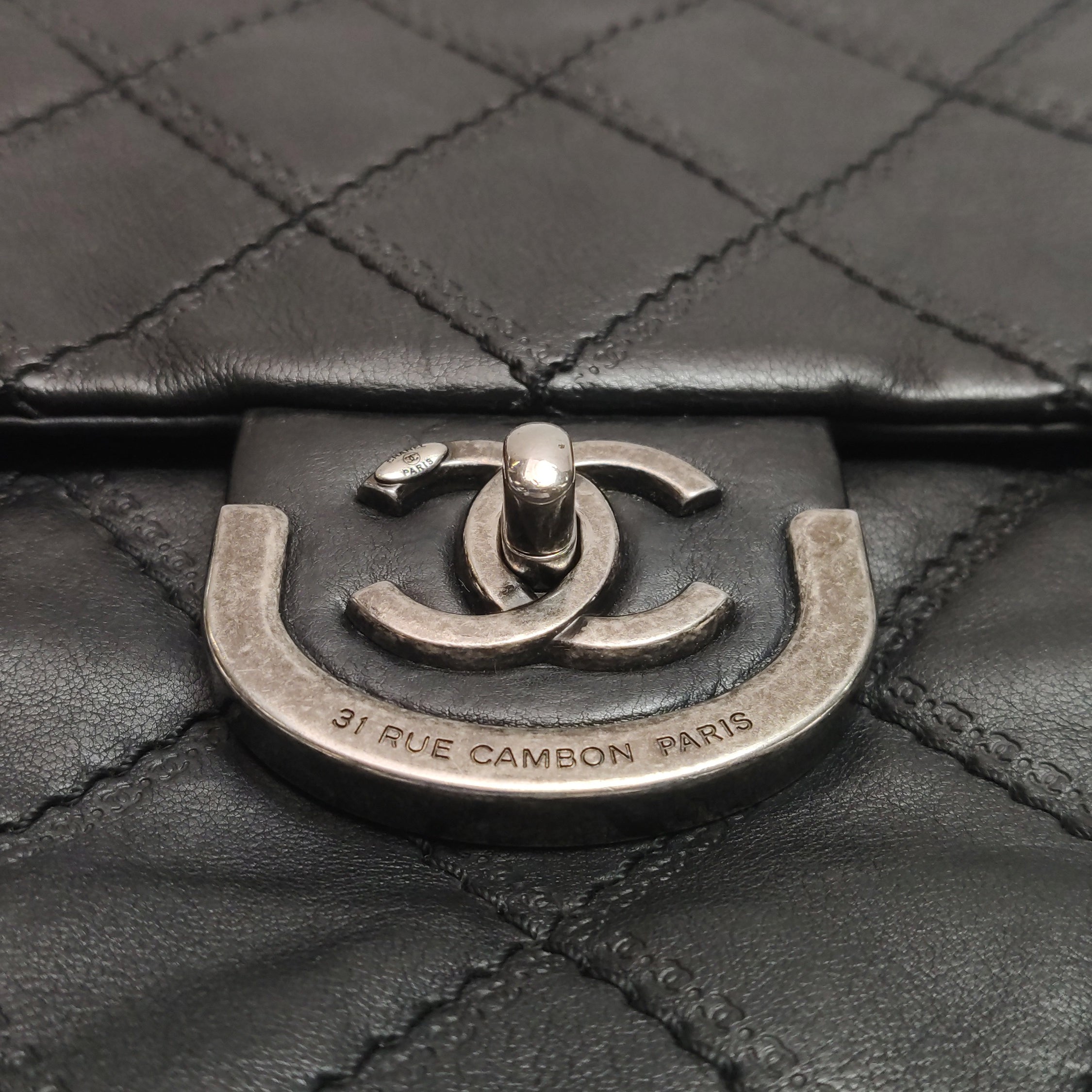 Chanel 2013 Paris-Edinburgh Large Black Flap Calfskin Leather Shoulder Bag