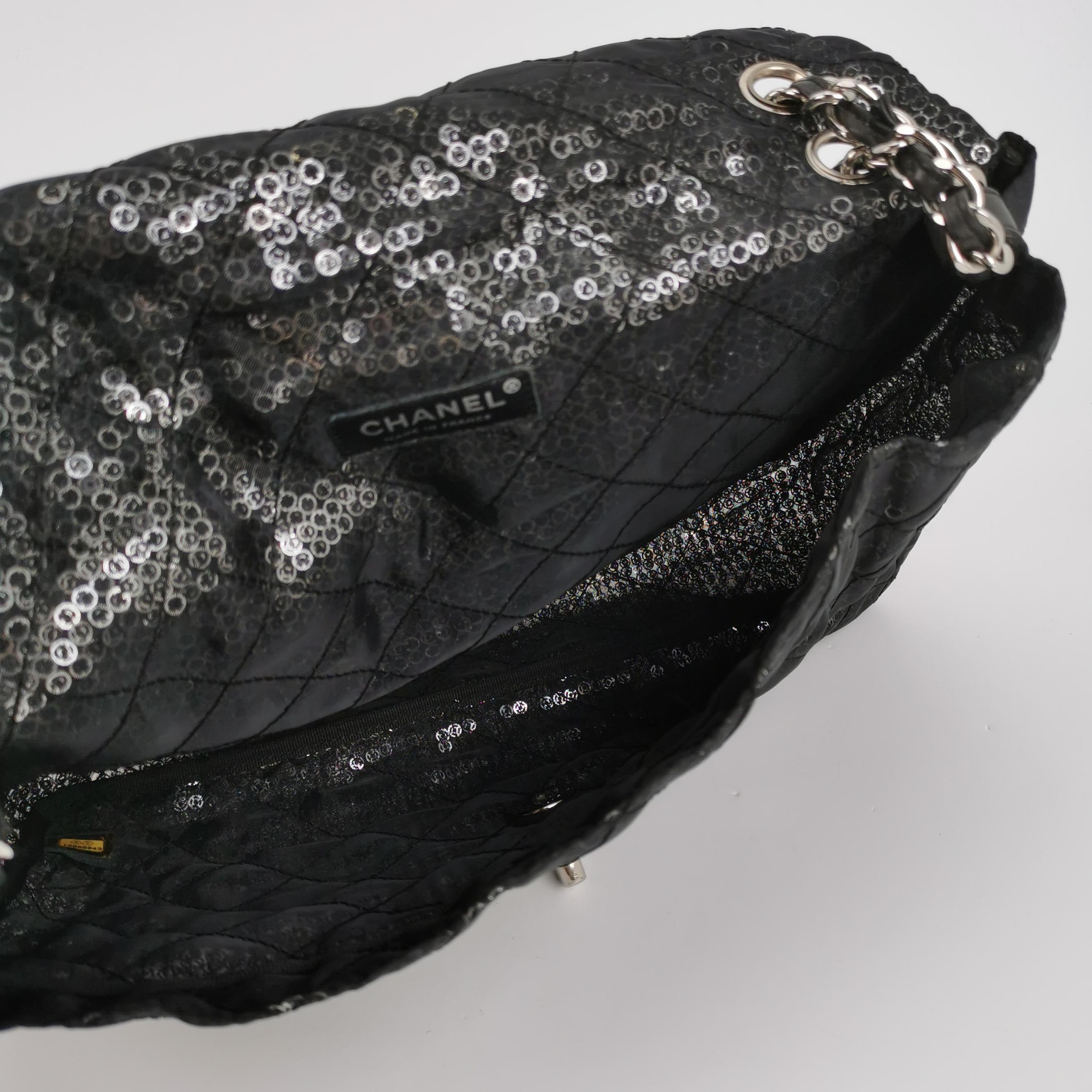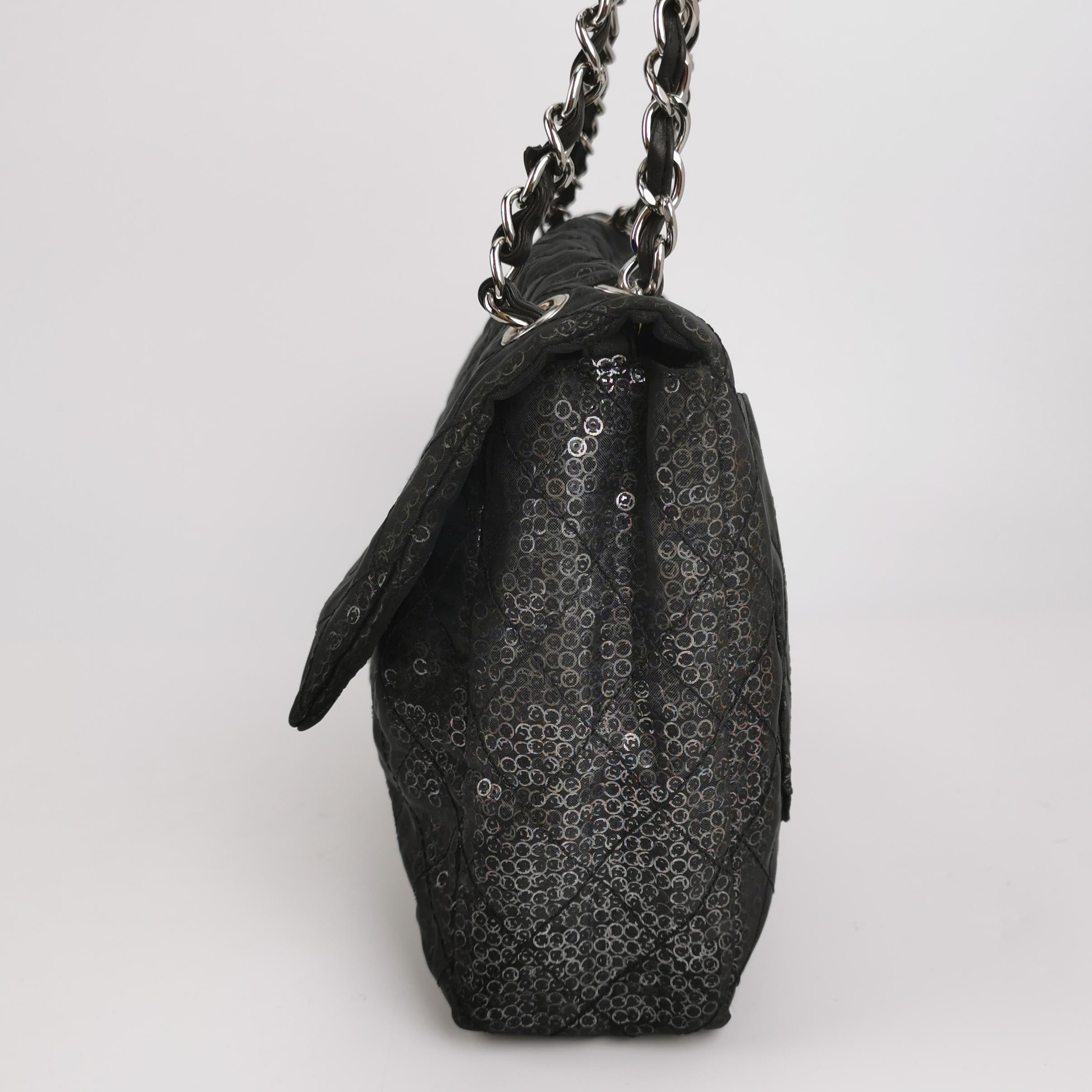 Chanel Black Mesh and Sequins Jumbo Maxi Classic Flap Silver Hardware 2008
