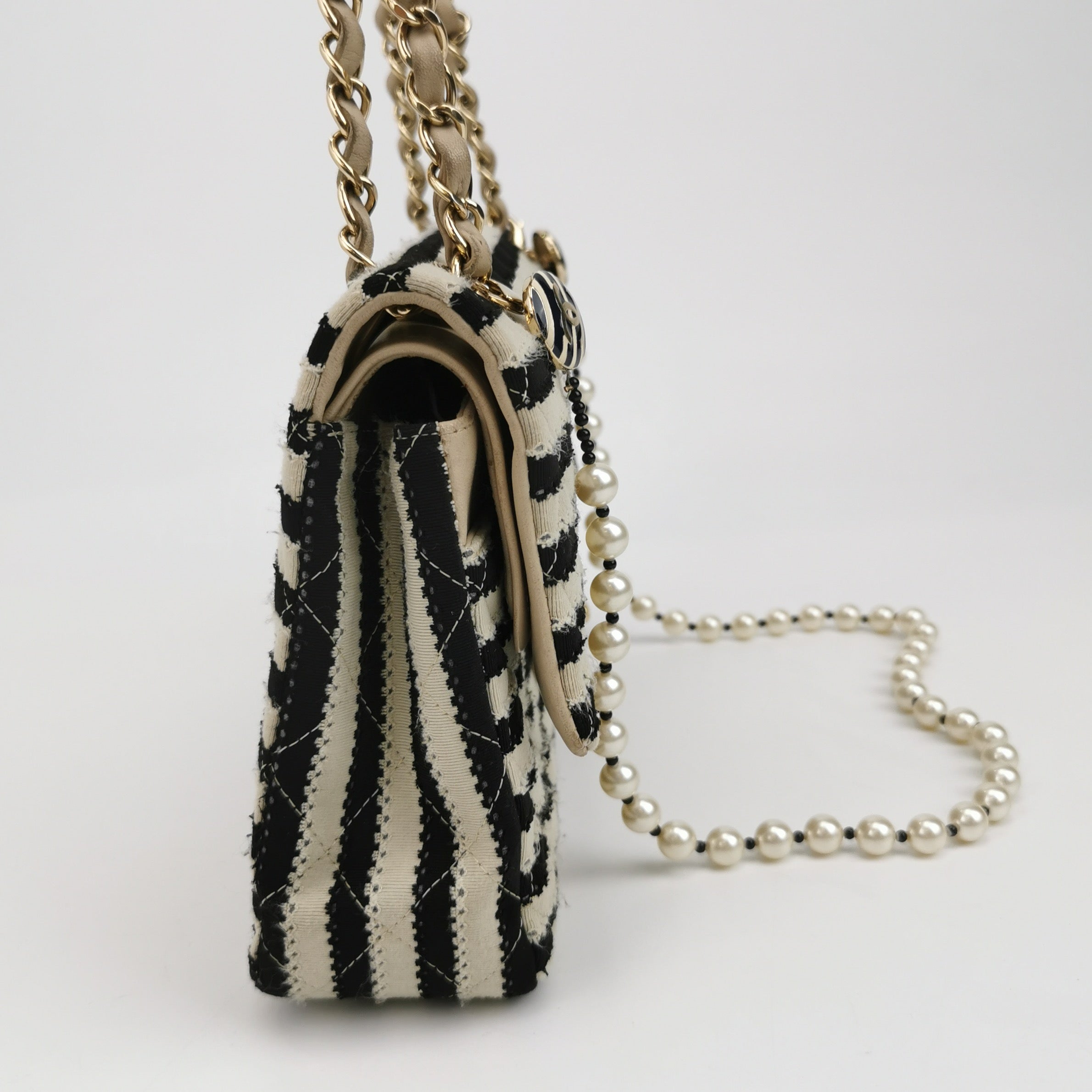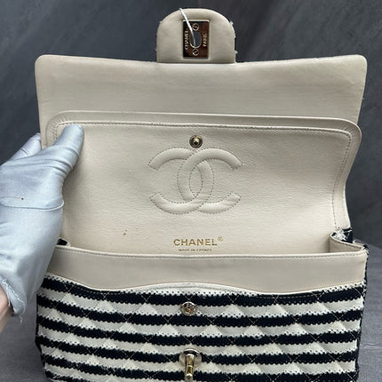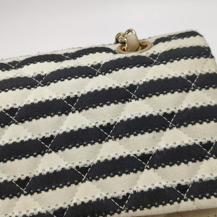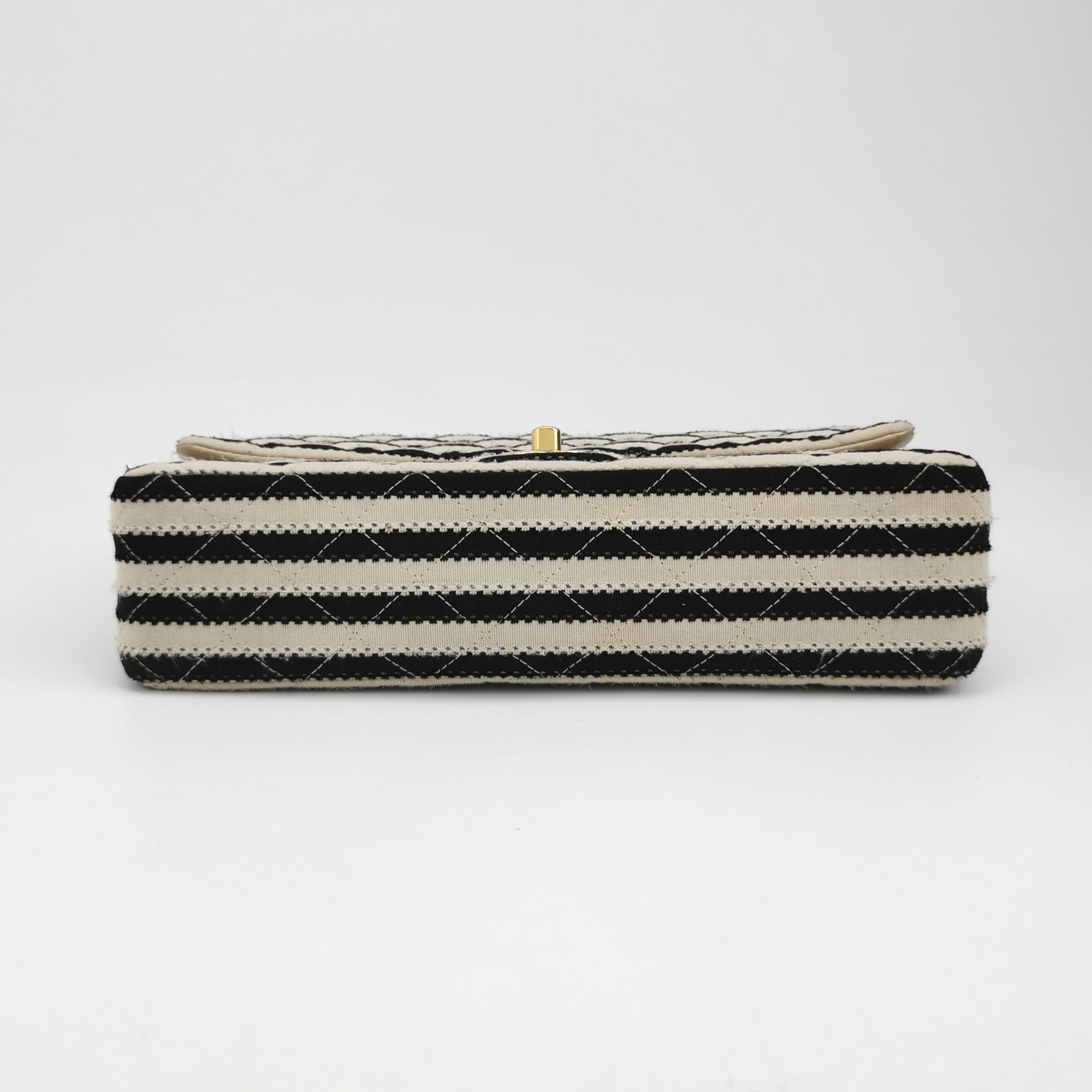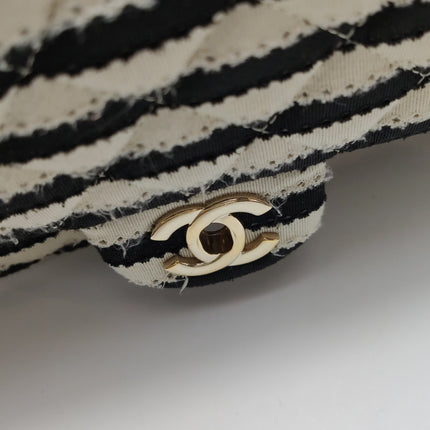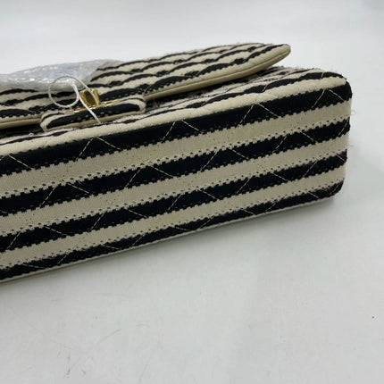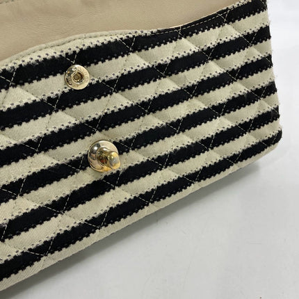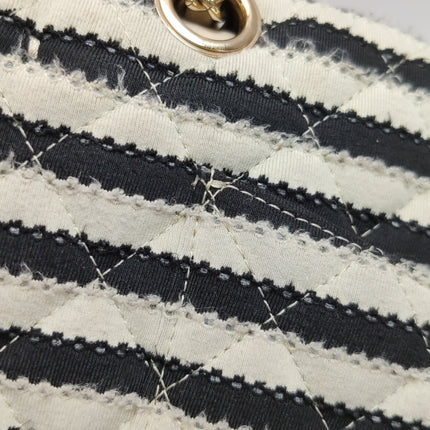 Chanel Black White Striped Medium Jersey Coco Sailor Pearl Classic Flap Bag