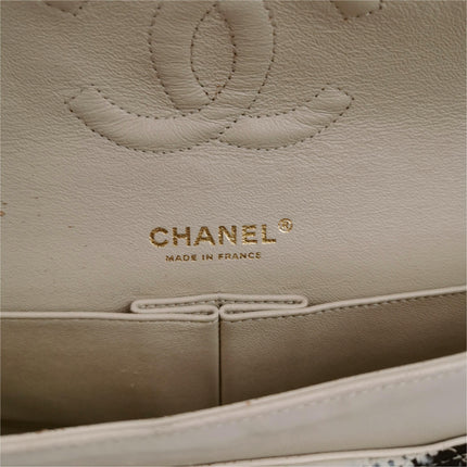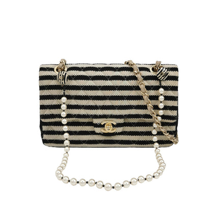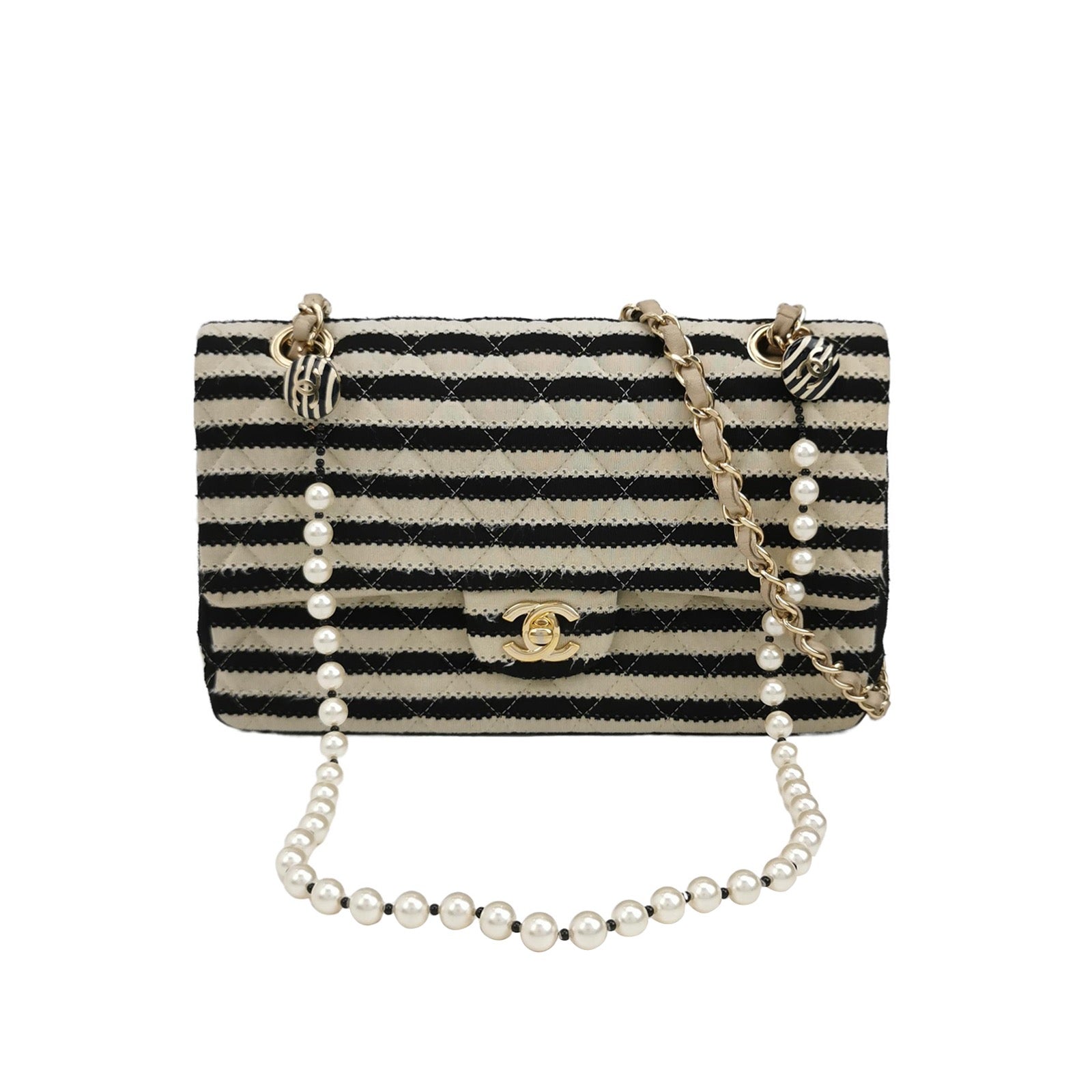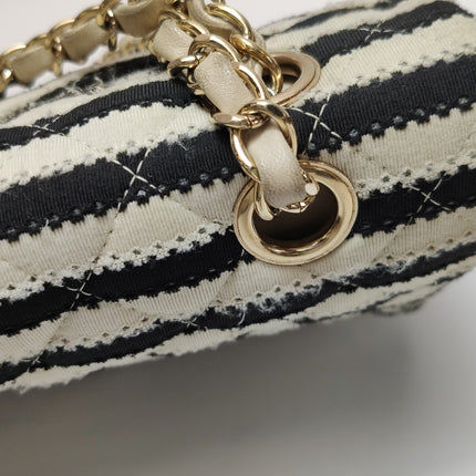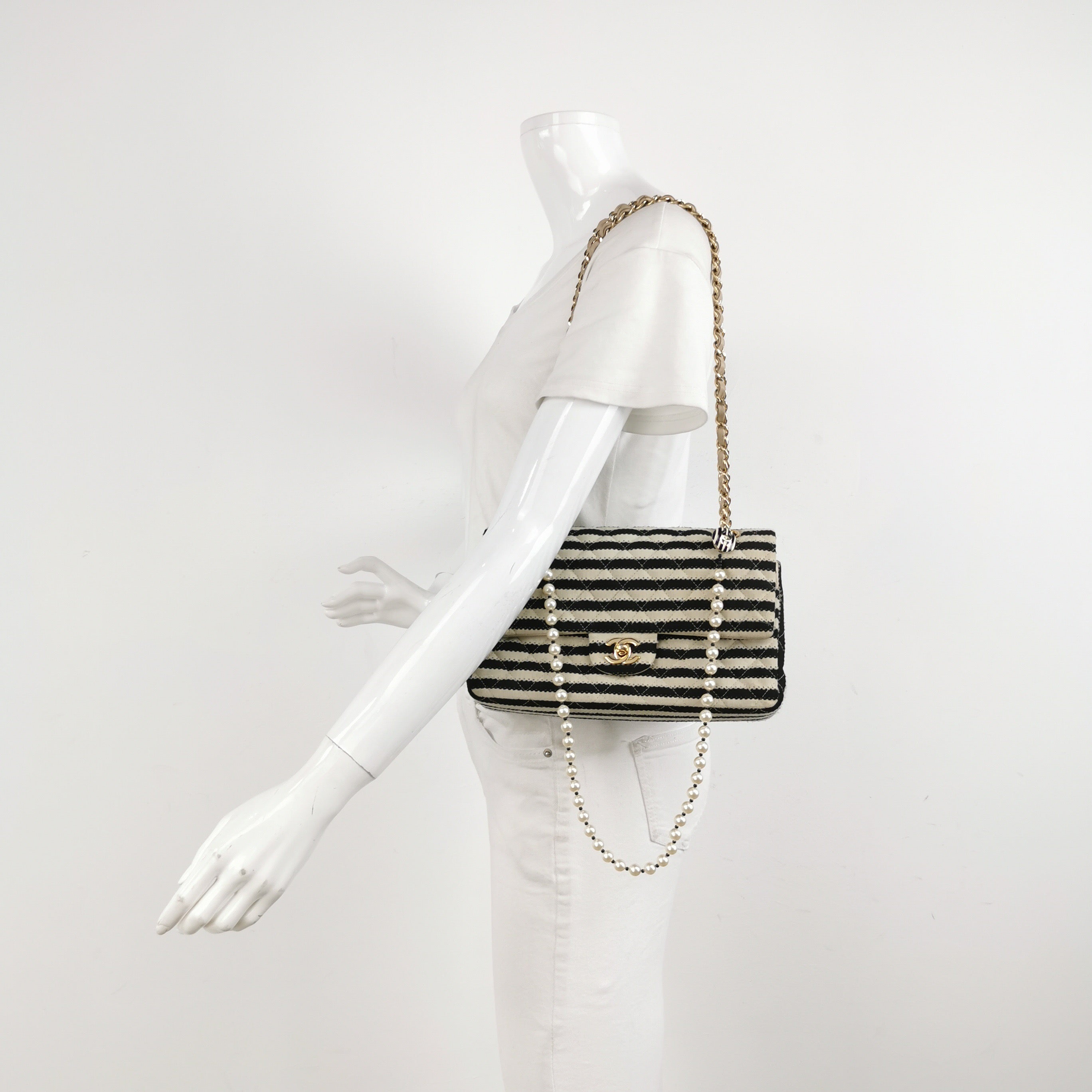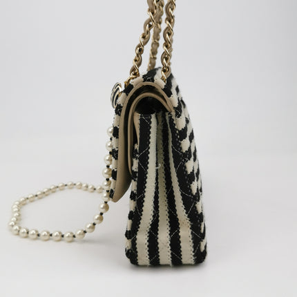 Chanel Black White Striped Medium Jersey Coco Sailor Pearl Classic Flap Bag