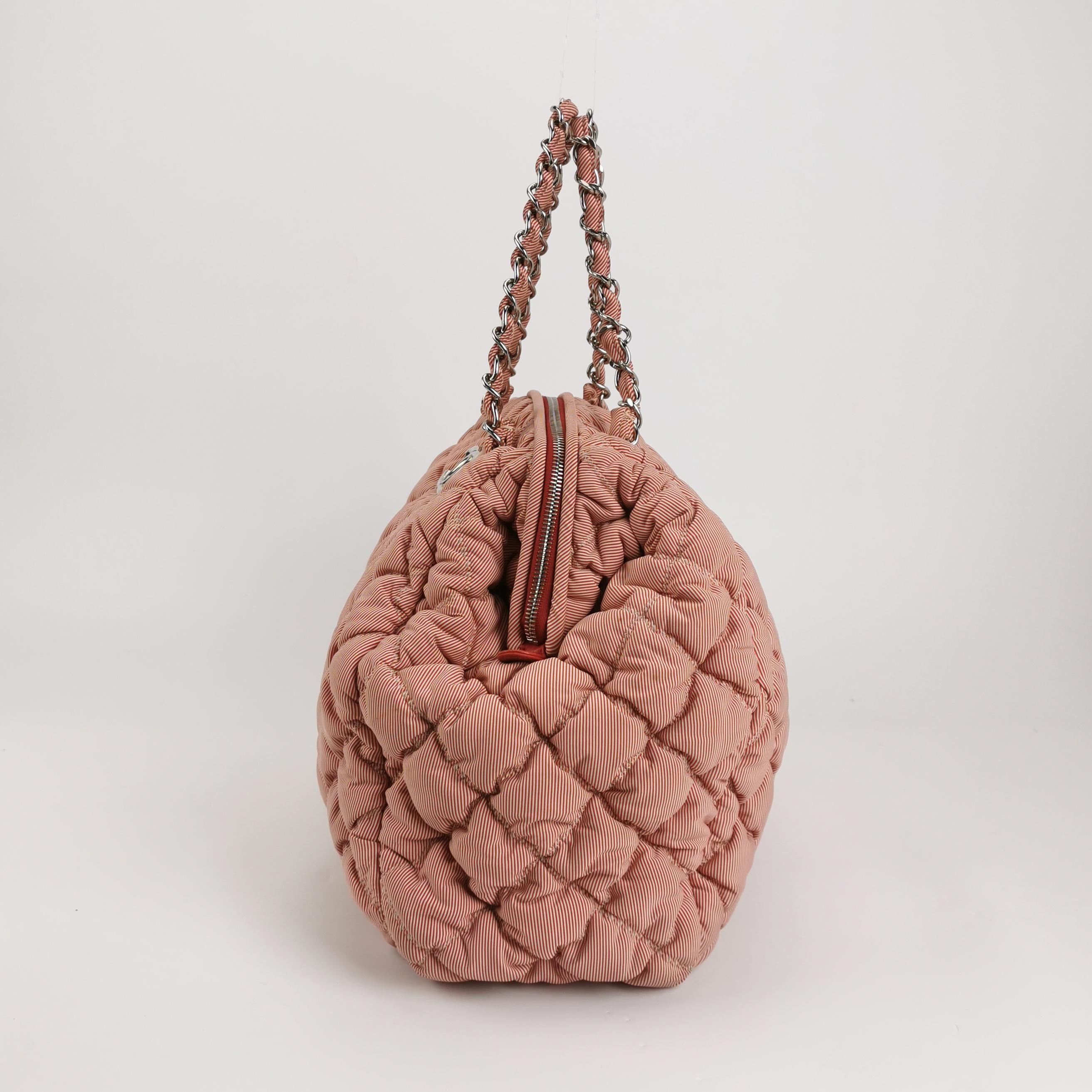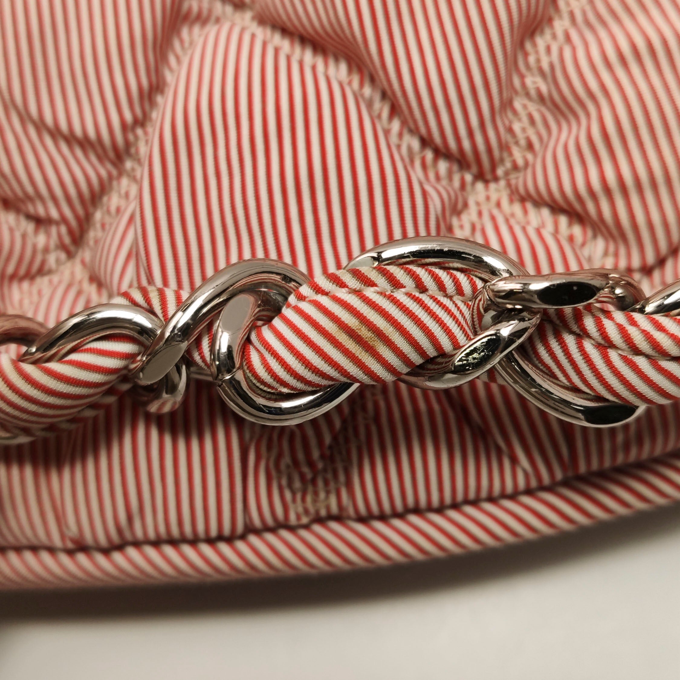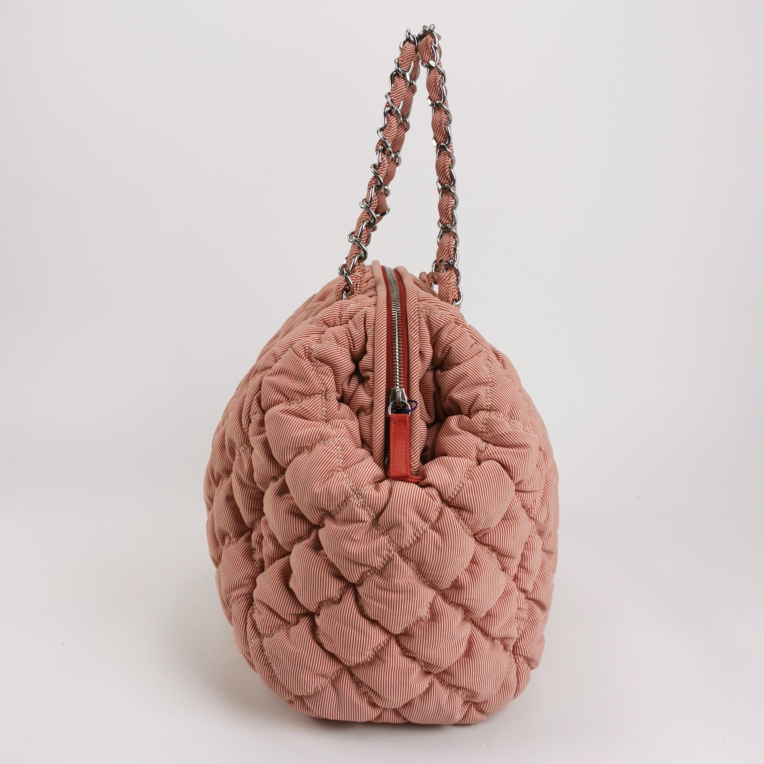Chanel Bubble Chain Striped Quilted Flap Bag Red/White Tote