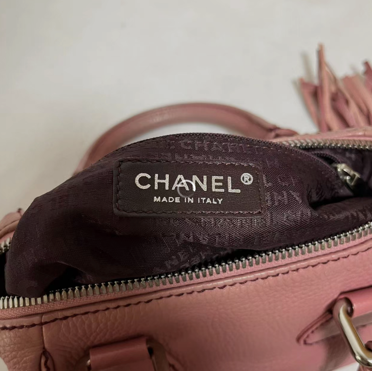 CHANEL Calfskin Leather Tassel Small Pink Bowler Bag