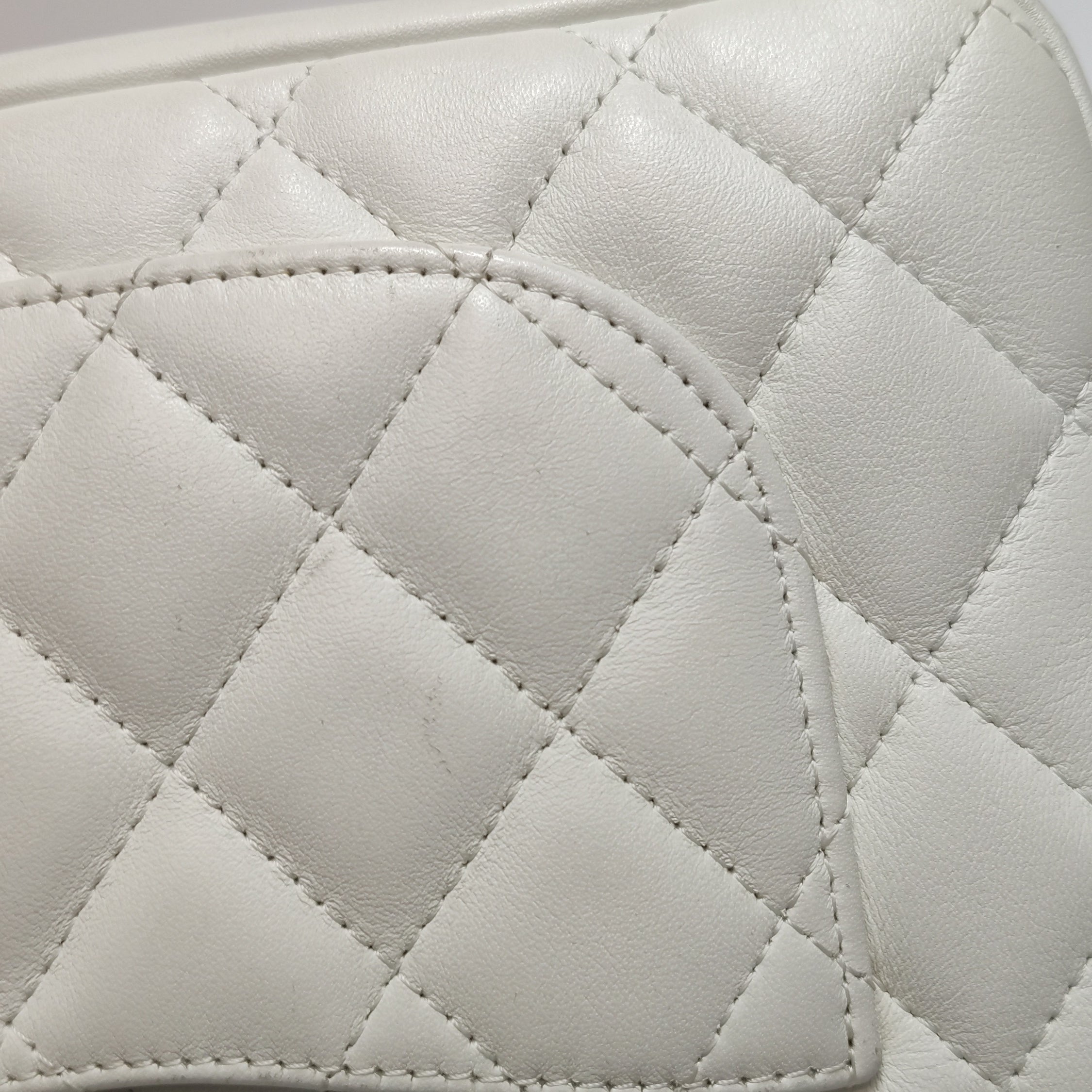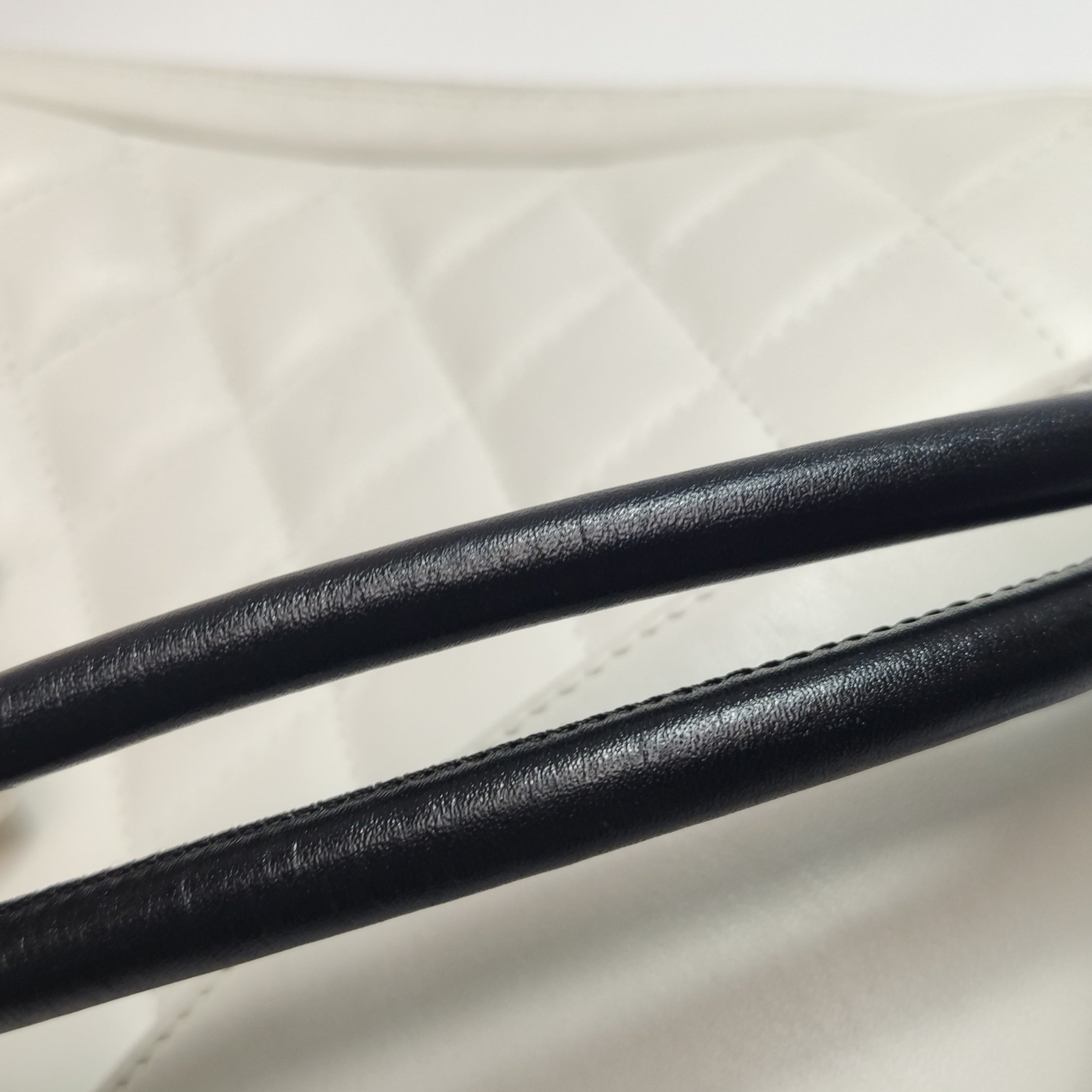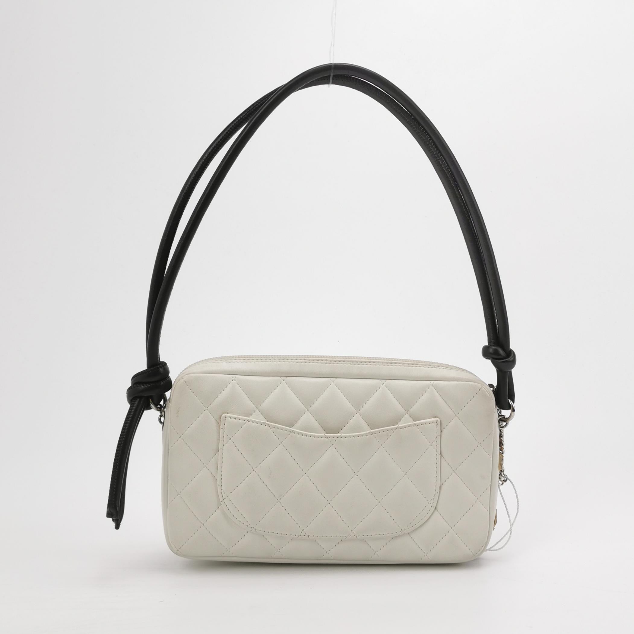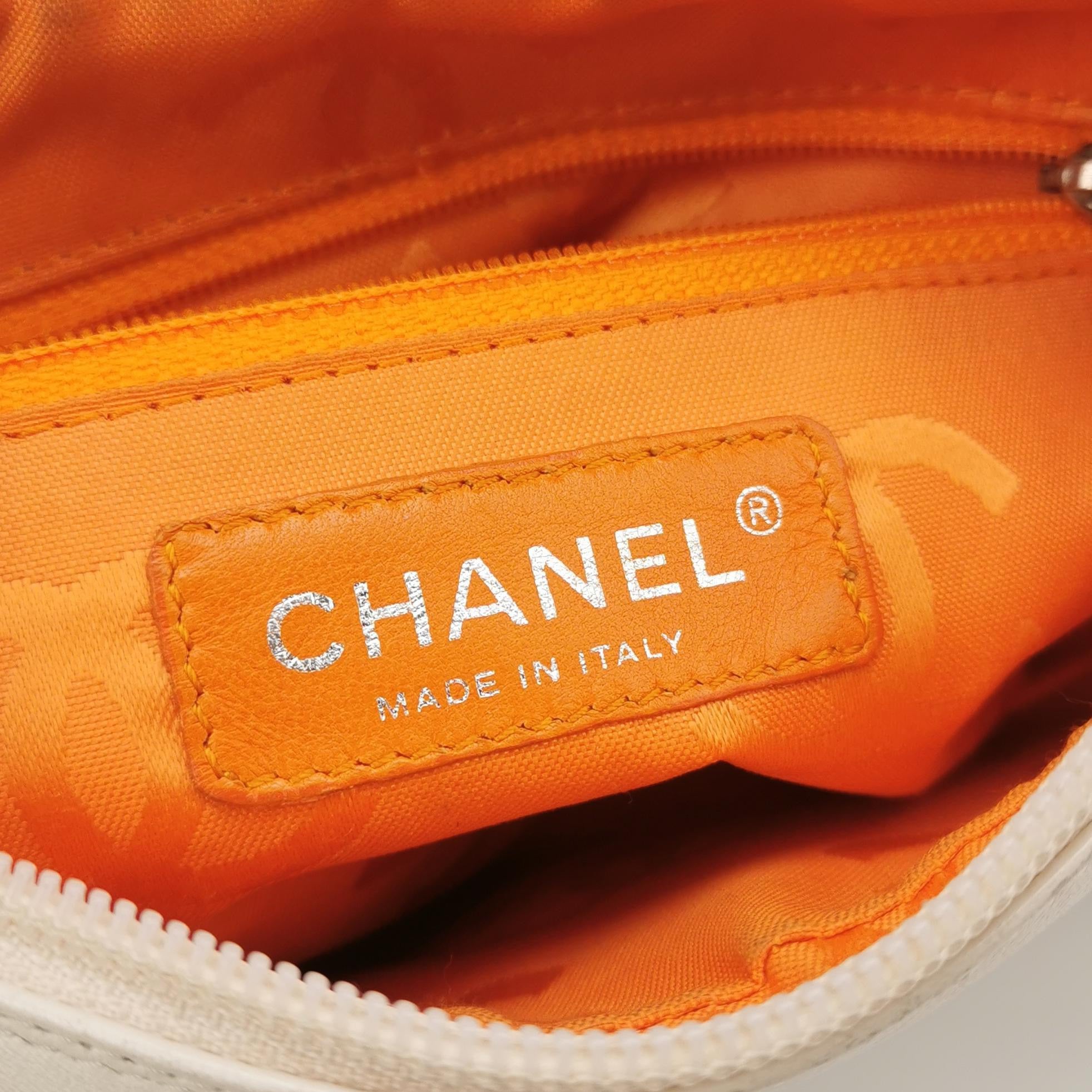 Chanel Cambon Clutch White Leather Snake Skin CC Logo Black Strap