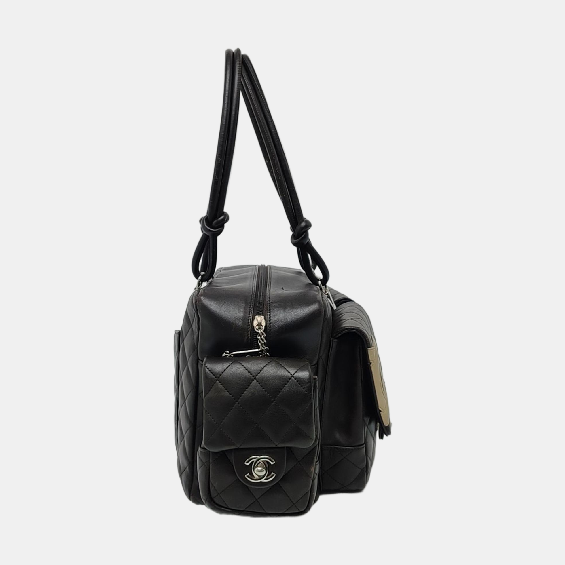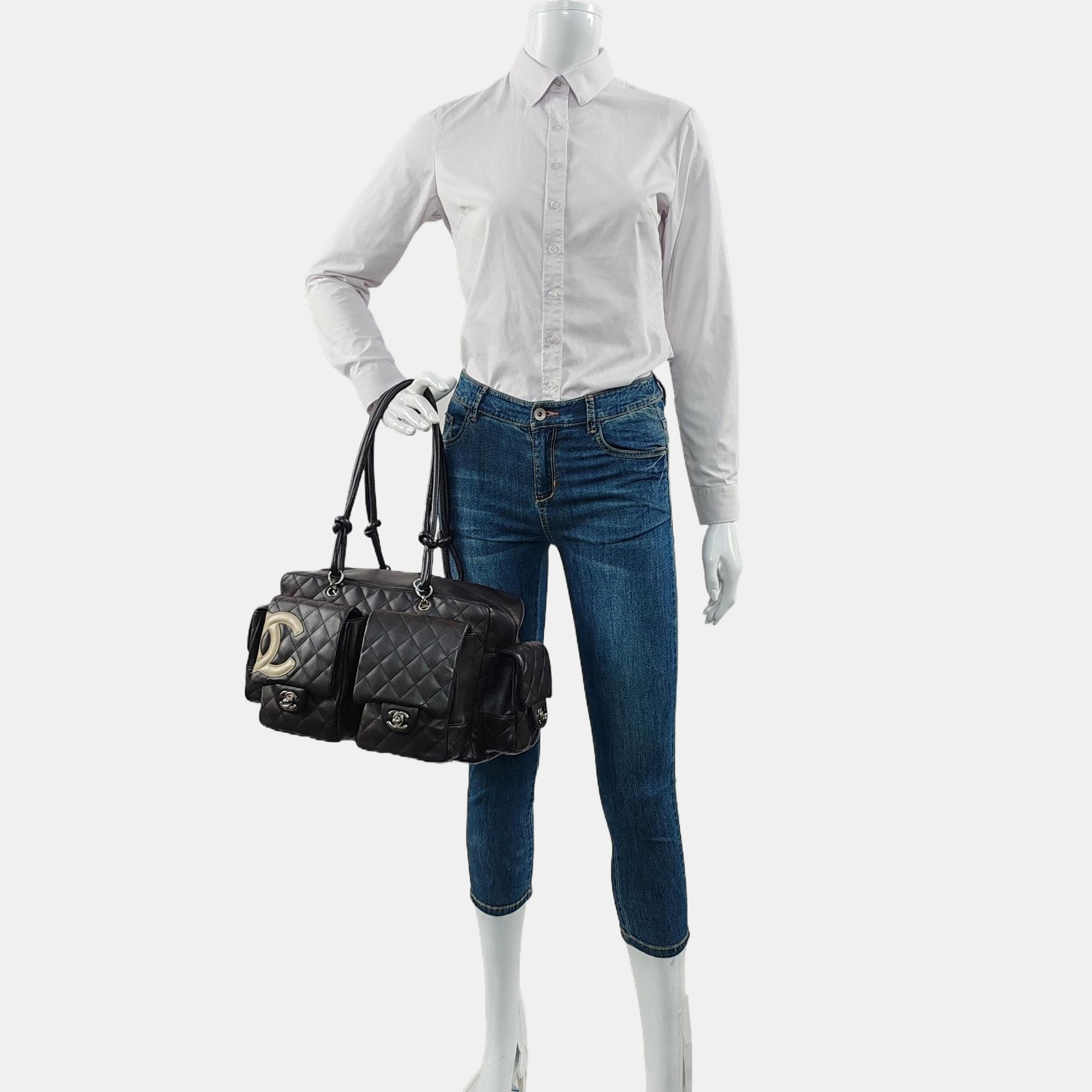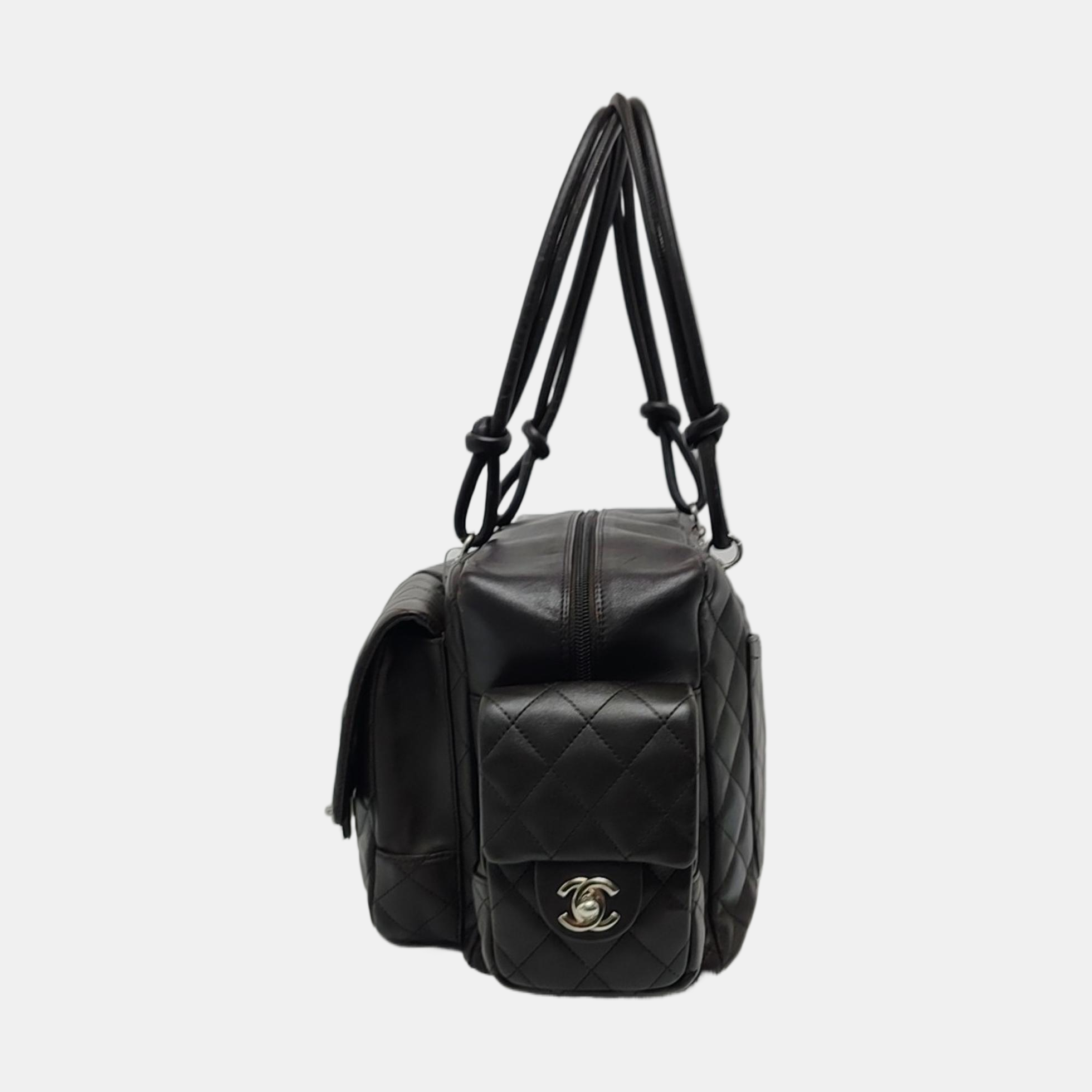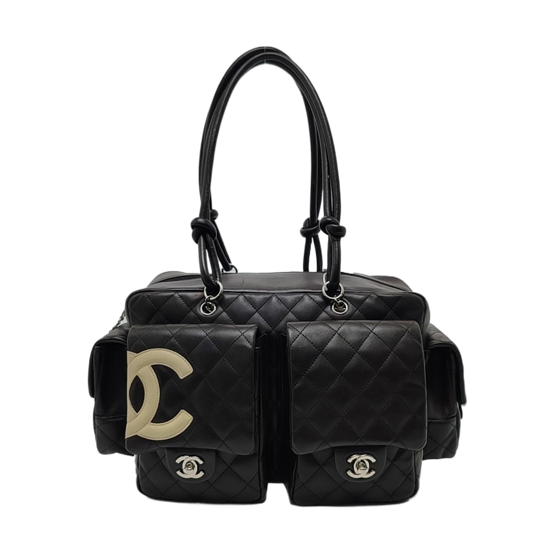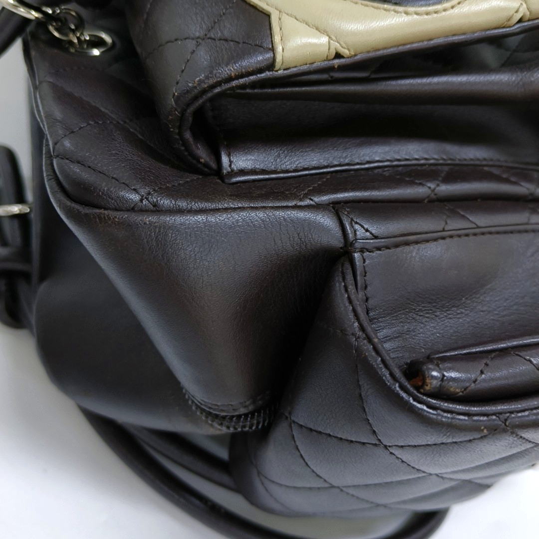 Chanel Cambon Large Dark Brown Calfskin Leather Double Strap Handbag